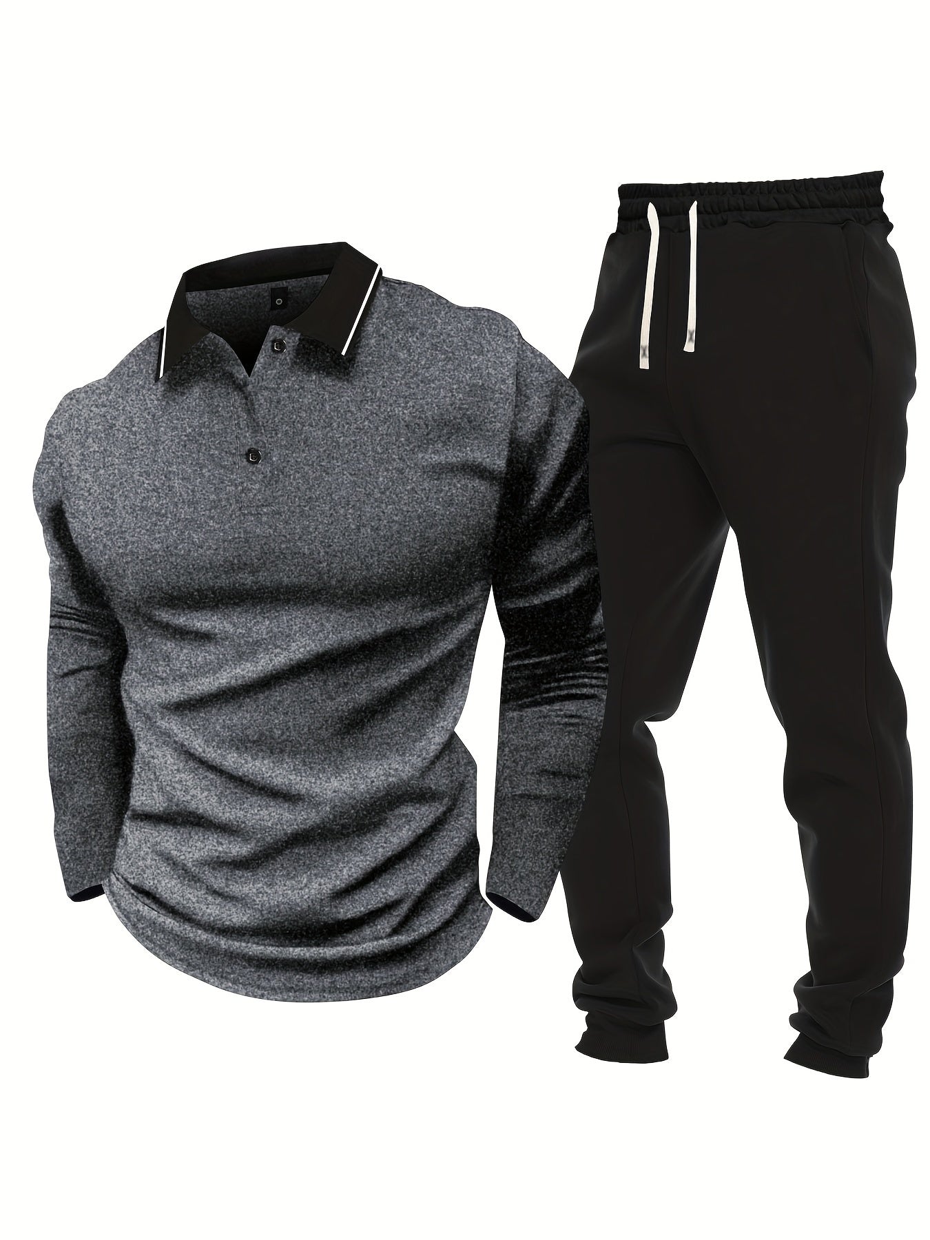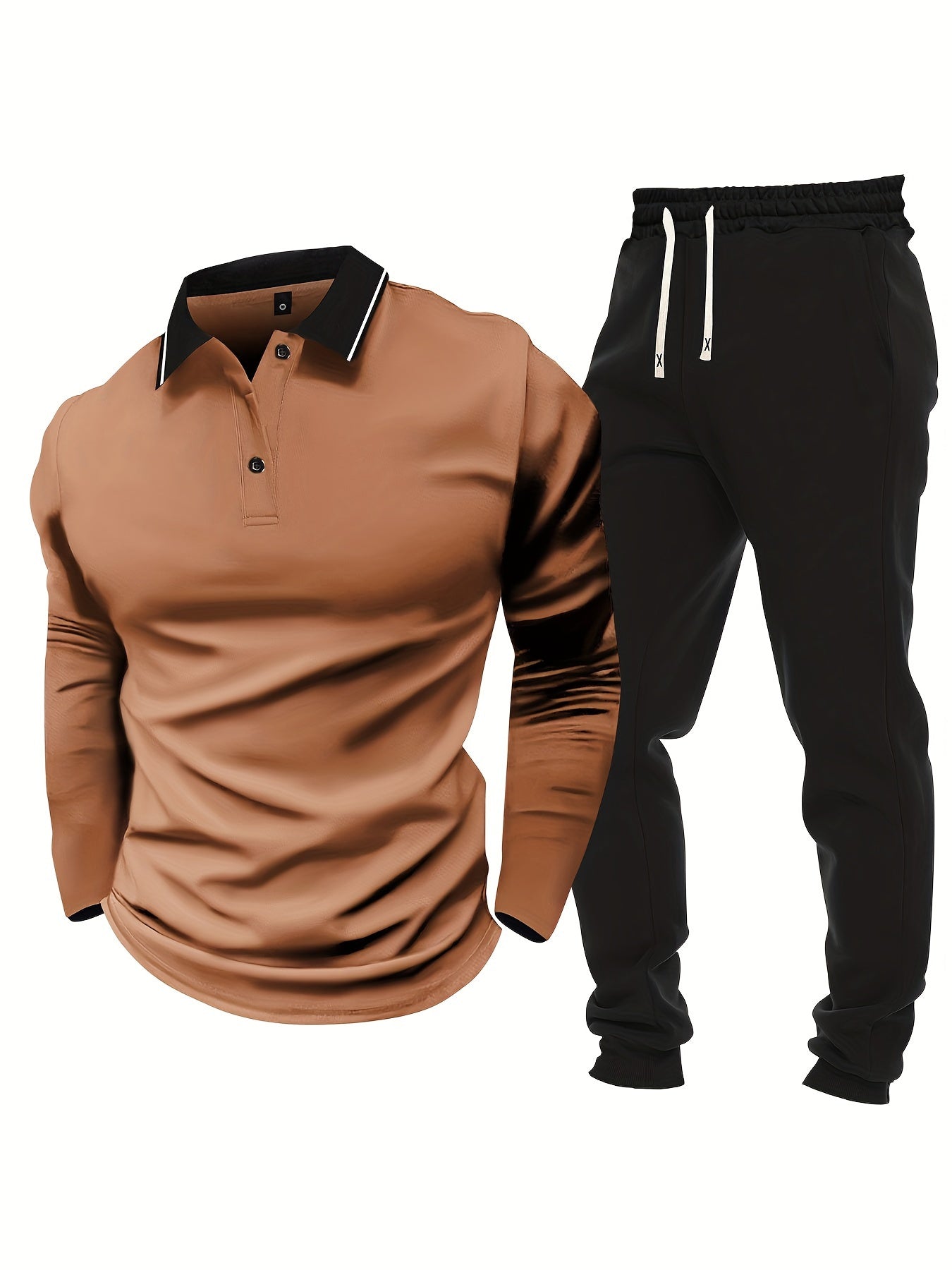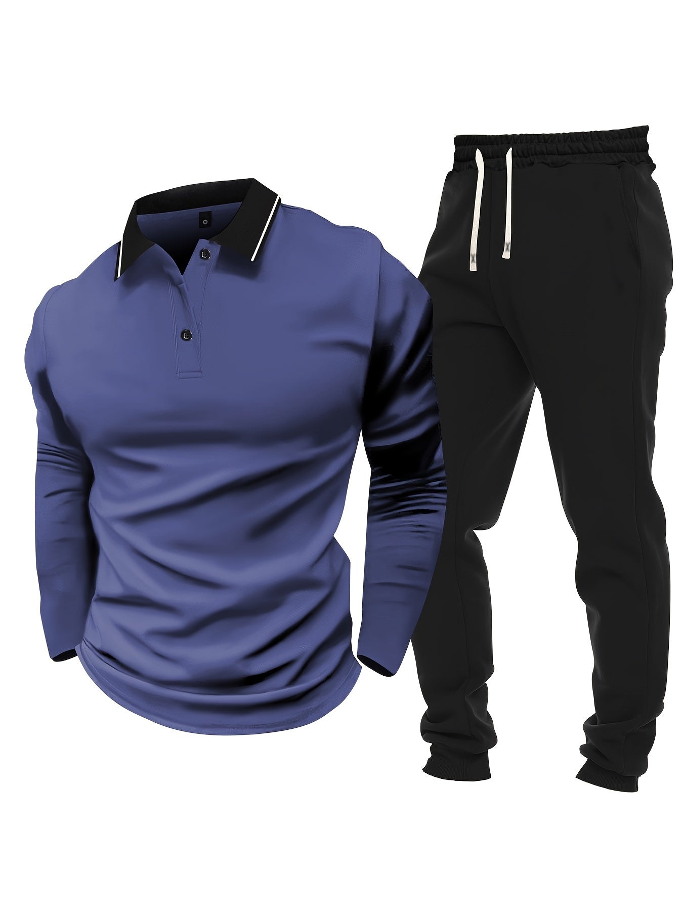 Տղամարդու առօրյա, գունային բլոկներով երկար թևքերով, կոճակներով վերնաշապիկ և լարով վազող տաբատ՝ պոլիեսթերի խառնուրդով, գրպաններով, իդեալական է գարնան/աշնան համար