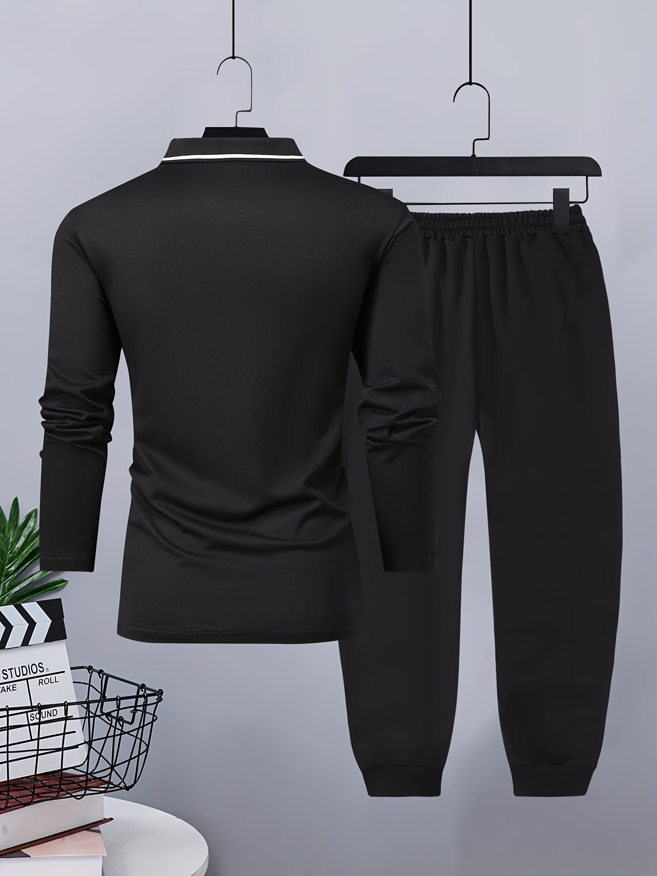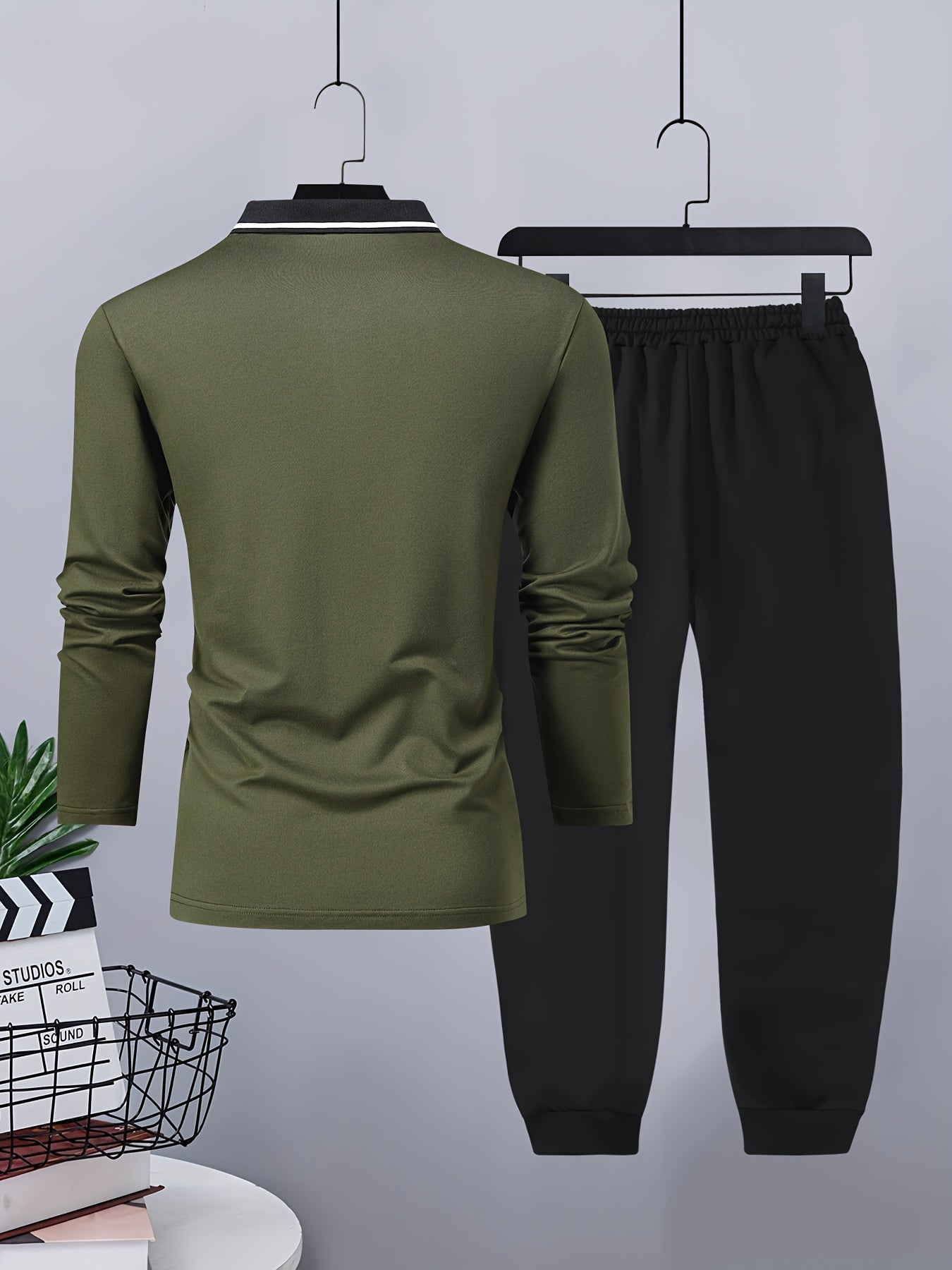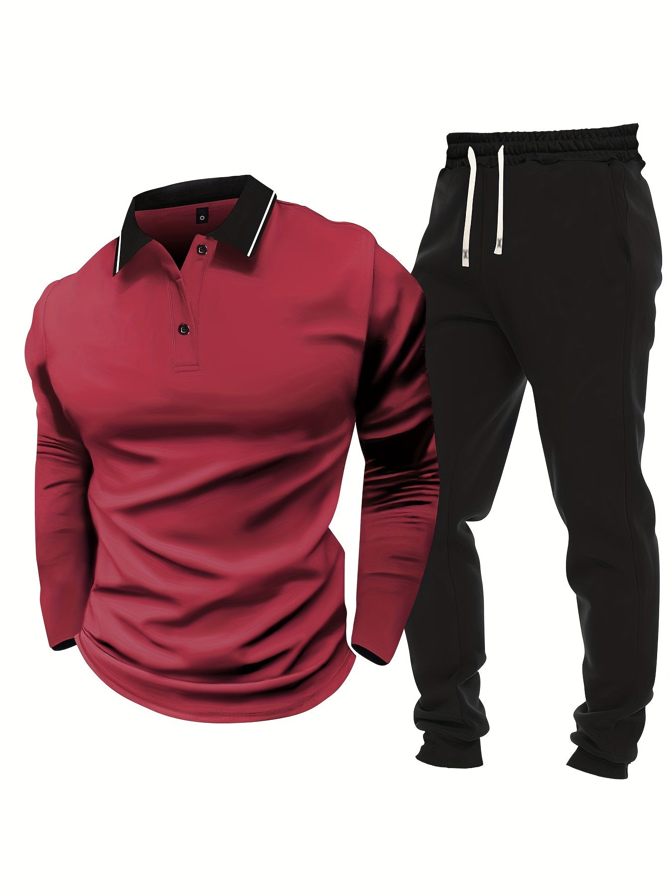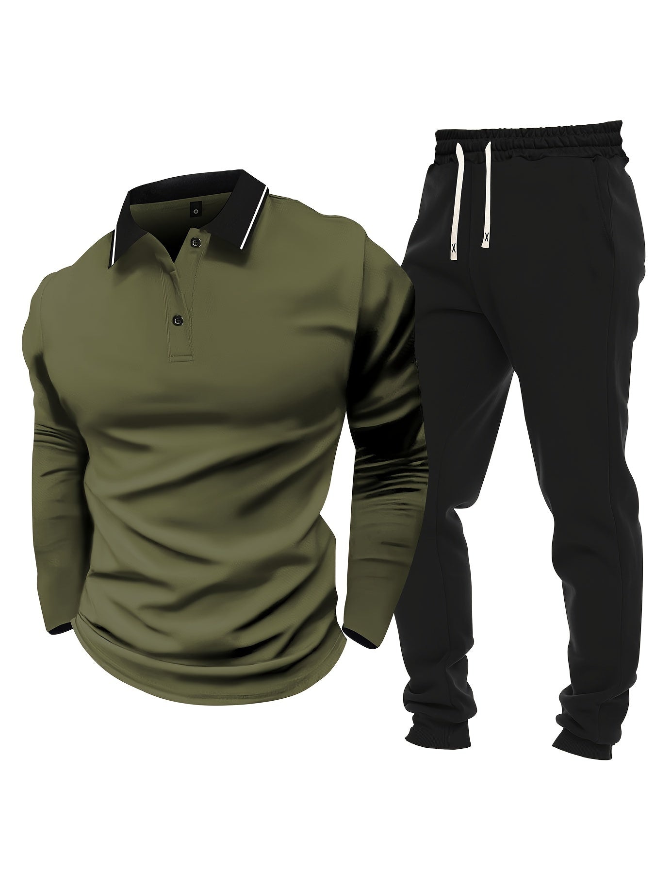 Տղամարդու առօրյա, գունային բլոկներով երկար թևքերով, կոճակներով վերնաշապիկ և լարով վազող տաբատ՝ պոլիեսթերի խառնուրդով, գրպաններով, իդեալական է գարնան/աշնան համար