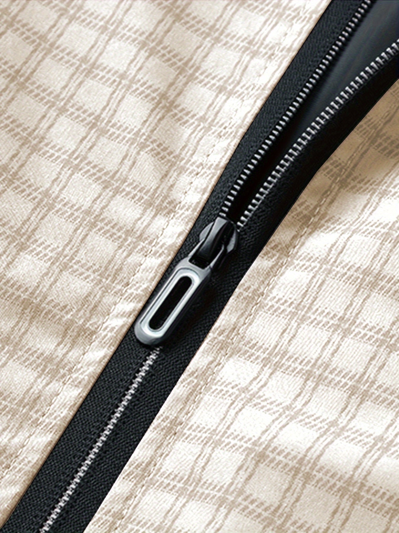 Տղամարդու առօրյա բացօթյա բաճկոն - Գարուն/աշուն փափուկ բաճկոն՝ վանդակավոր նախշերով, երկար թևքերով և կայծակաճարմանդով փակմամբ
