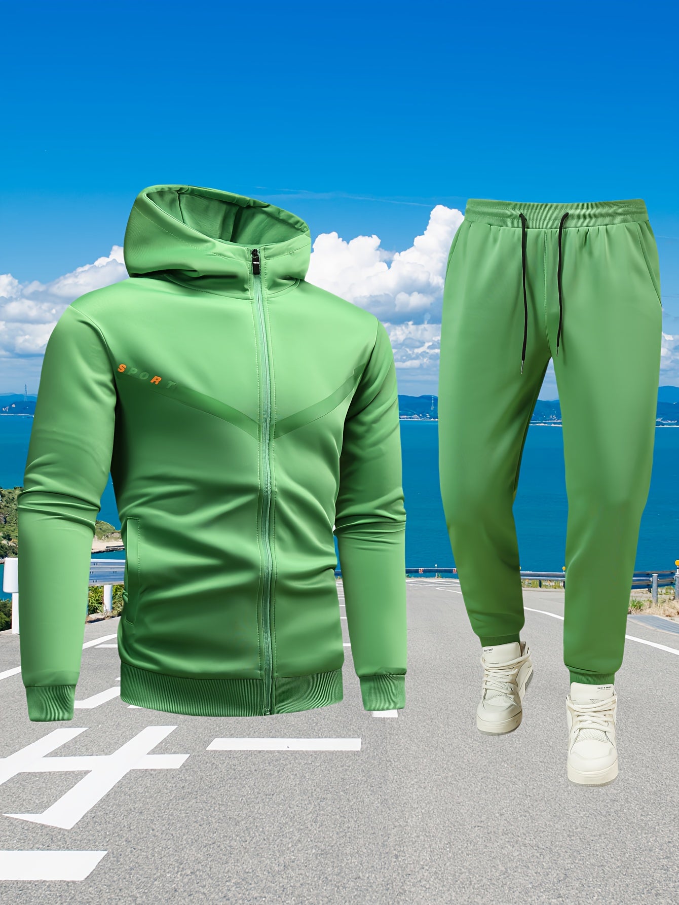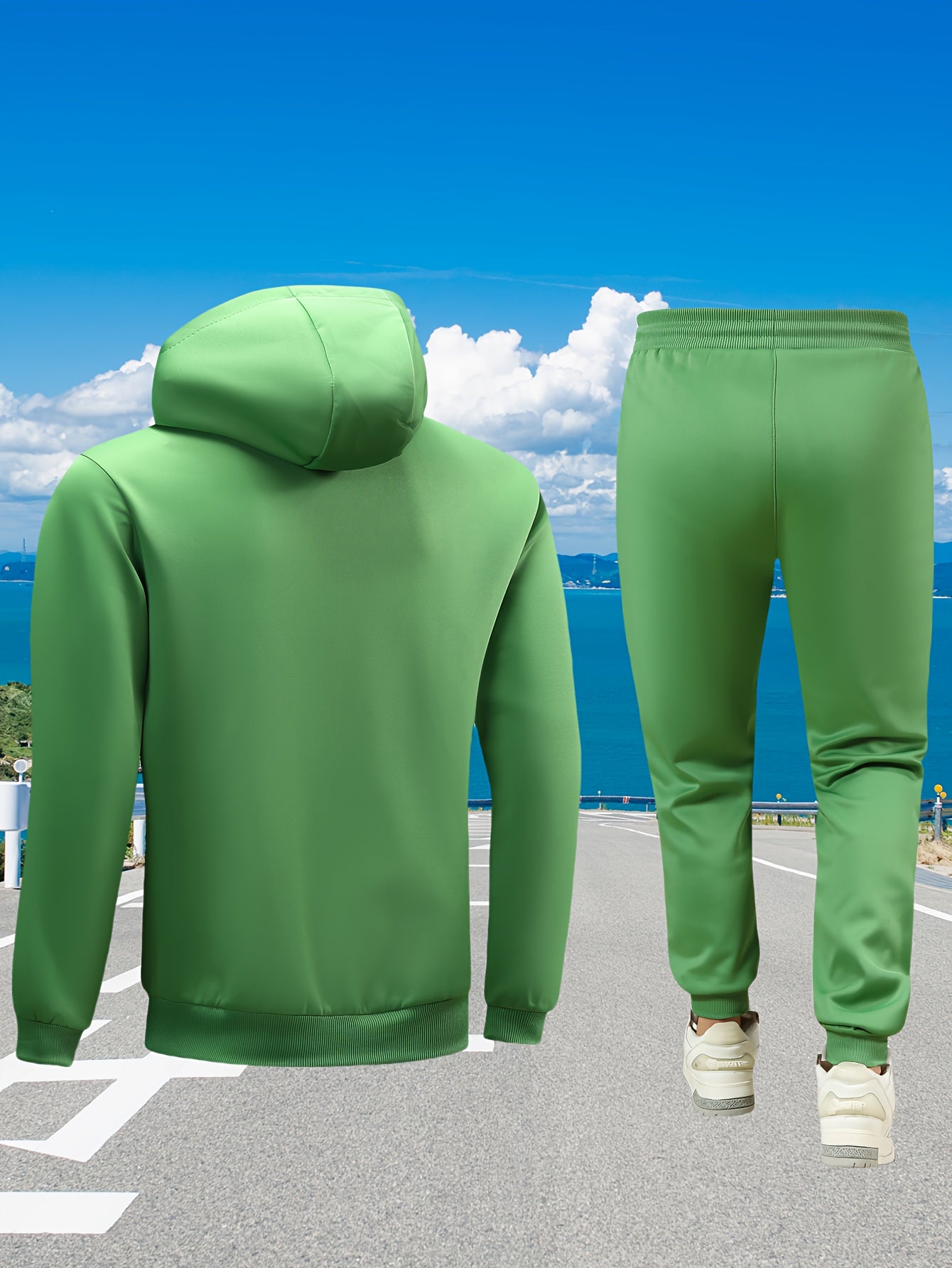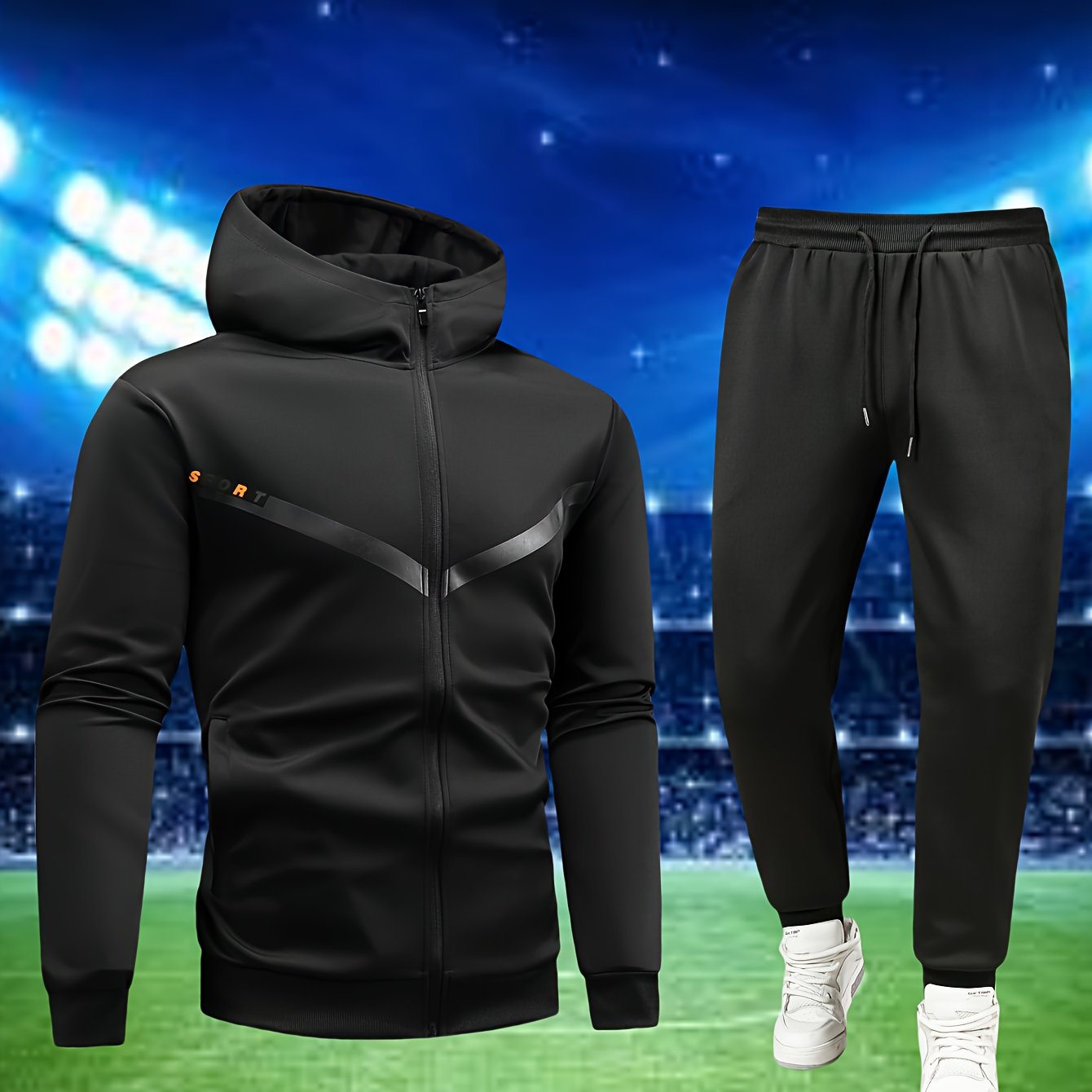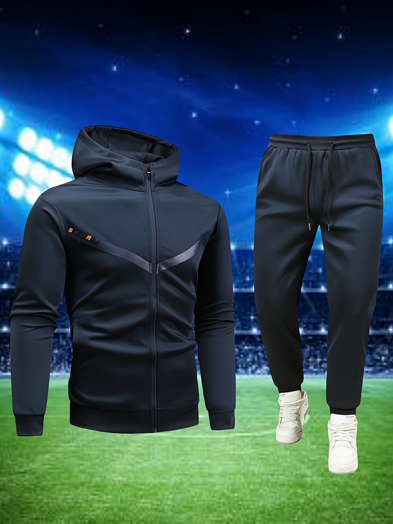 Տղամարդկանց առօրյա սպորտային հագուստի հավաքածու. Բարձրորակ գլխարկով սվիտեր և մարզաշապիկ վազքի, ֆիթնեսի և տնային հագուստի համար - Գարուն/աշուն երկկտոր հագուստ