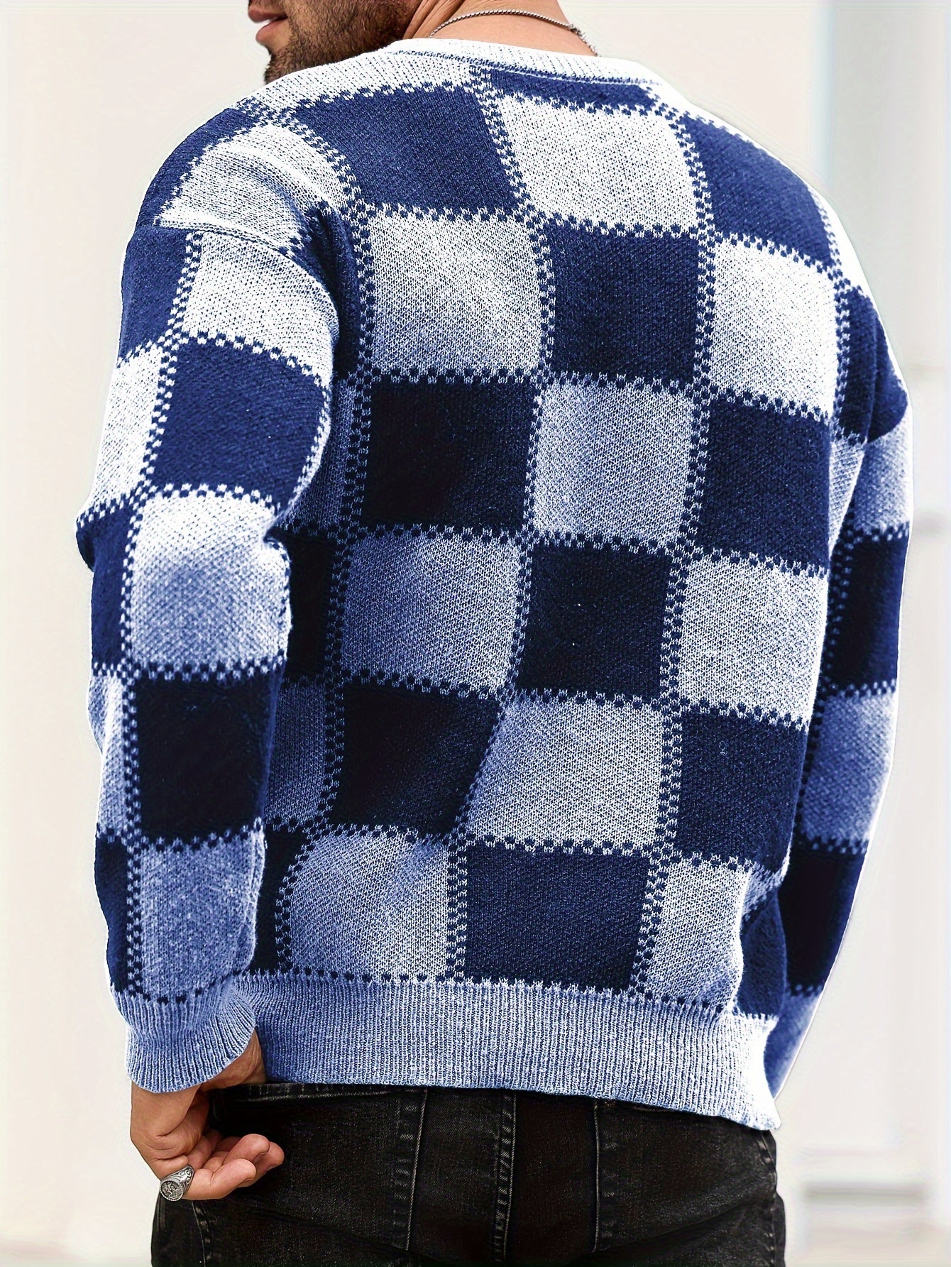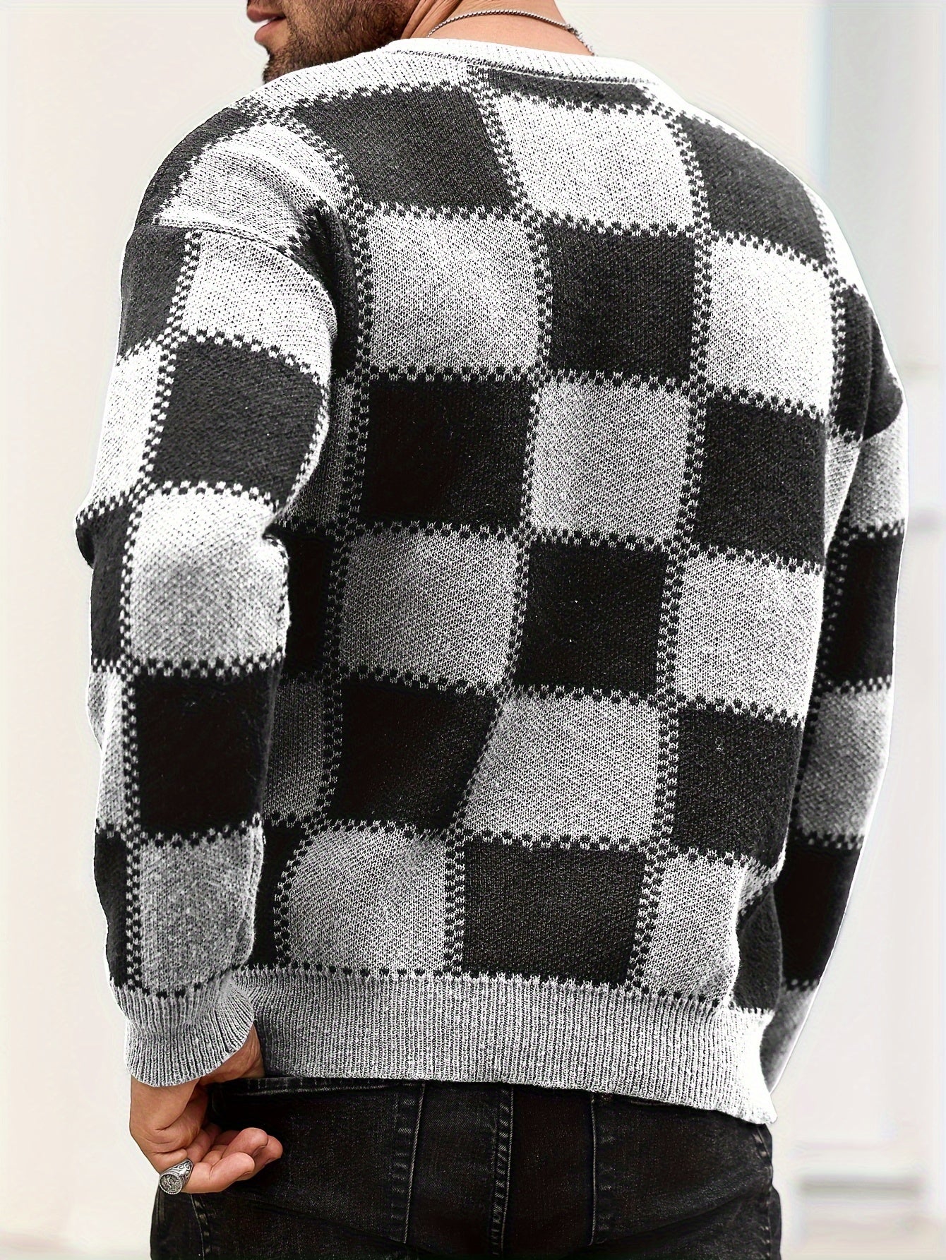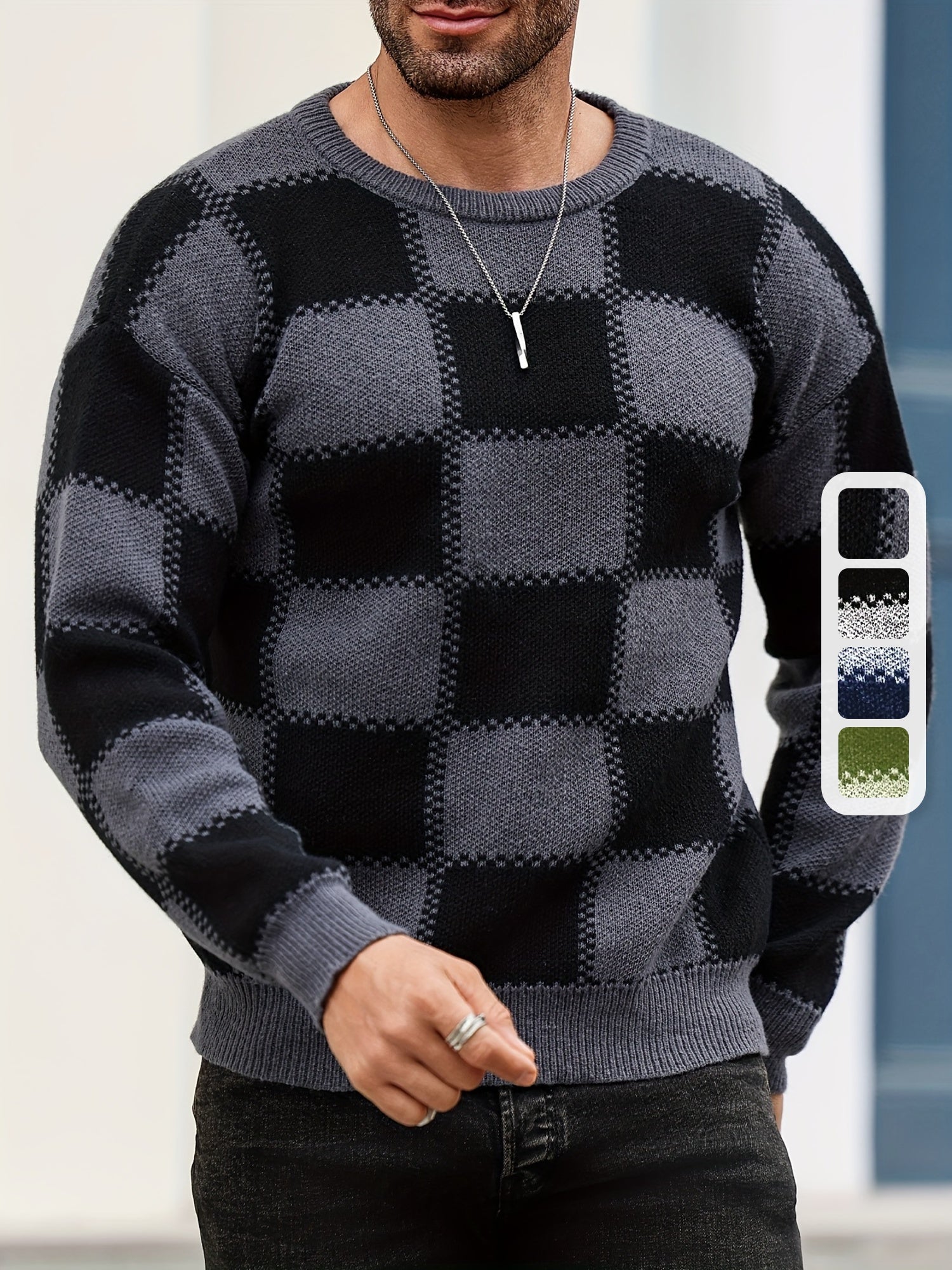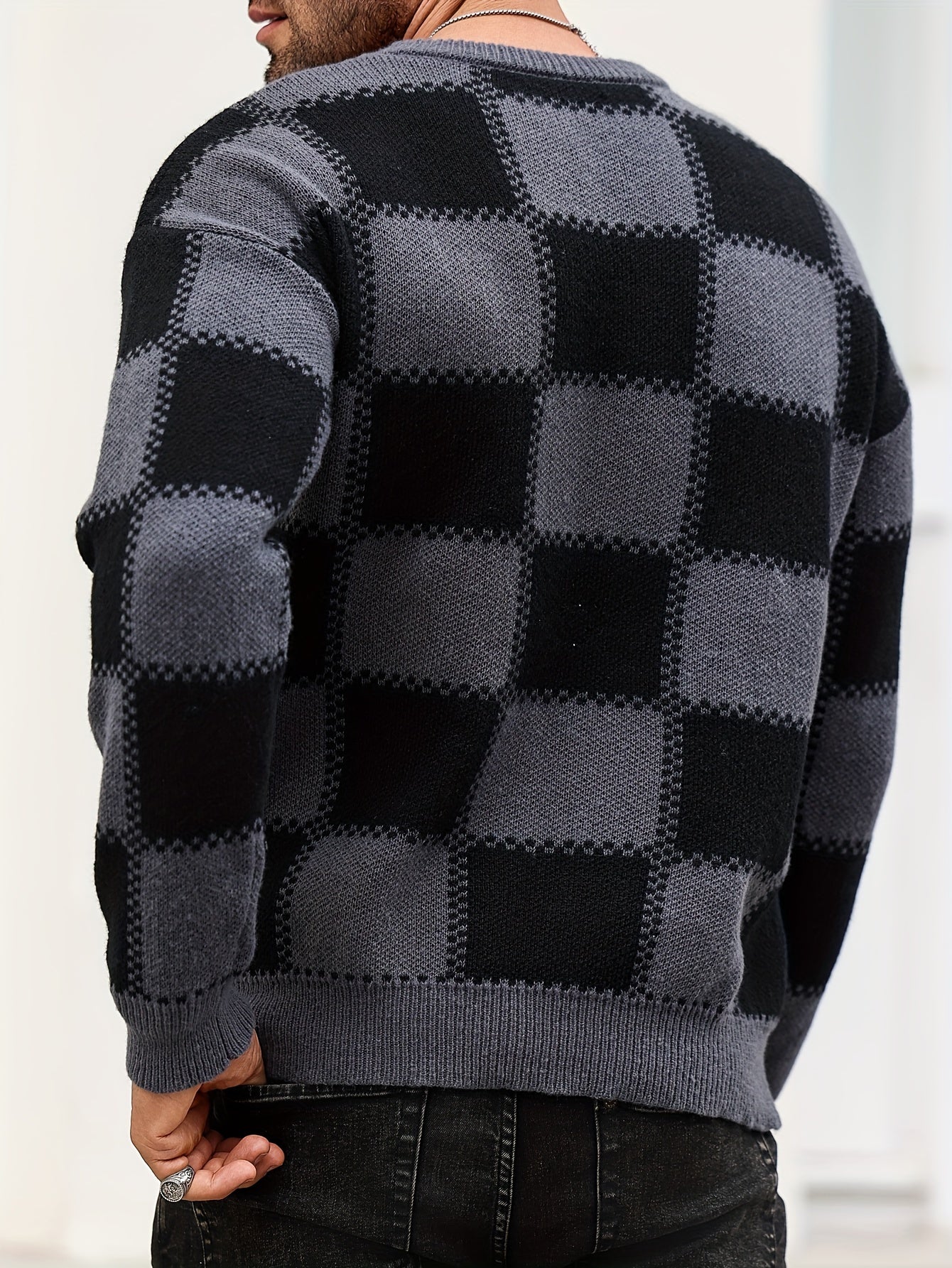 Տղամարդկանց գունաբլոկինգ տեքստուրային պրինտ, պատահական թրենդային սվիտեր, երկարաթև պուլովեր՝ որպես նվեր աշնան և ձմռան համար
