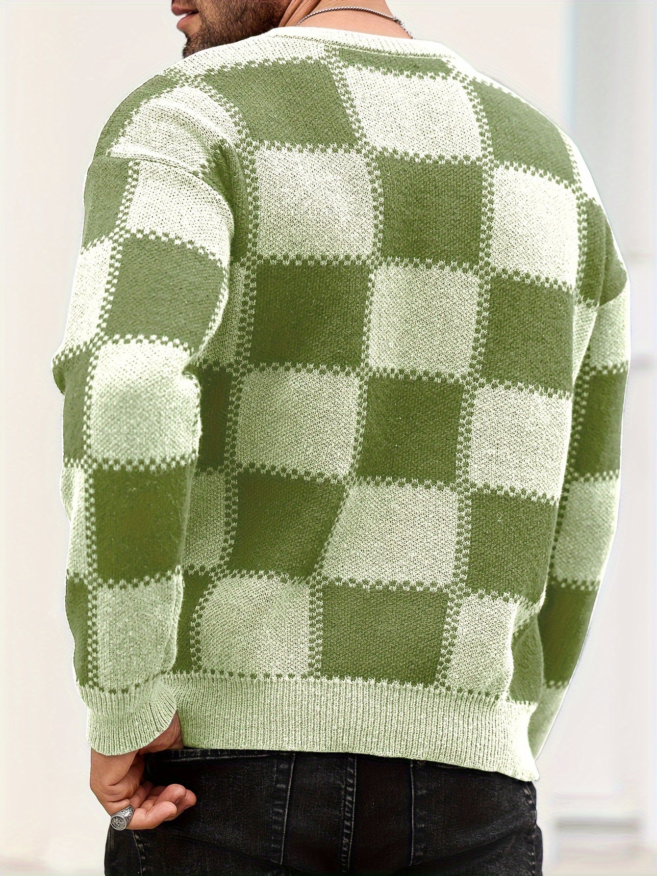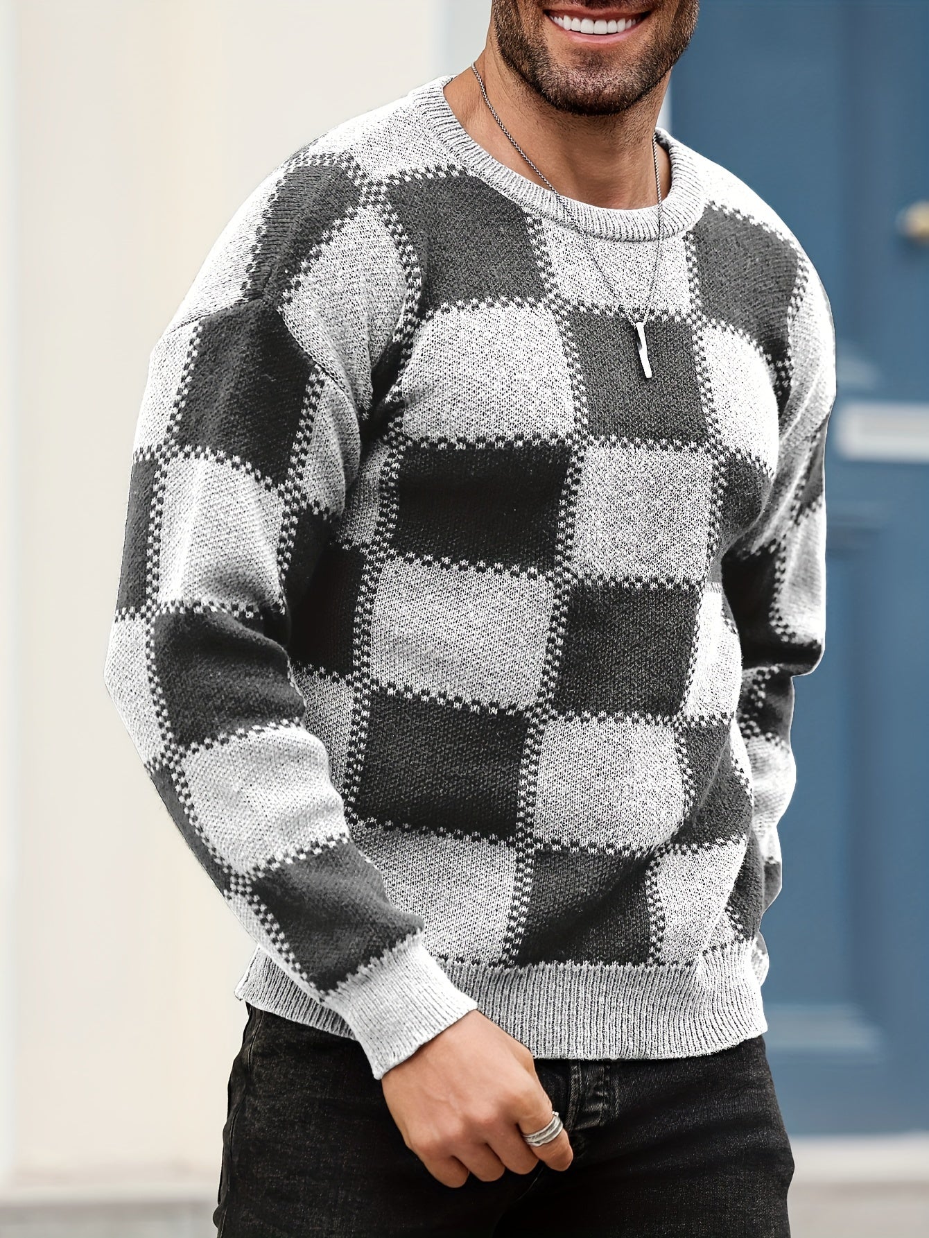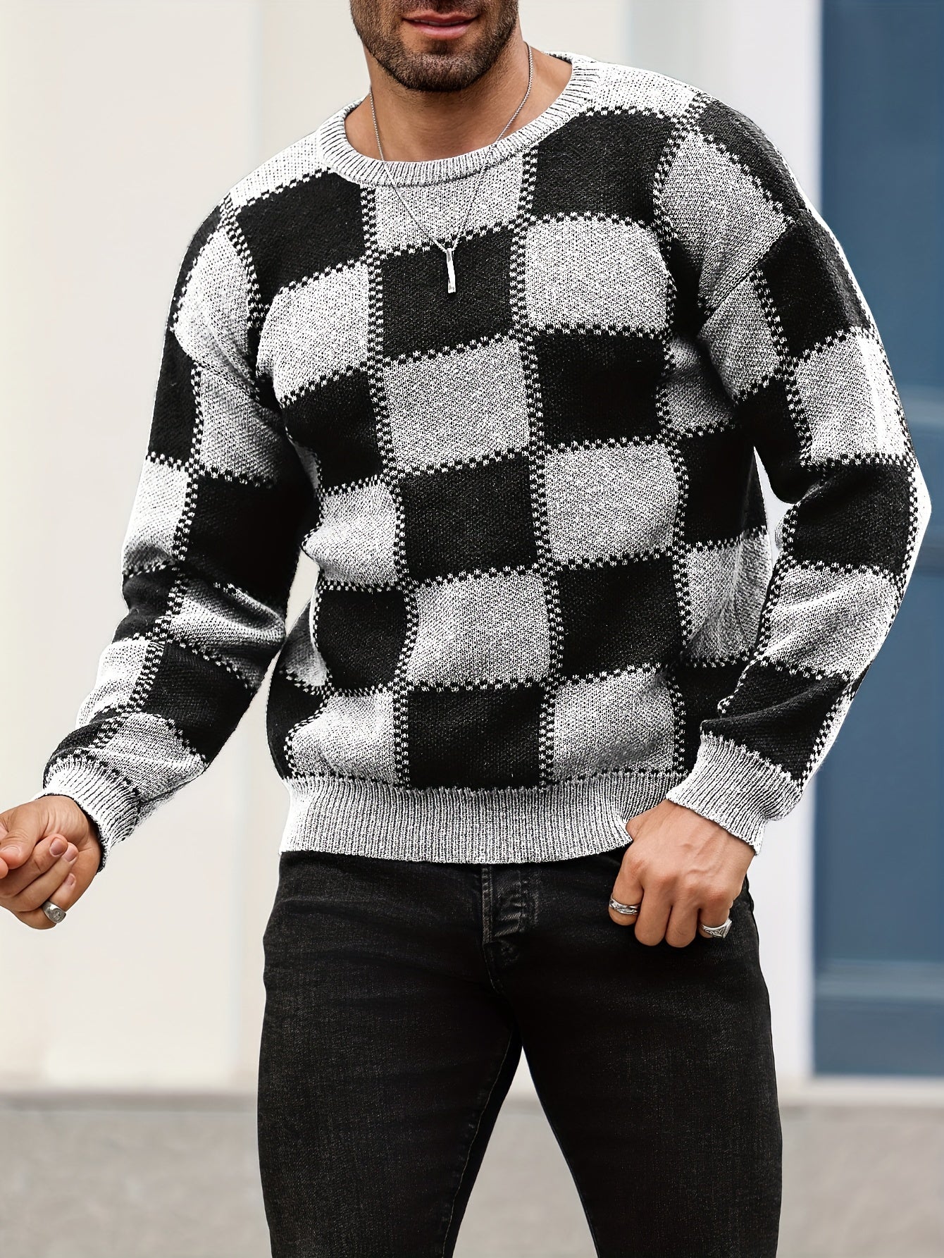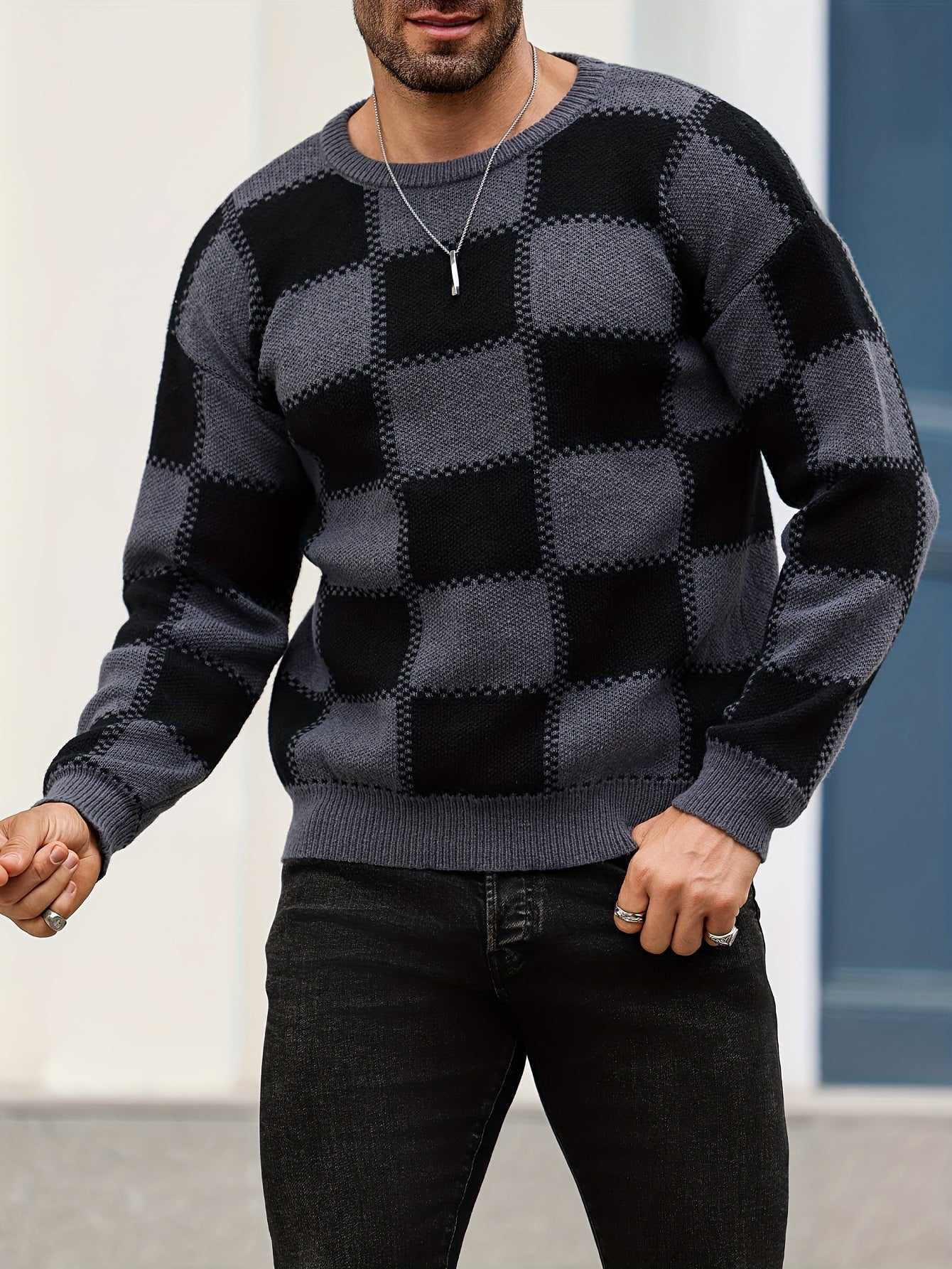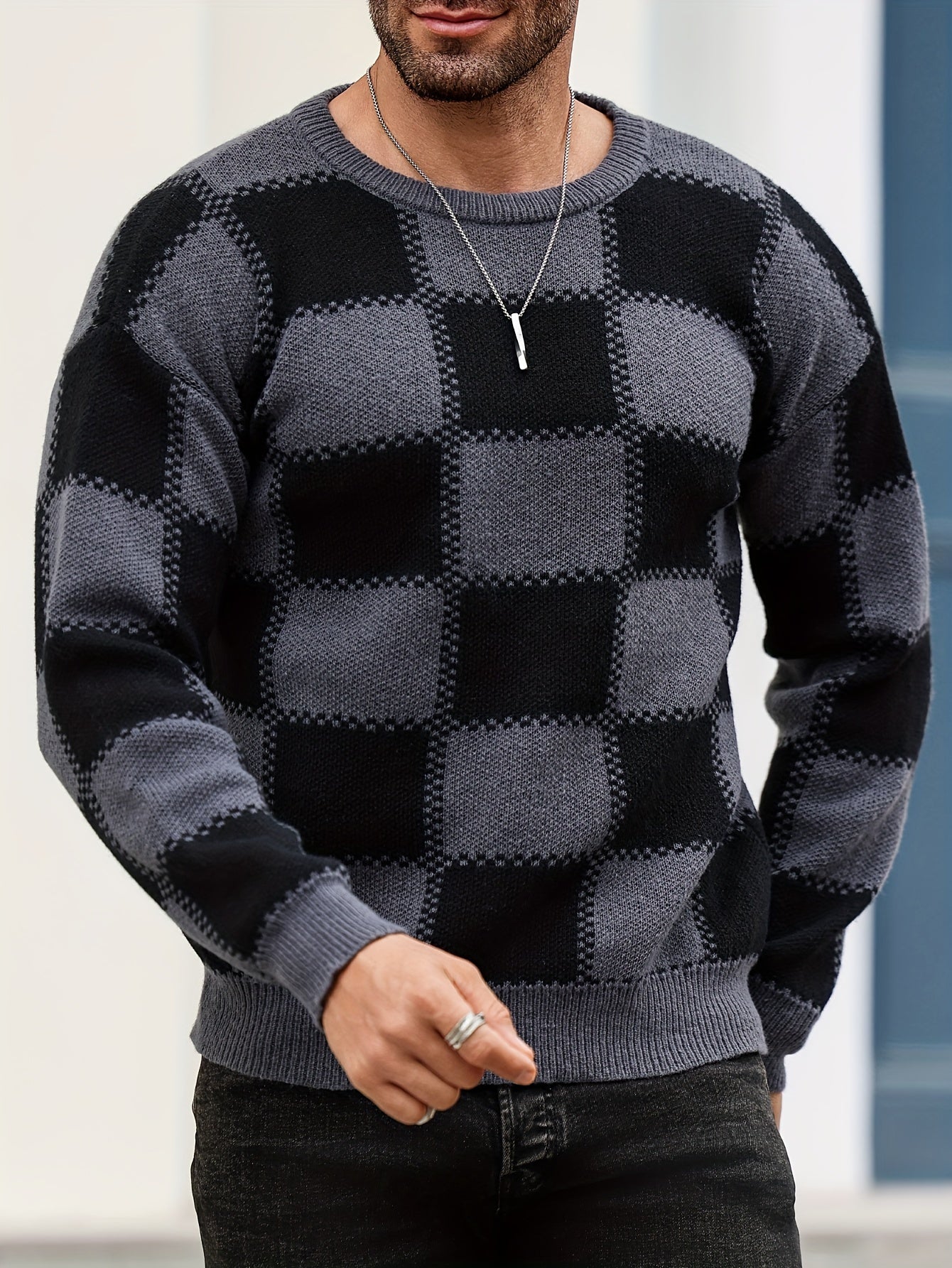 Տղամարդկանց գունաբլոկինգ տեքստուրային պրինտ, պատահական թրենդային սվիտեր, երկարաթև պուլովեր՝ որպես նվեր աշնան և ձմռան համար