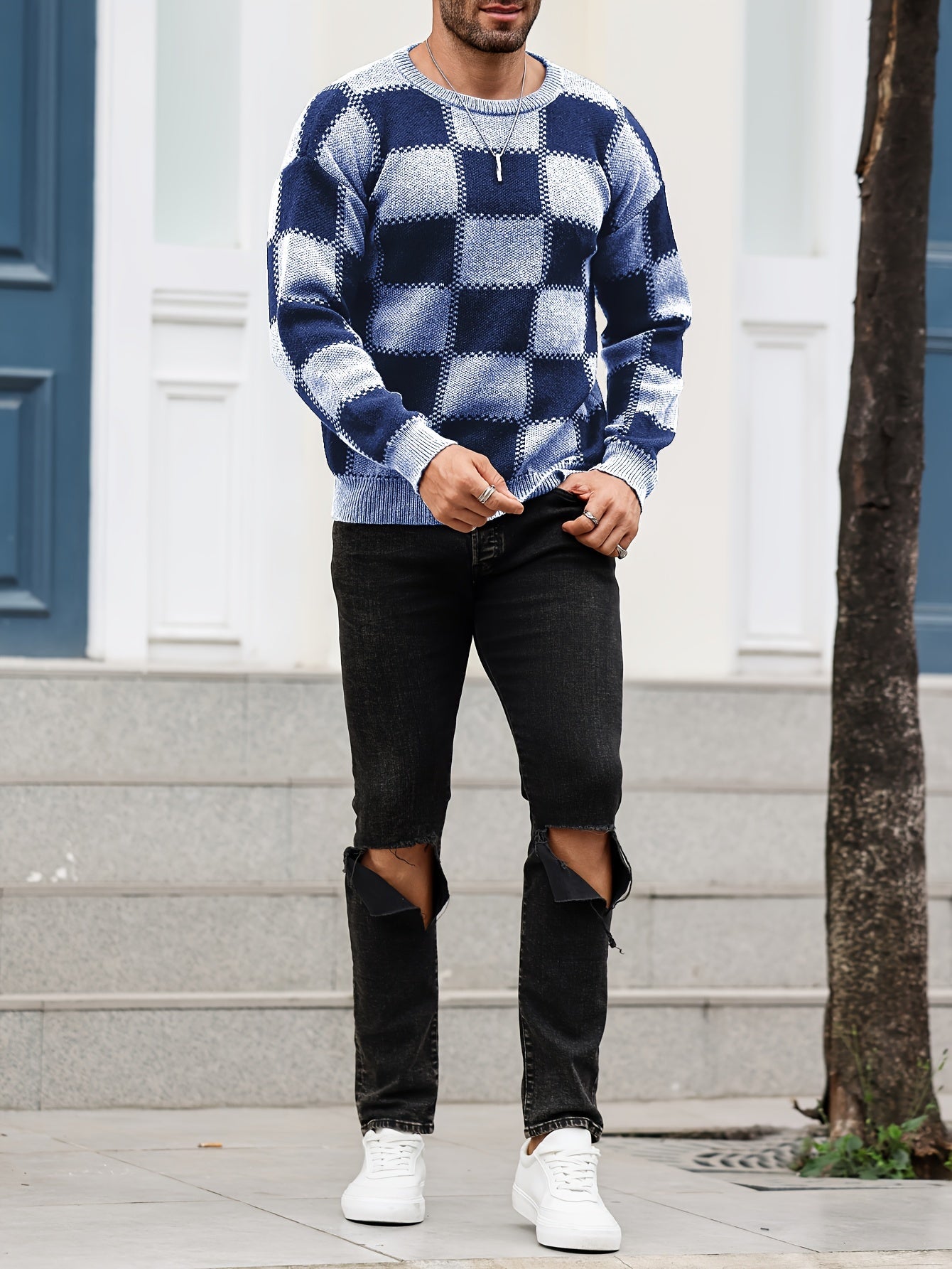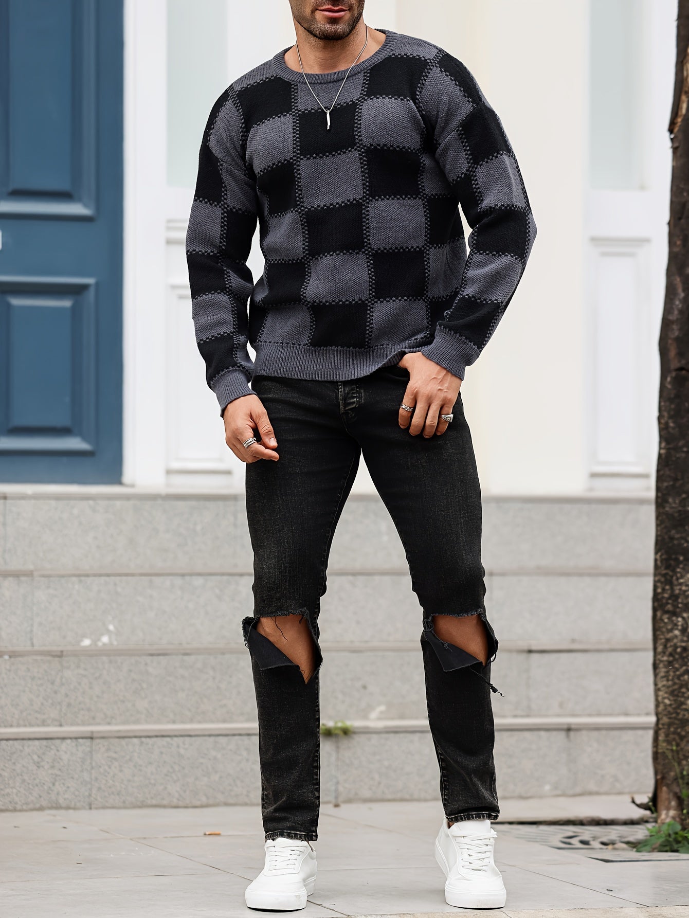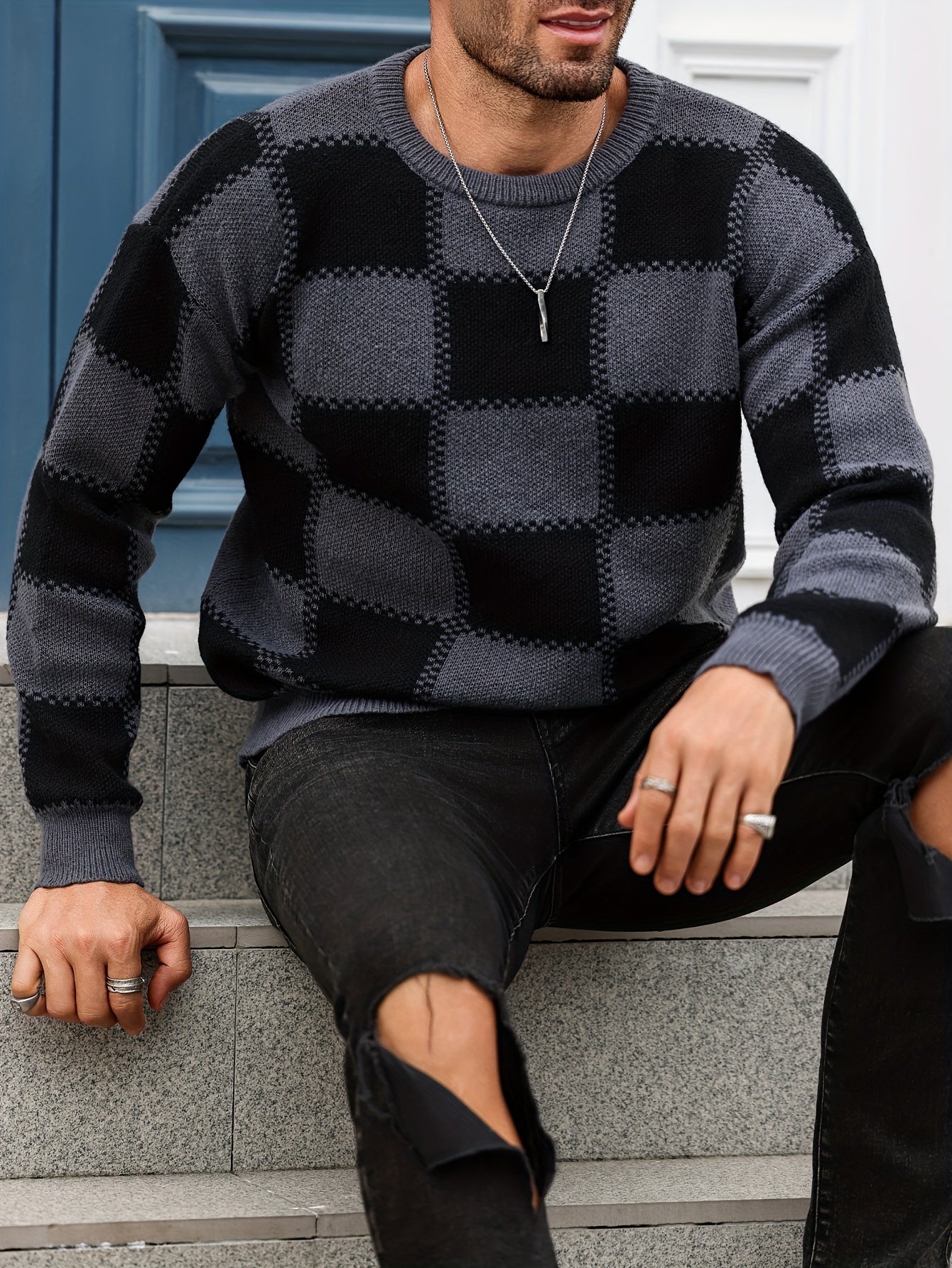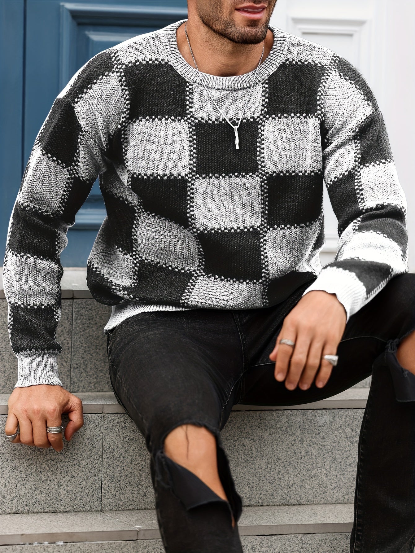 Տղամարդկանց գունաբլոկինգ տեքստուրային պրինտ, պատահական թրենդային սվիտեր, երկարաթև պուլովեր՝ որպես նվեր աշնան և ձմռան համար