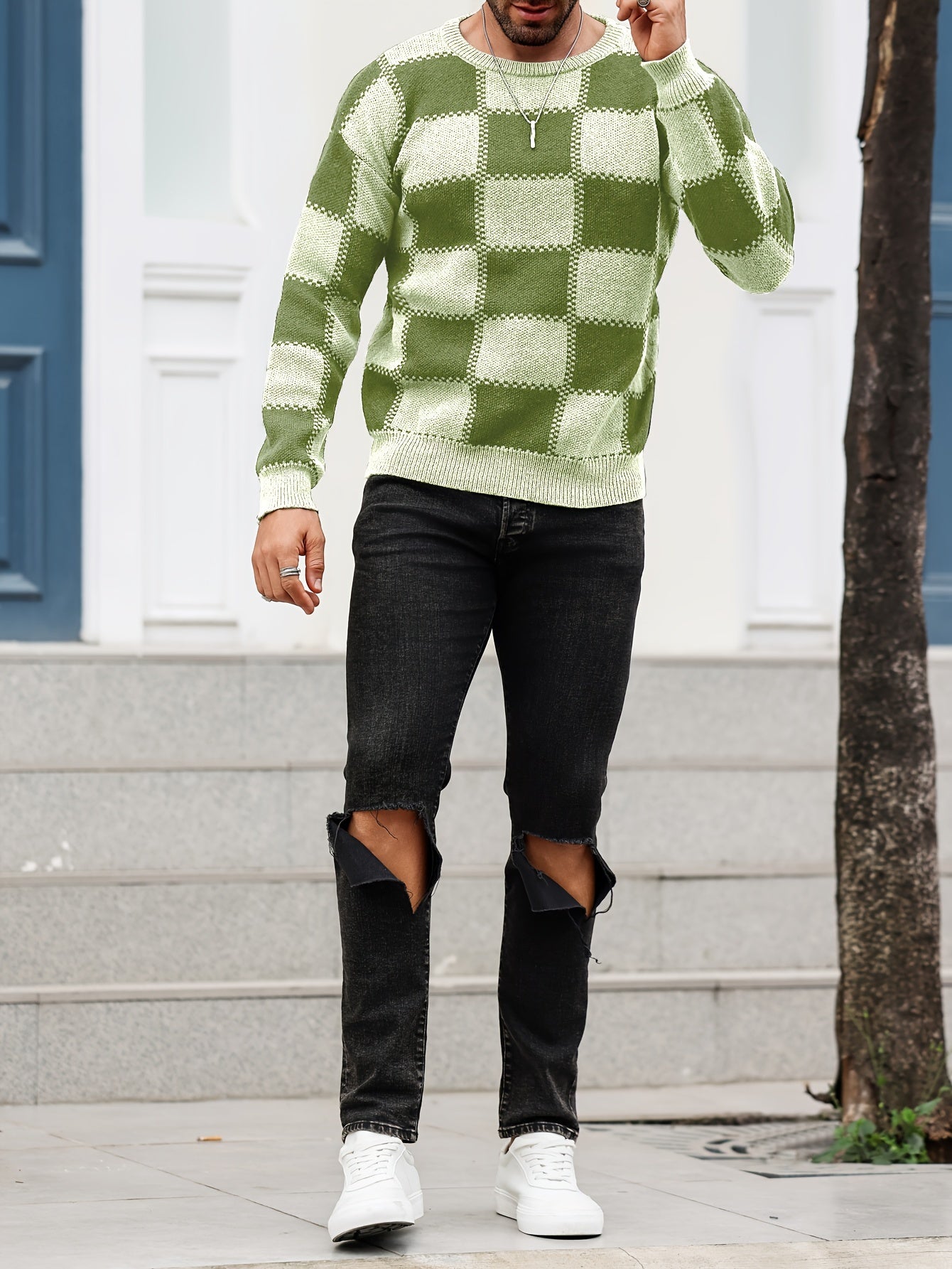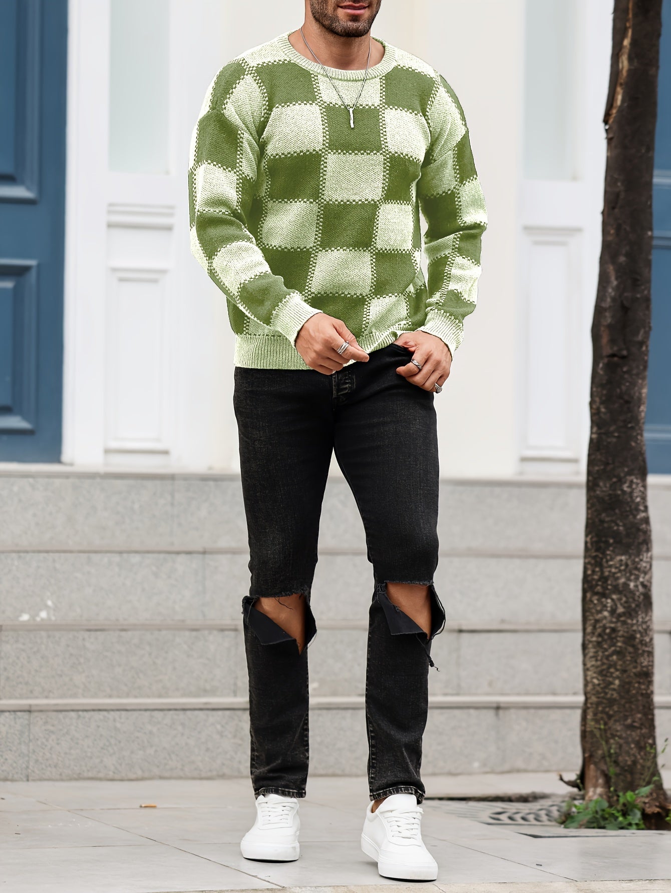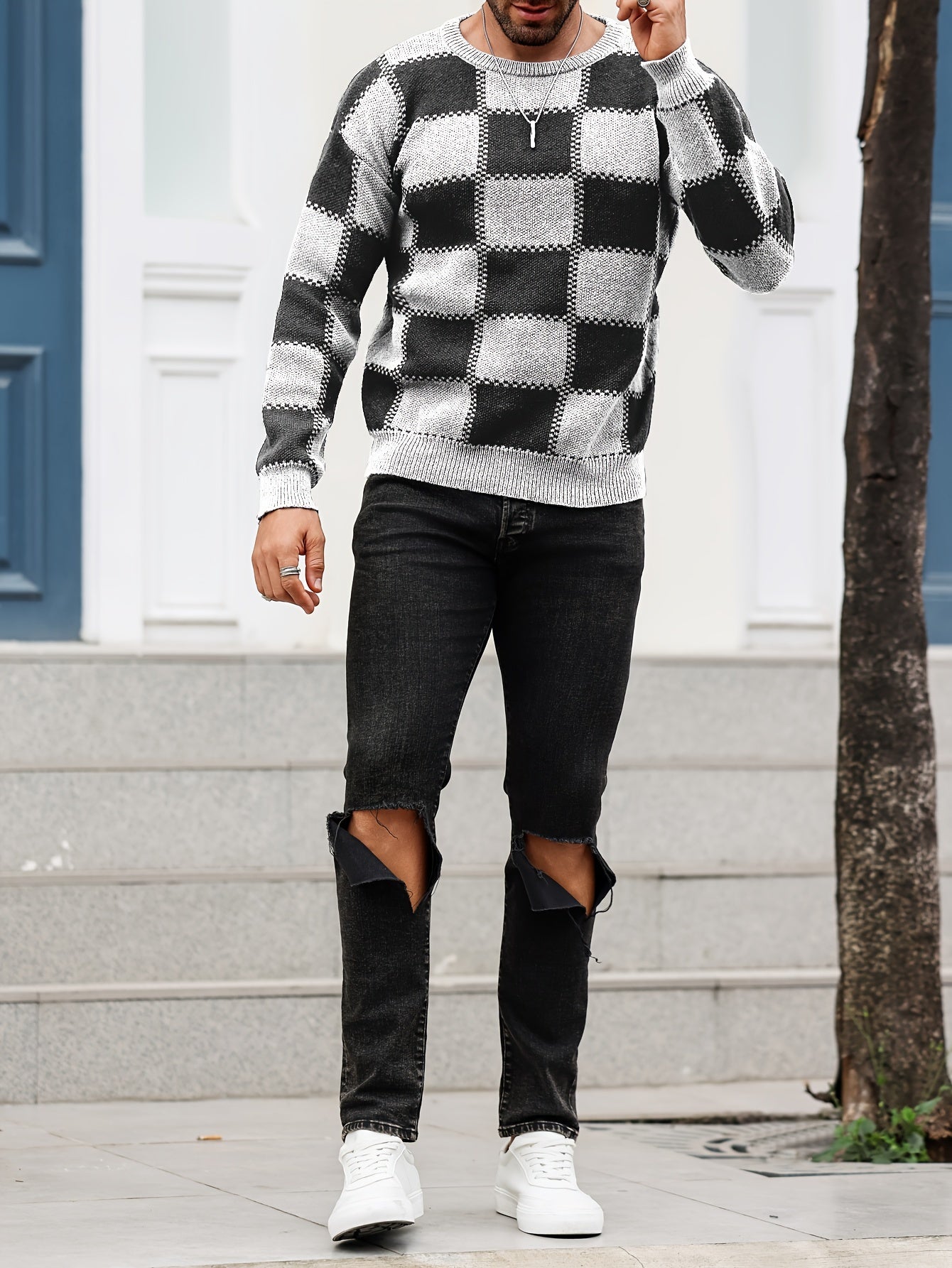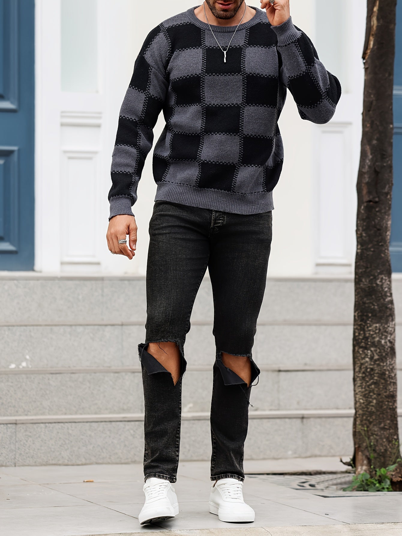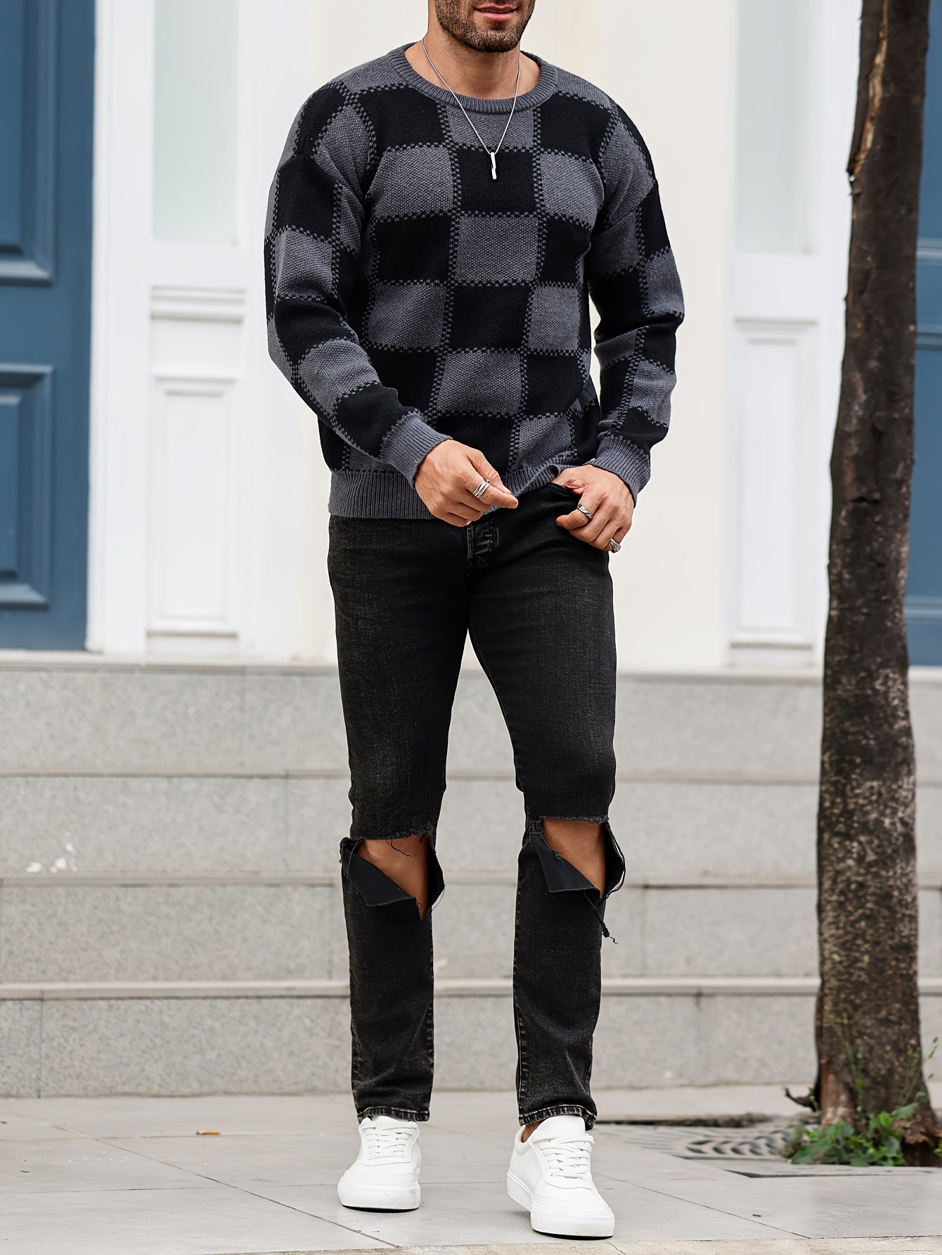 Տղամարդկանց գունաբլոկինգ տեքստուրային պրինտ, պատահական թրենդային սվիտեր, երկարաթև պուլովեր՝ որպես նվեր աշնան և ձմռան համար