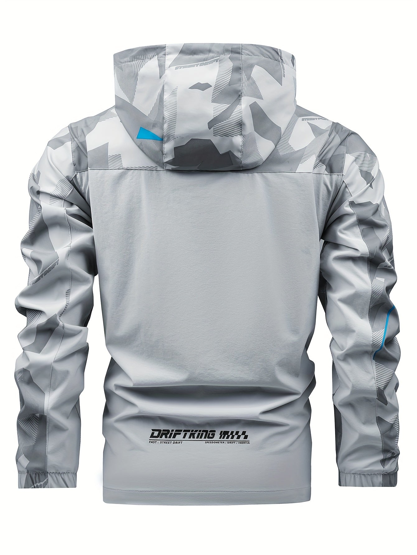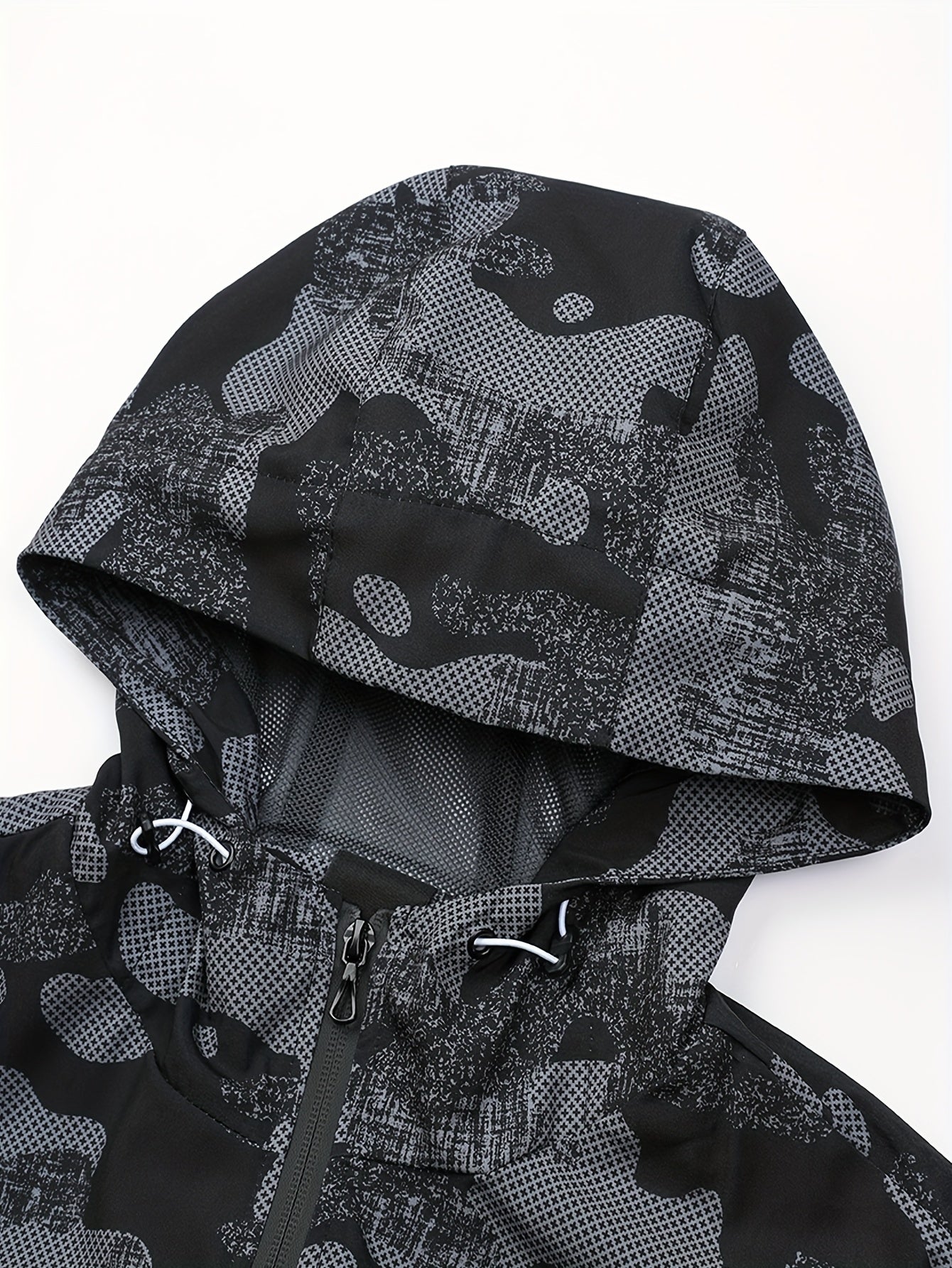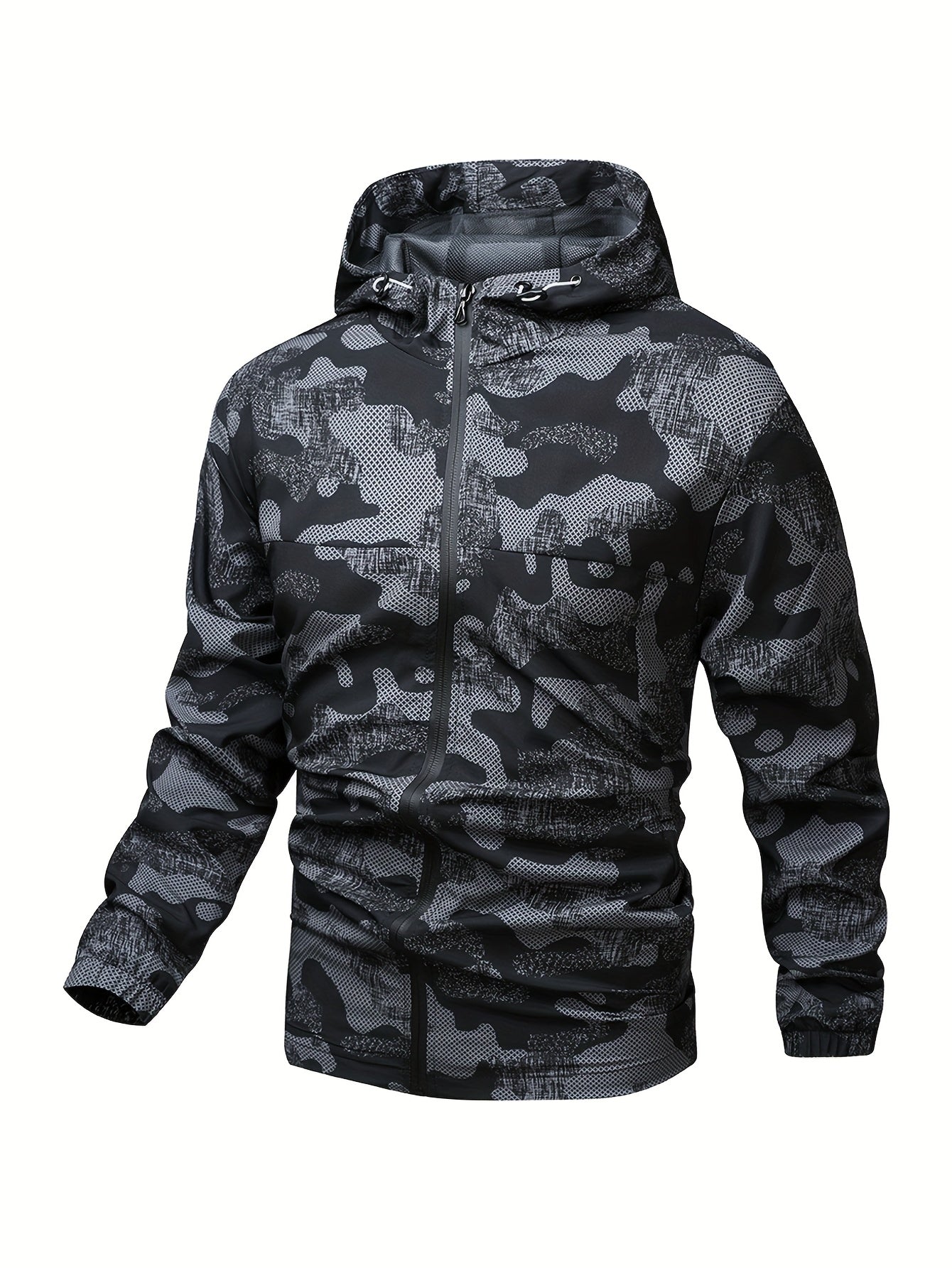 Men'S Lightweight Climbing Hooded Jacket - Quick-Dry Windproof Outdoor Sports Coat with Camouflage Pattern, Spring/Fall Casual & Training Wear, Regular Fit for Hiking, Running, Gym, Hiking Apparel, Durable Fabric