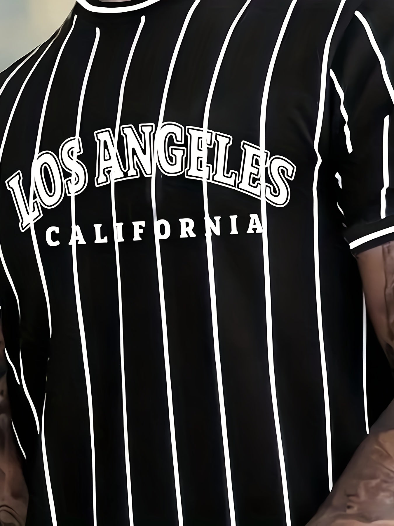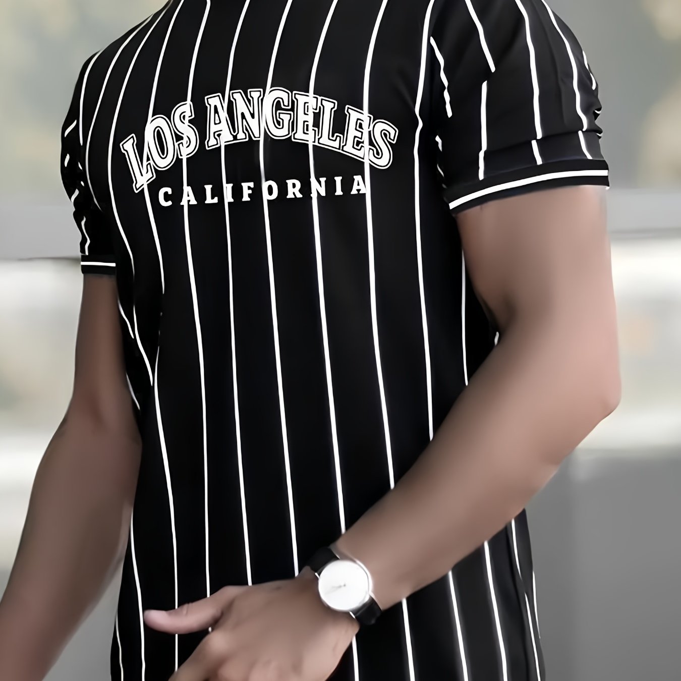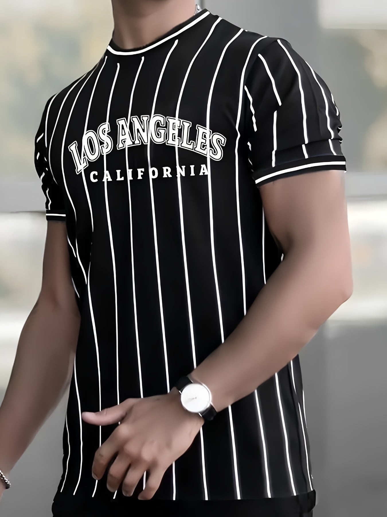 Տղամարդու Լոս Անջելեսի Կալիֆոռնիա ոճի գրաֆիկական մարզաշապիկ՝ սև, սպիտակ, գծավոր, առօրյա, փողոցային ոճի, շնչող, ամառային, կլոր վզնոցով, կարճ թևքերով վերնաշապիկ, սովորական չափսերով, առօրյա, փողոցային ոճի, հարթ հյուսվածքով գործվածքով։