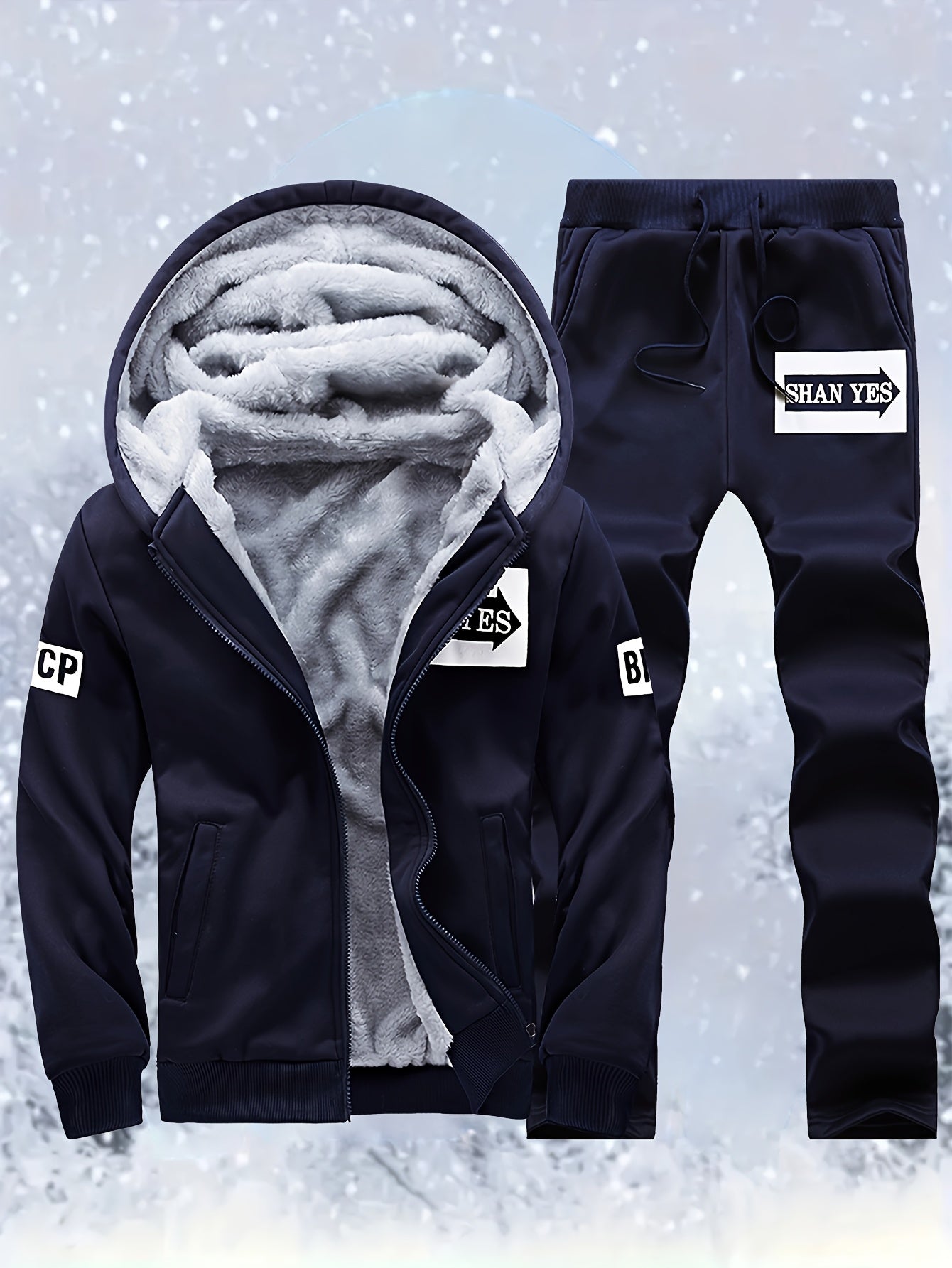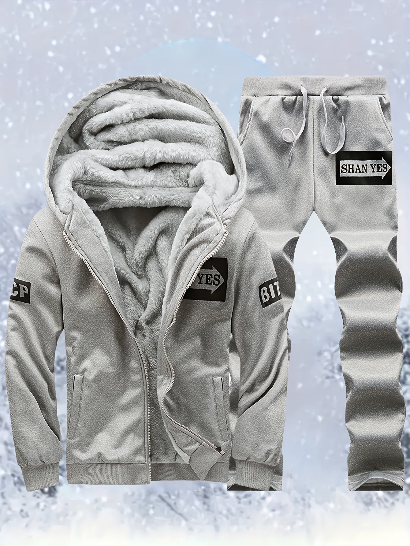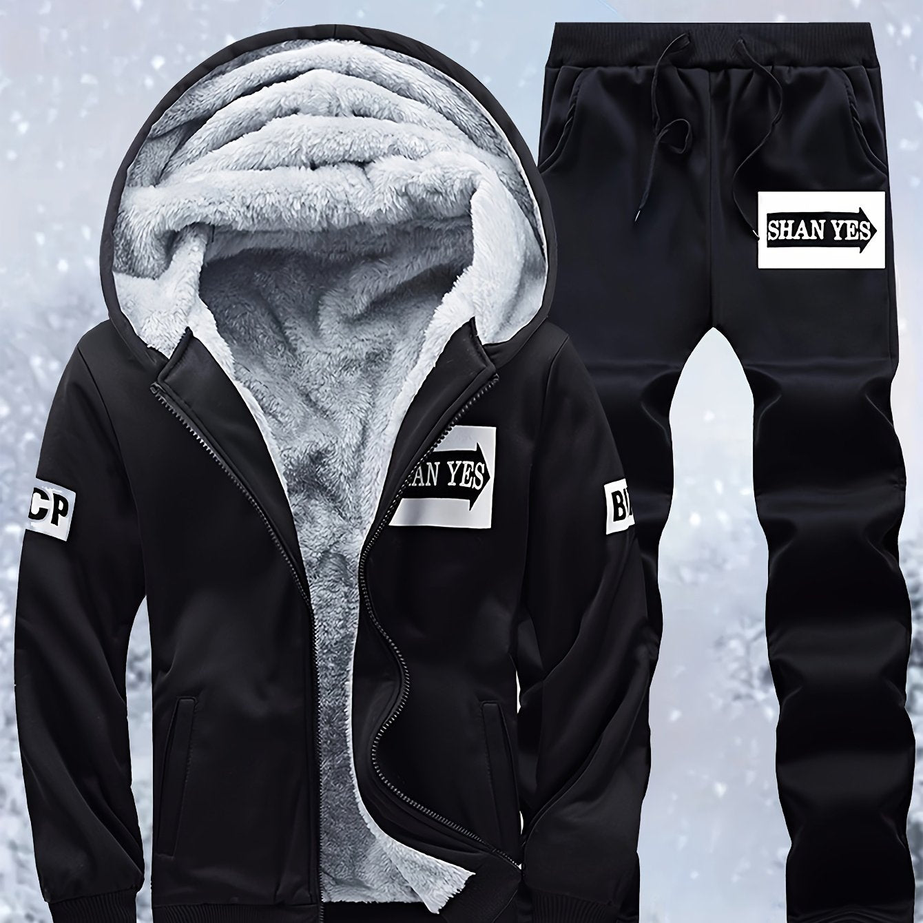 Տղամարդու «SHAN YES» այբուբենի նախշերով, խիտ աստառով, գլխարկով սվիտերի և վազքի համար նախատեսված տաք մարզական հագուստ, աշնանային և ձմեռային։