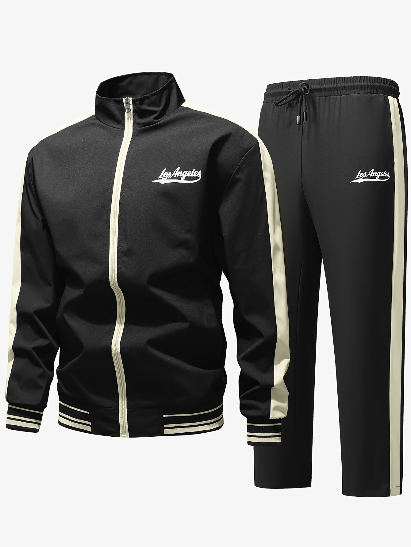 Տղամարդու սպորտային, առօրյա բաճկոնի և տաբատի հավաքածու, երկգույն միահյուսված տառային նախշերով, ոճային, բոլոր եղանակների համար նախատեսված, մարզիկների կողմից նախընտրելի TZ6062