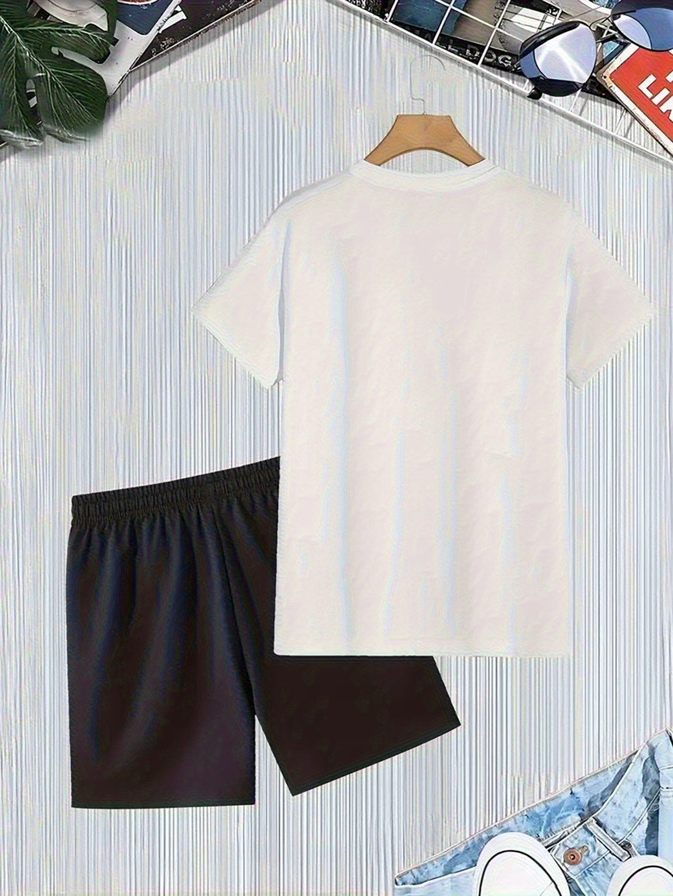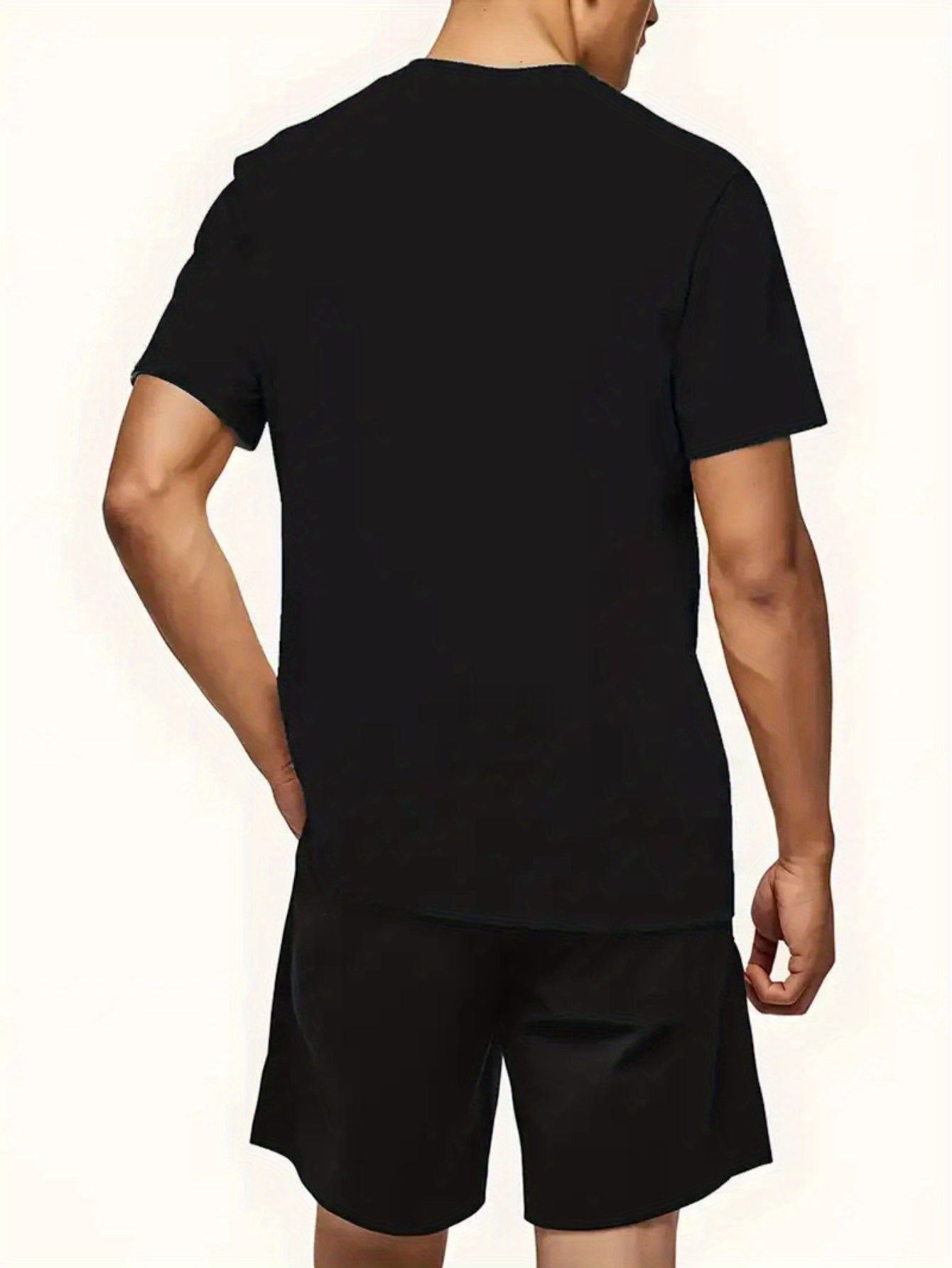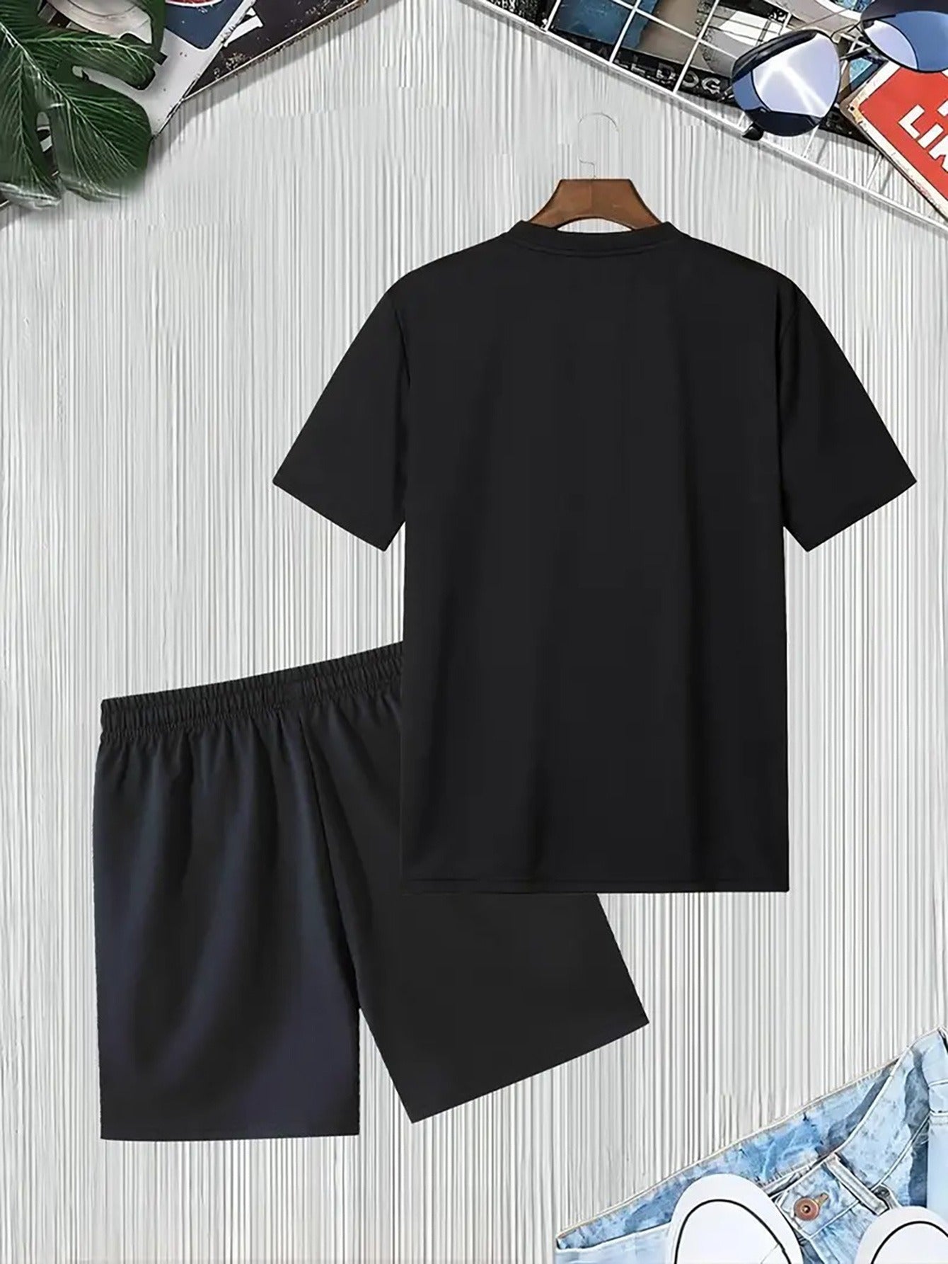 Տղամարդկանց ամառային առօրյա սպորտային երկու մասից բաղկացած հավաքածու՝ LADA տառերով նախշերով շապիկ և սև լարով շորտեր, առօրյա սպորտային հագուստ, սովորական չափս՝ իդեալական ամառային բացօթյա օգտագործման համար։