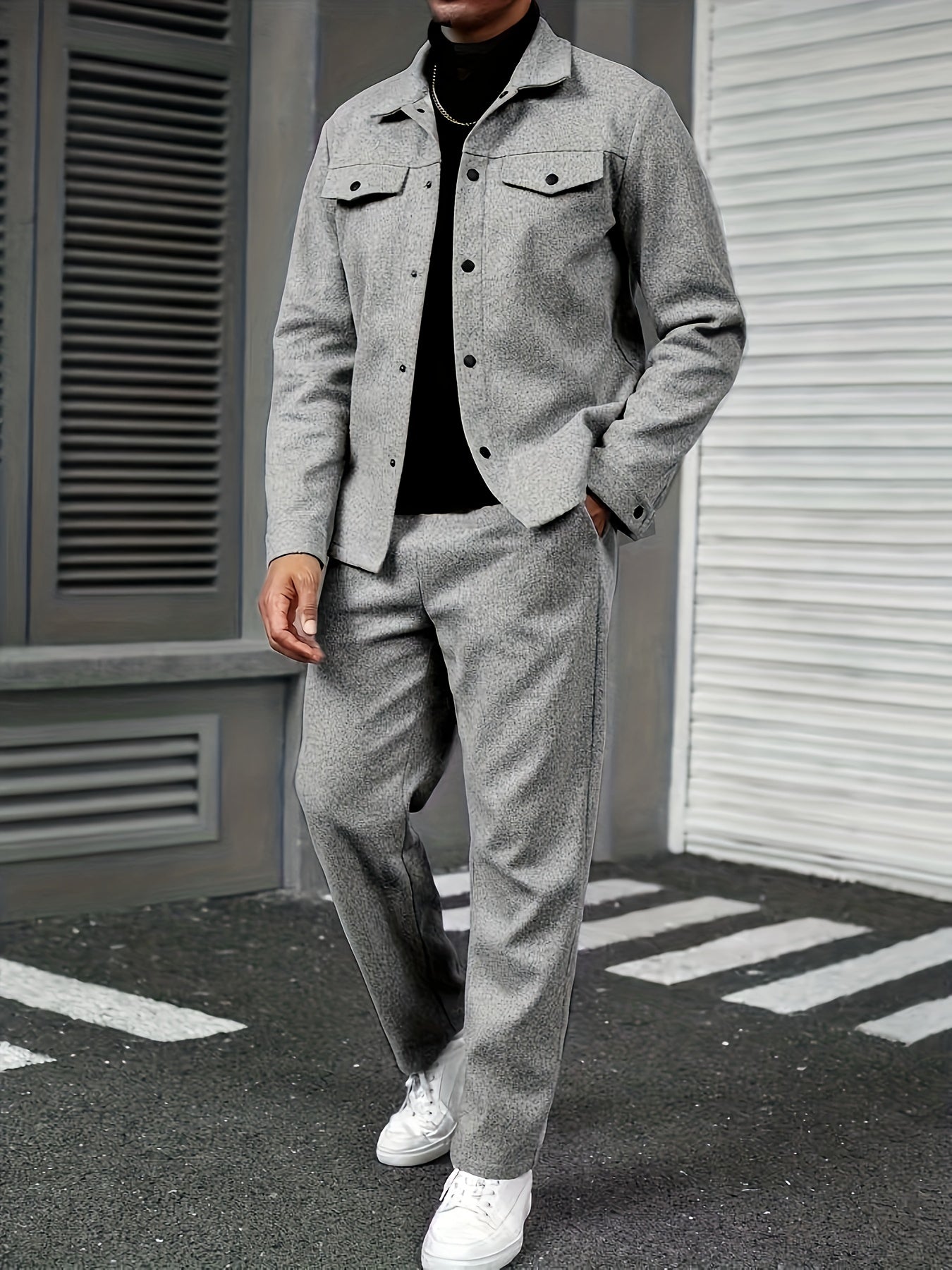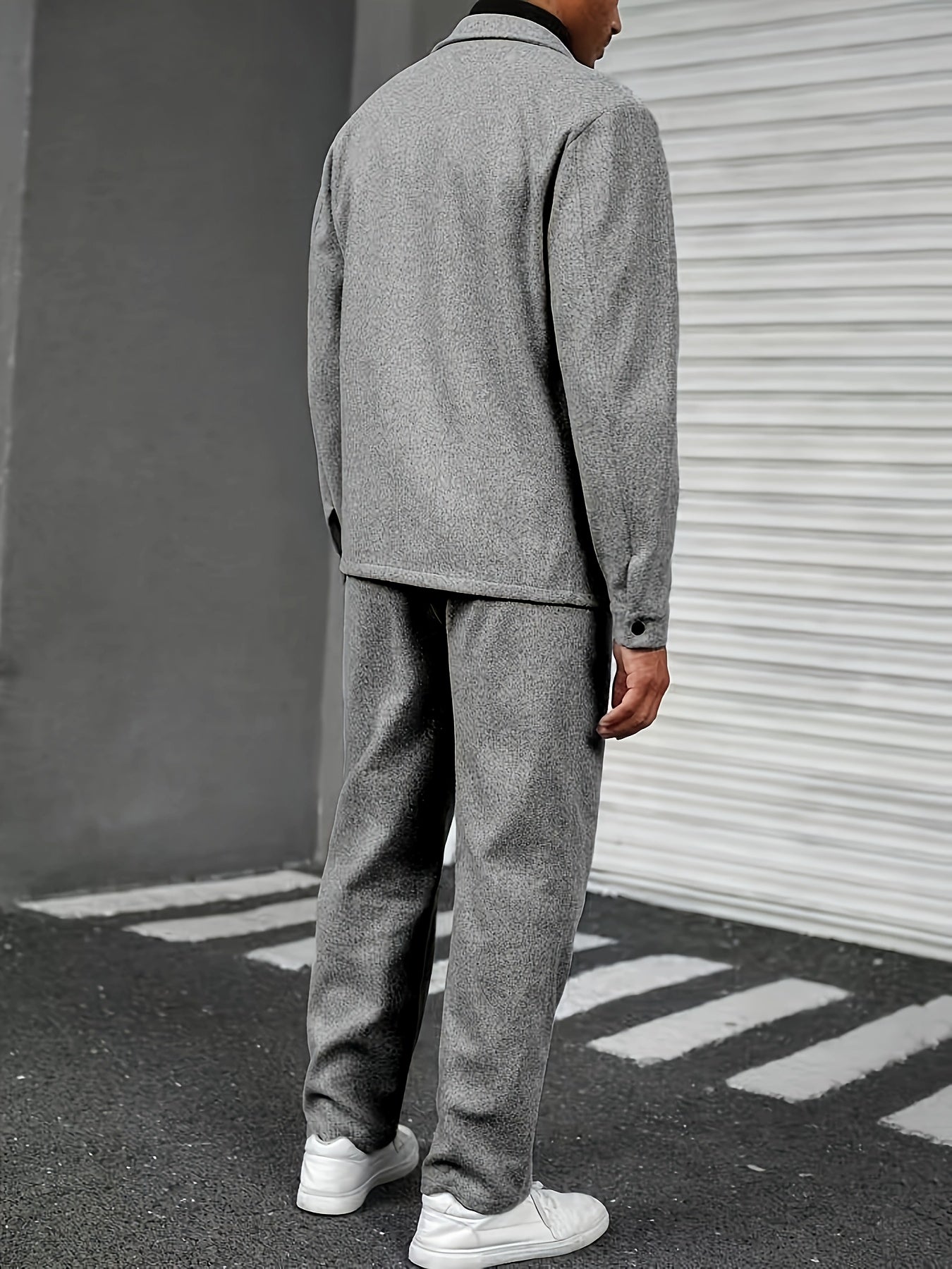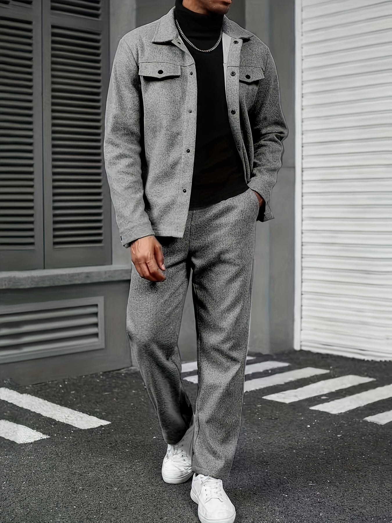 Տղամարդու երկկտոր առօրյա հագուստ - սև կոճակներով վերնաշապիկ և տաբատ, երկար թևքերով, ազատ չափսերով, չձգվող գործվածքով, իդեալական է գարնան/աշնան համար, առօրյա հագուստ | ազատ չափսերով | կոճակներով վերնաշապիկ