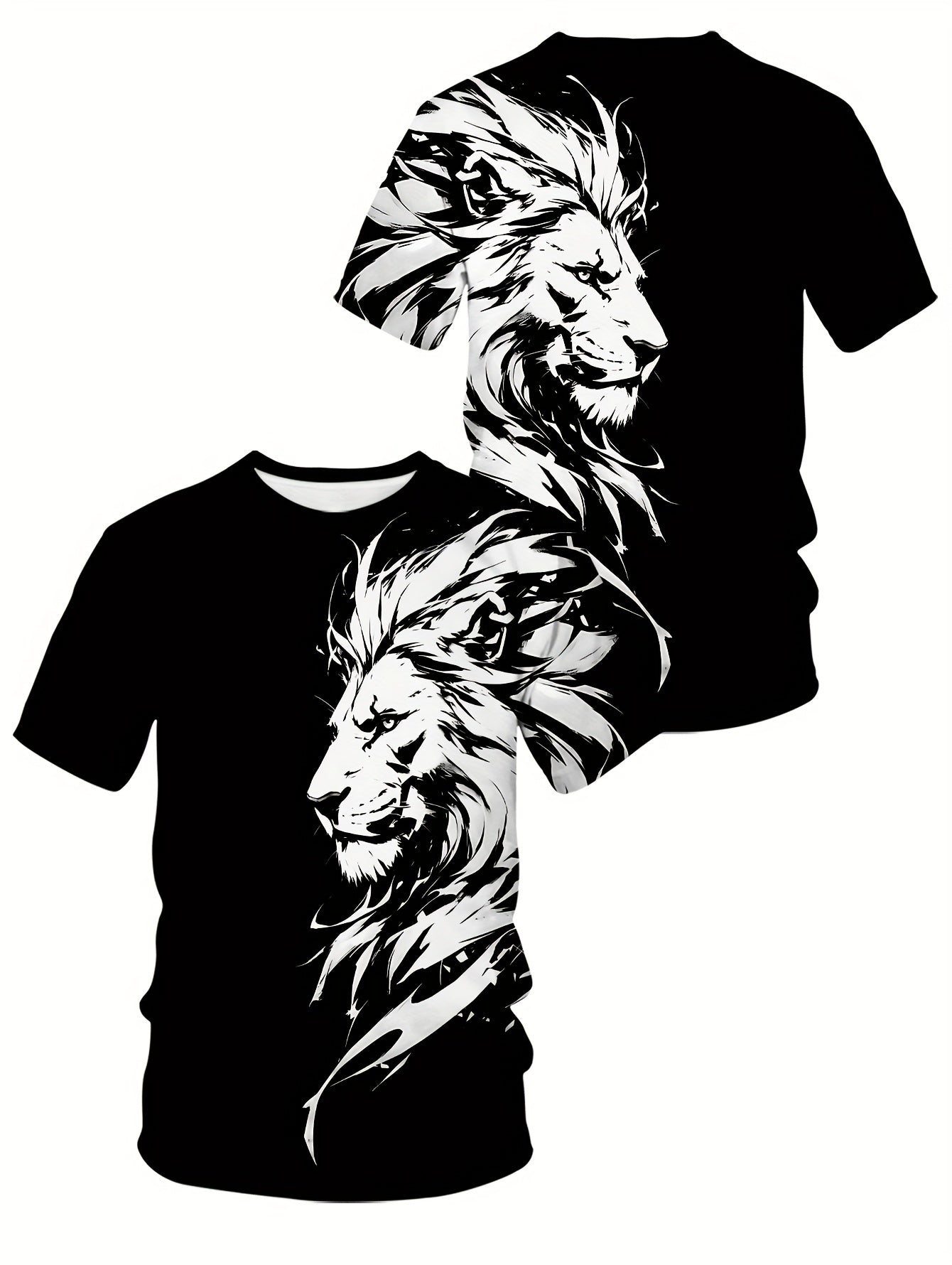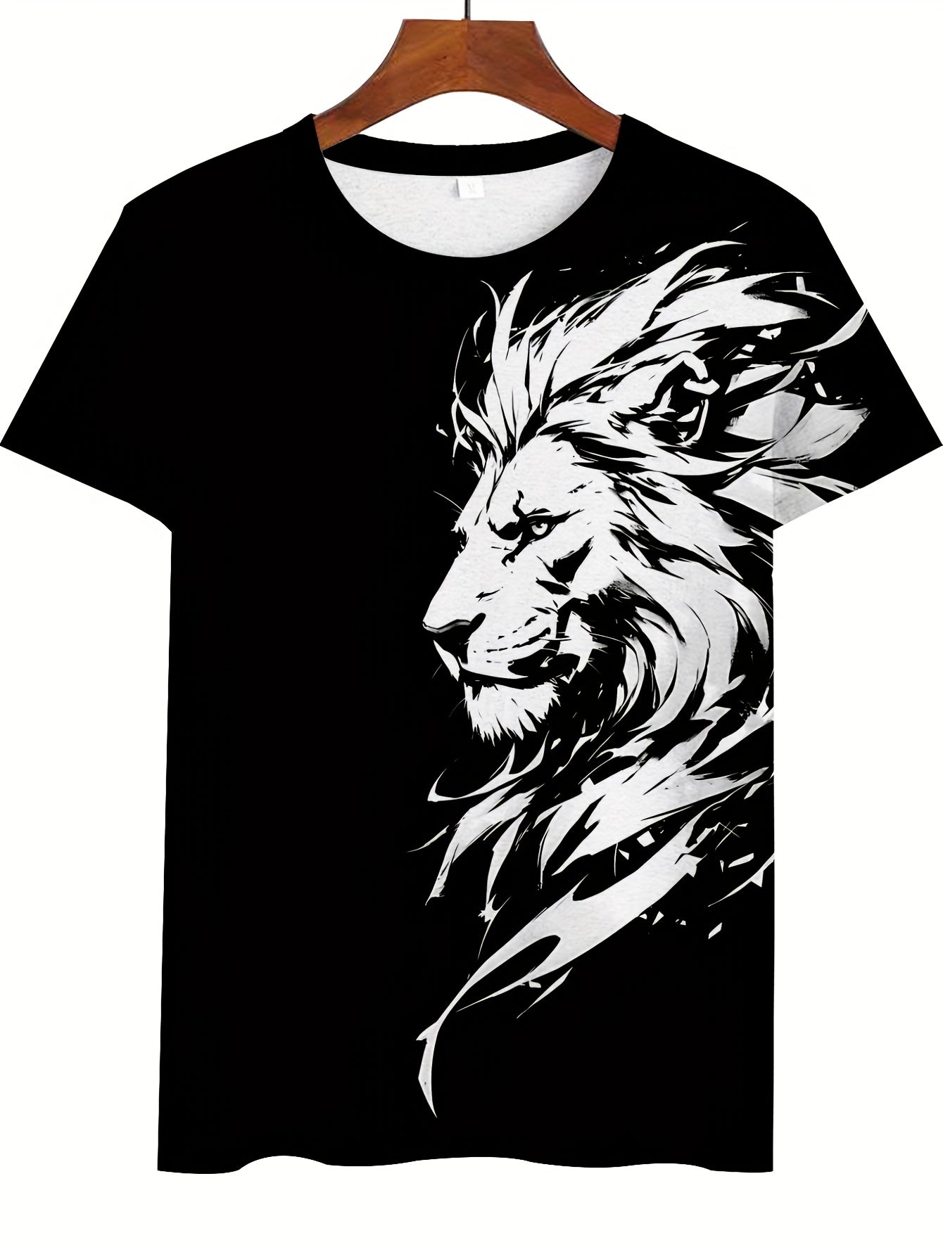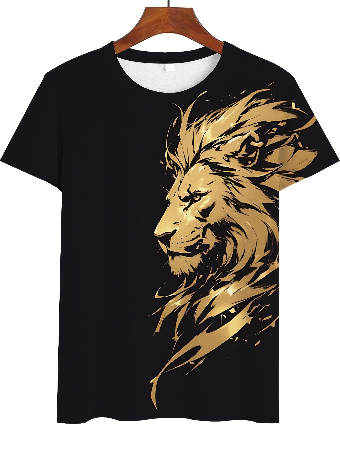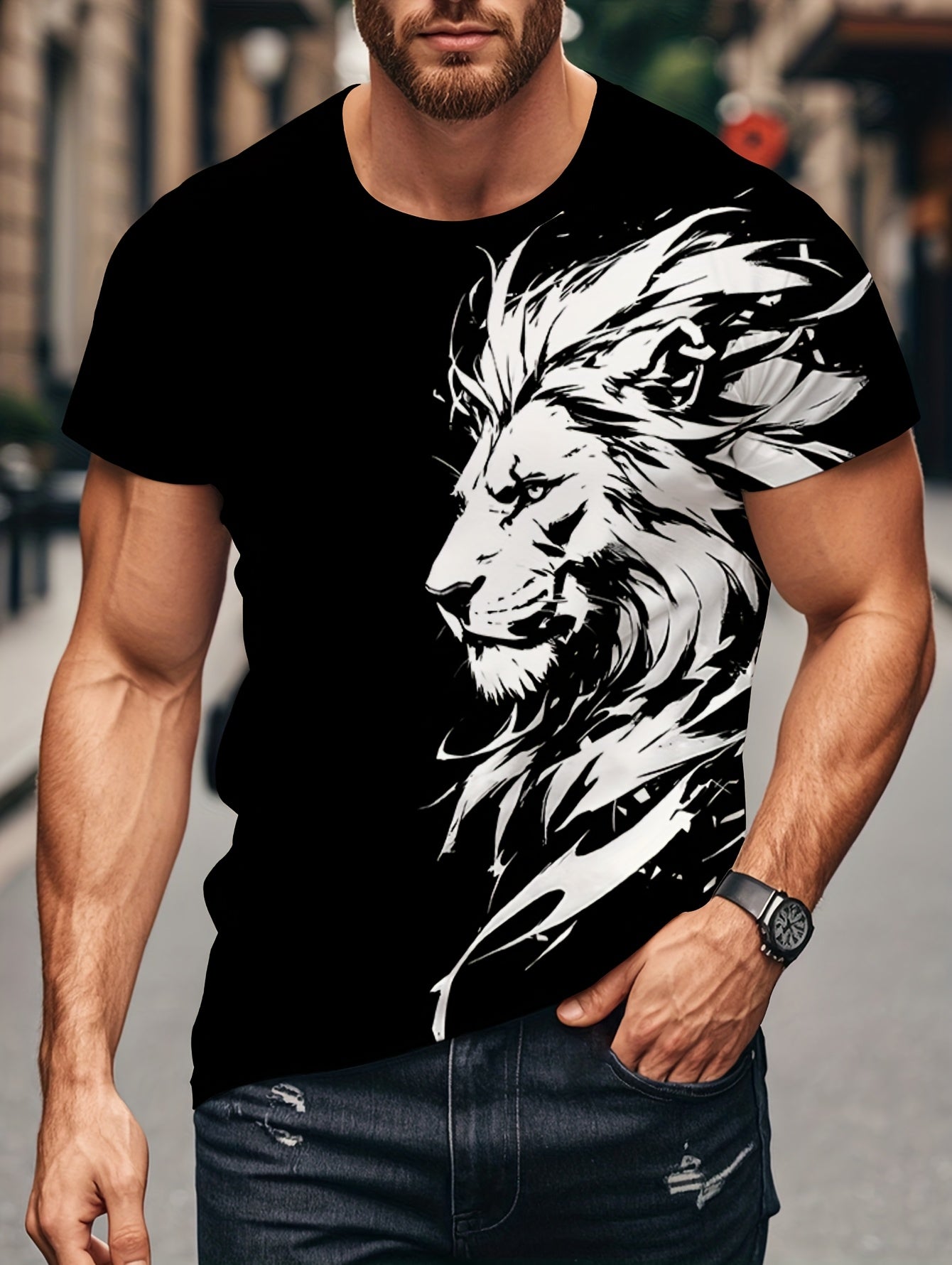 Նոր Առյուծի 3D Տպագրության Նախշ, Կարճ Թևքերով Կլոր Վզիկով Շապիկ, Տղամարդկանց Արտաքին Հագուստ