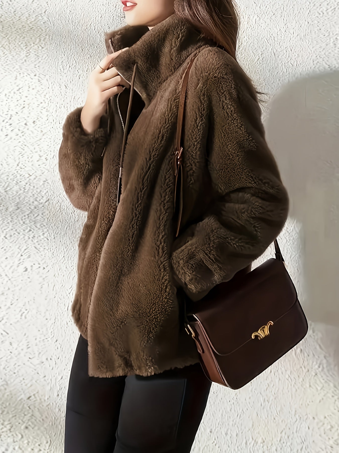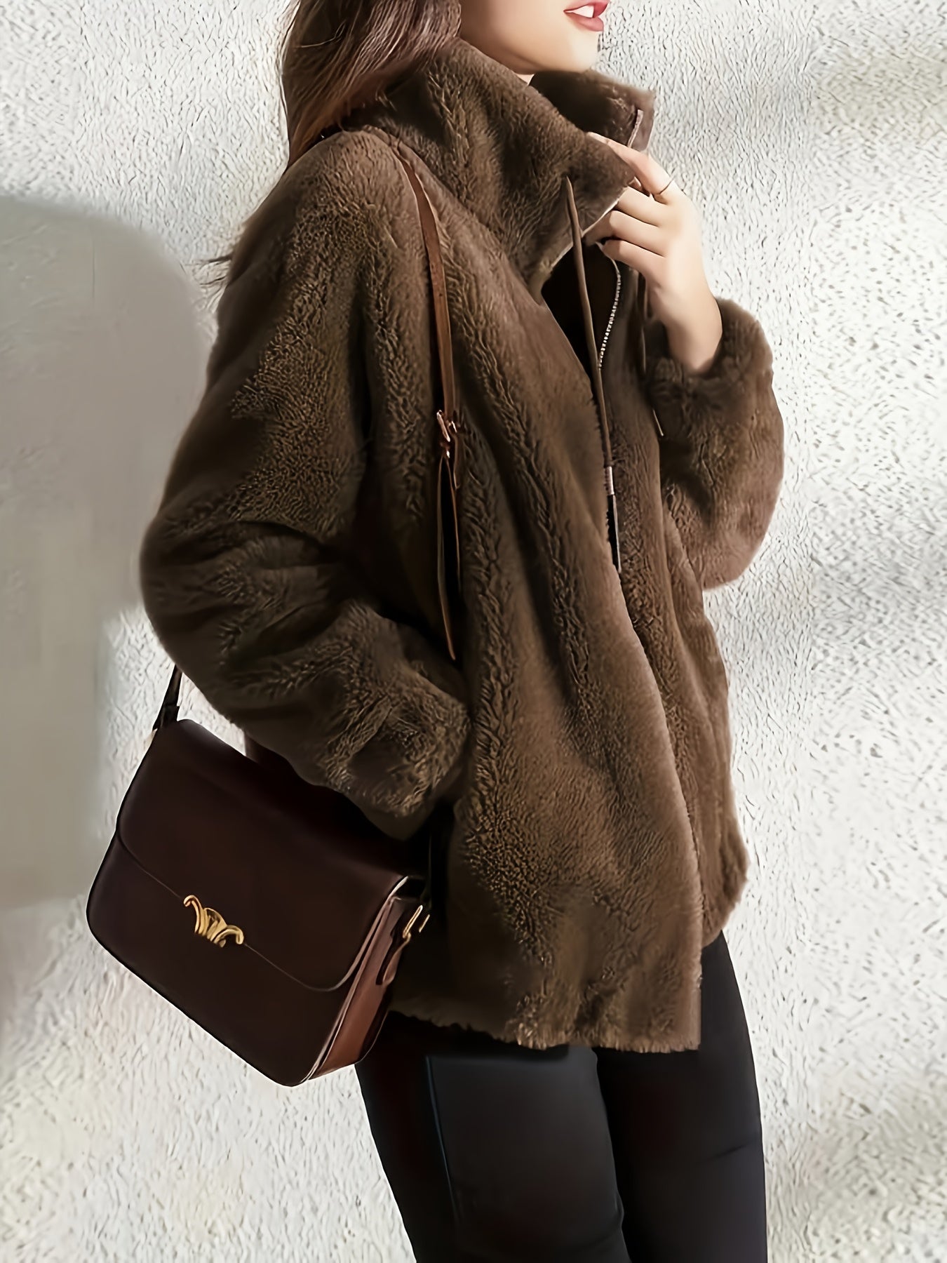 Մեծ չափս - կանացի նոր բրդյա բաճկոն, ձմեռային կարդիգան սվիտեր, հաստ և տաք երկկողմանի մարջանագույն բրդյա կտոր, ազատ և ոճային վերնազգեստ։
