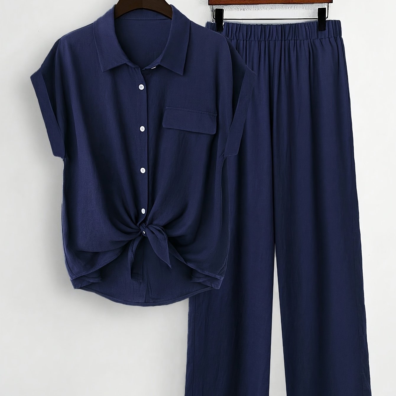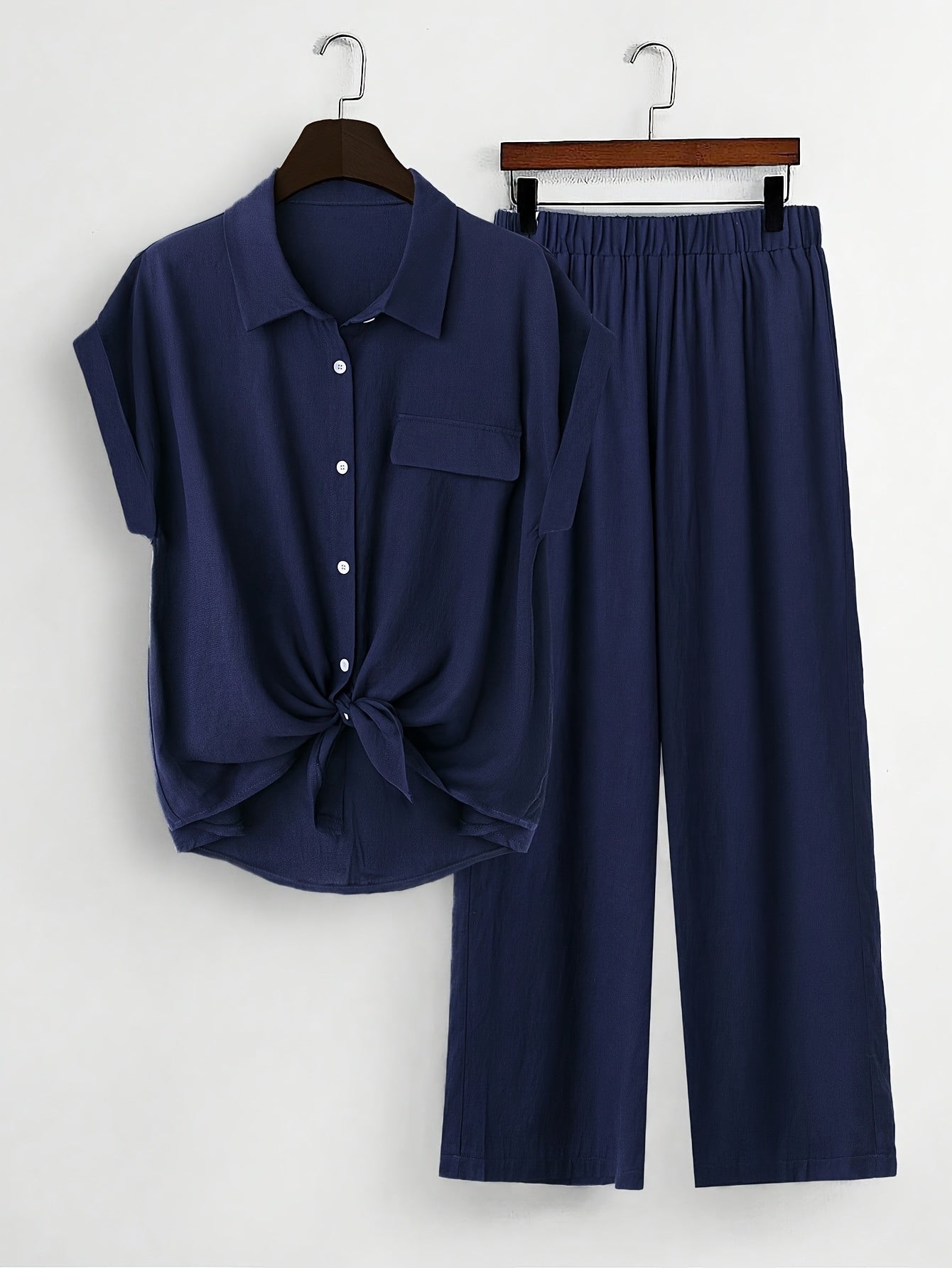 Մեծ չափի կանացի երկար թևքերով վերնաշապիկի և ուղիղ տաբատի հավաքածու