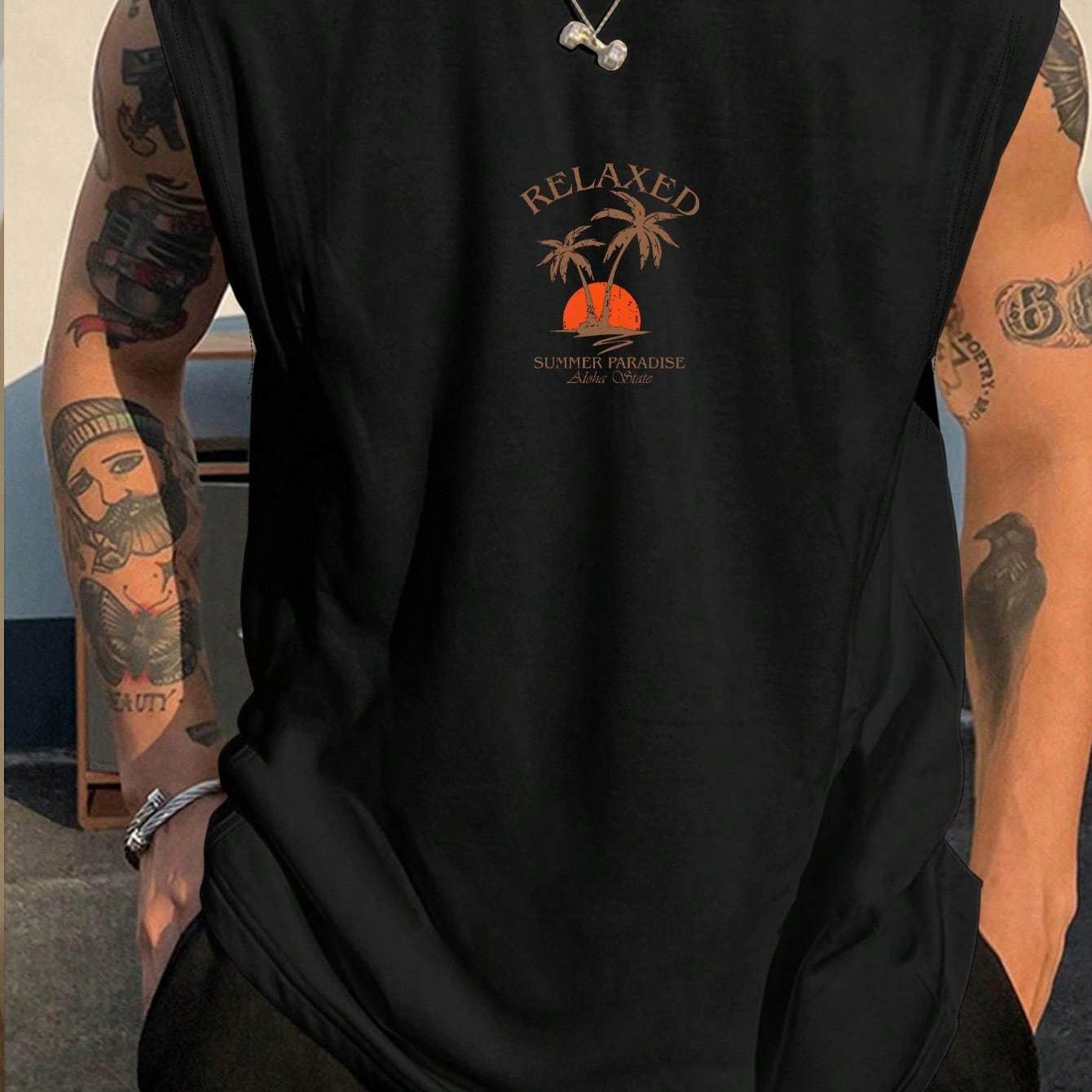 Տպել Հարմարավետ շնչառական վերնաշապիկ, տղամարդկանց պատահական ձգվող անթև վերնաշապիկ ամառային մարզասրահի մարզումների համար բասկետբոլ