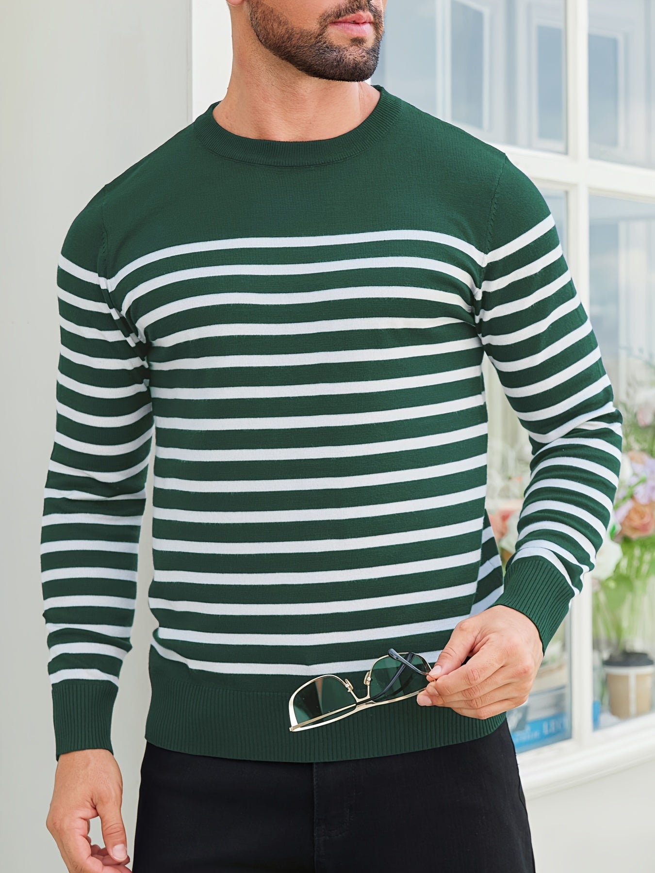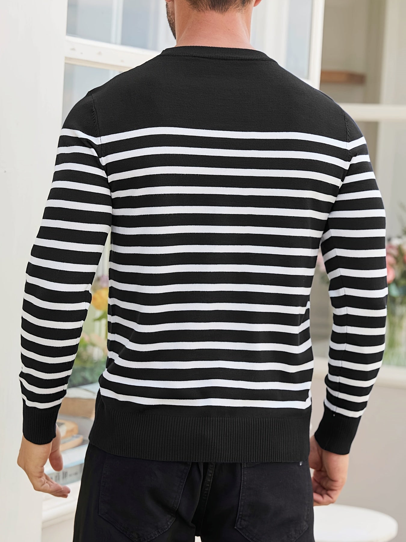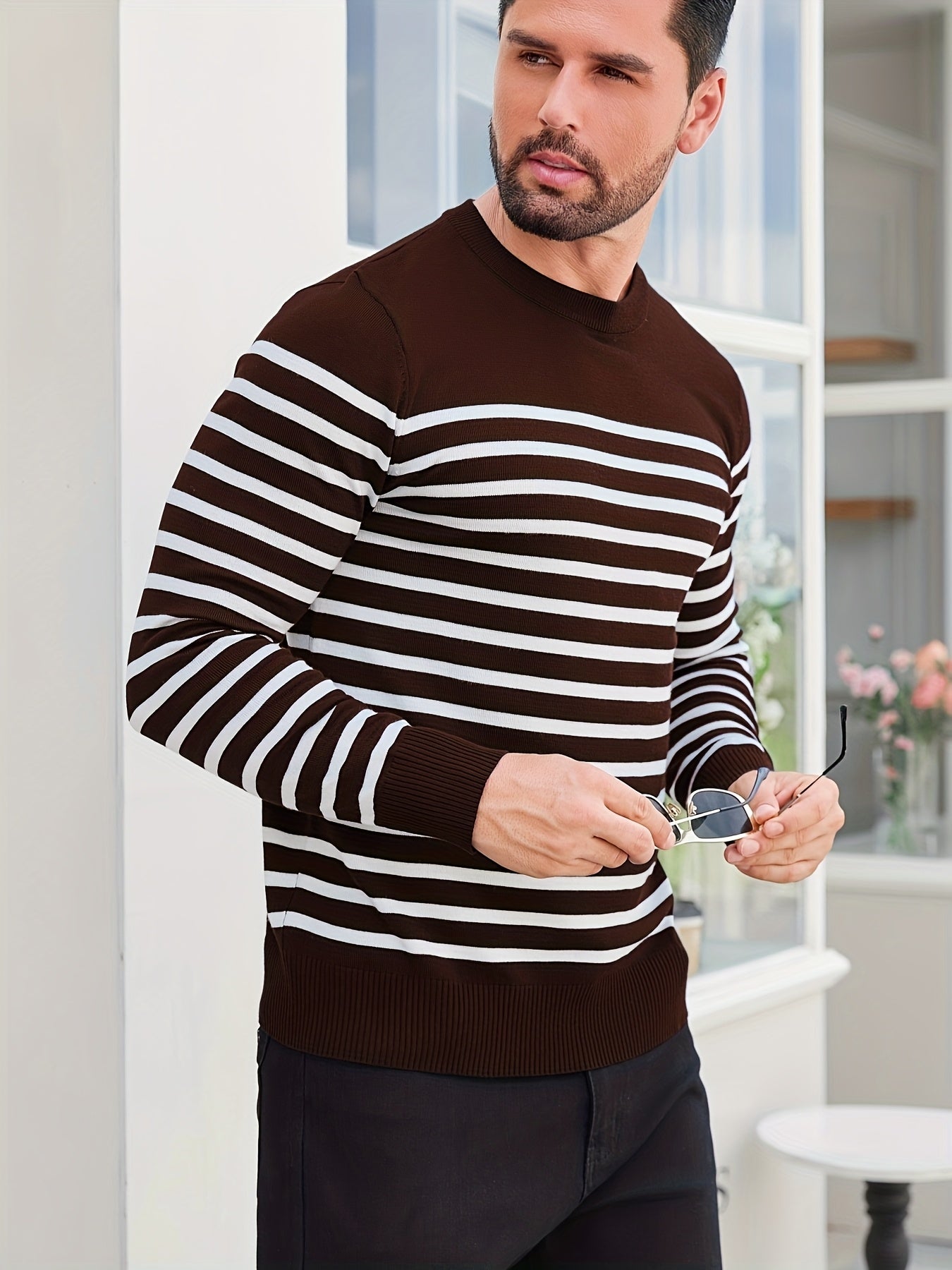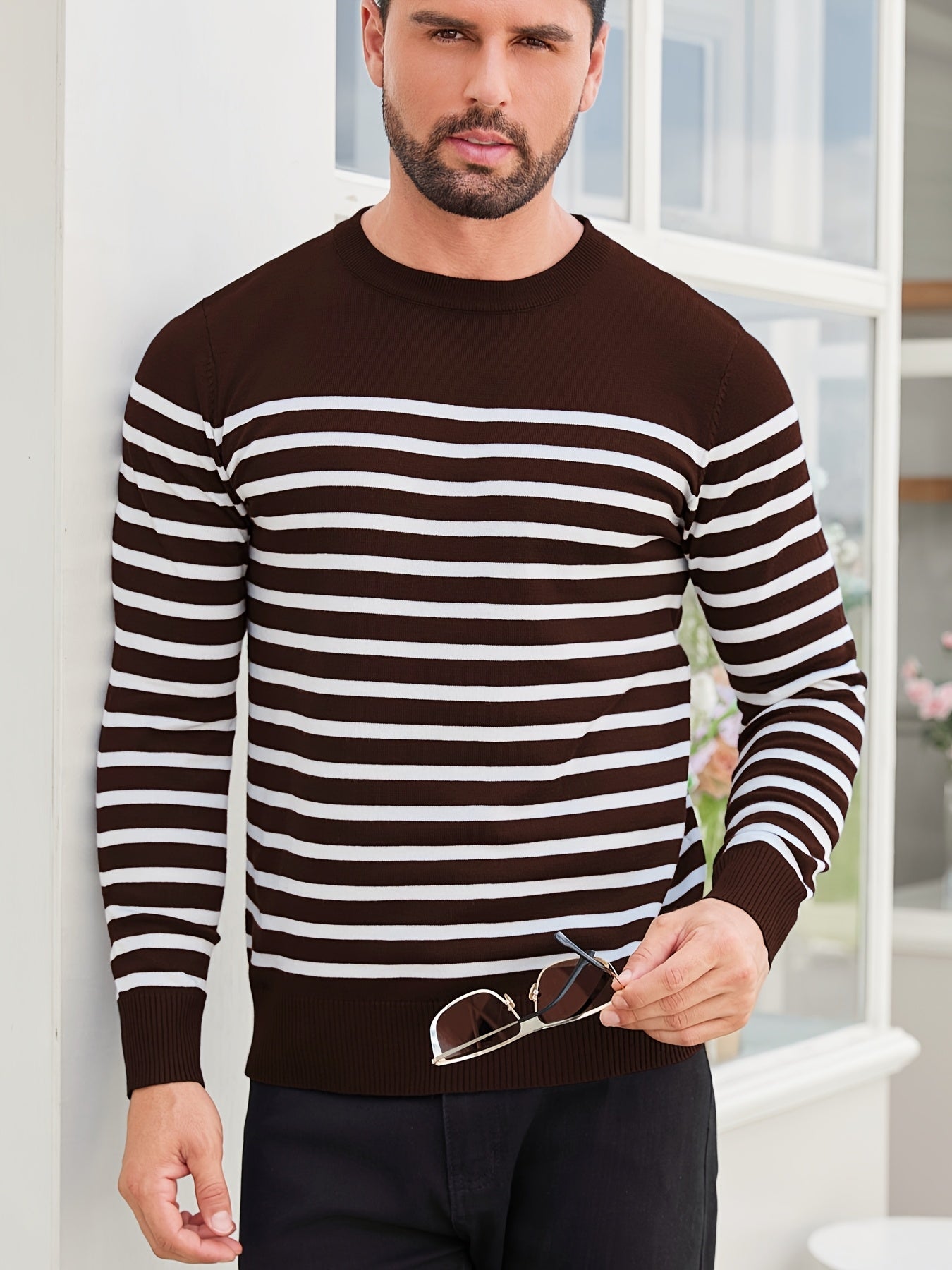 Գարնանային և աշնանային ամենօրյա երկգույն գծավոր տղամարդու սվիտեր-պուլովեր՝ գունավոր բլոկներով, կլոր վզնոցով, տղամարդու տրիկոտաժե վերնաշապիկ