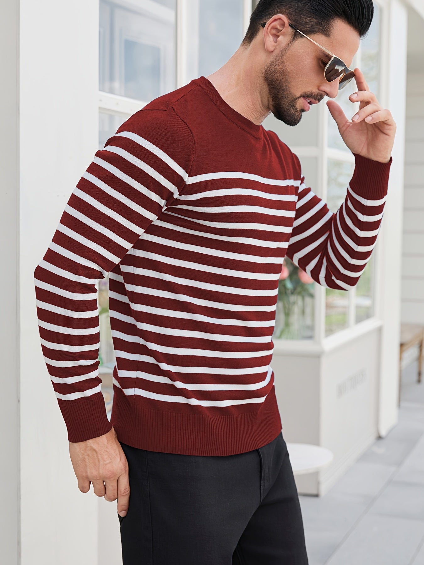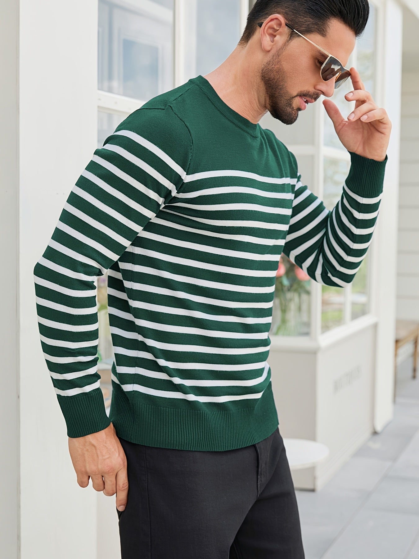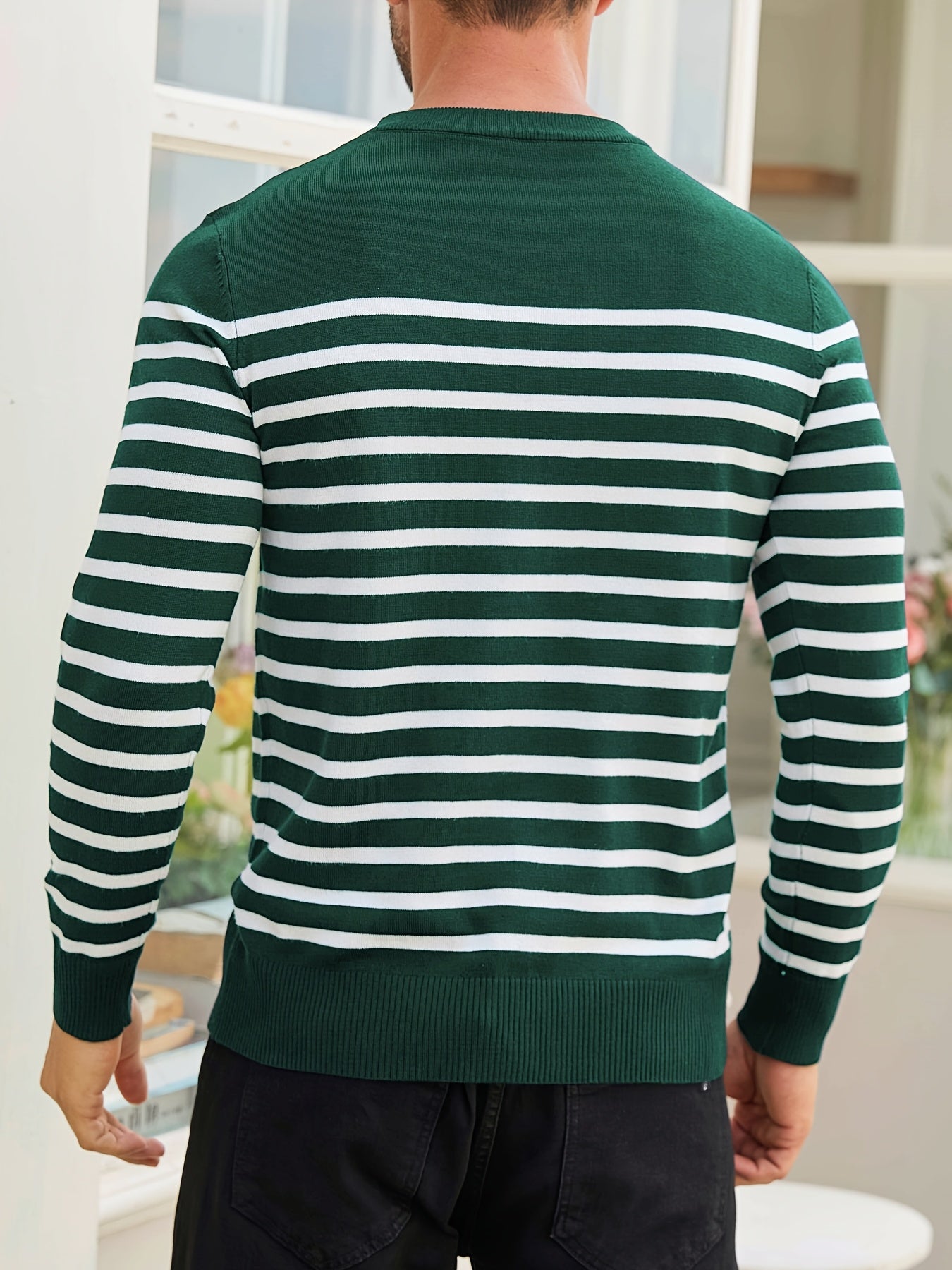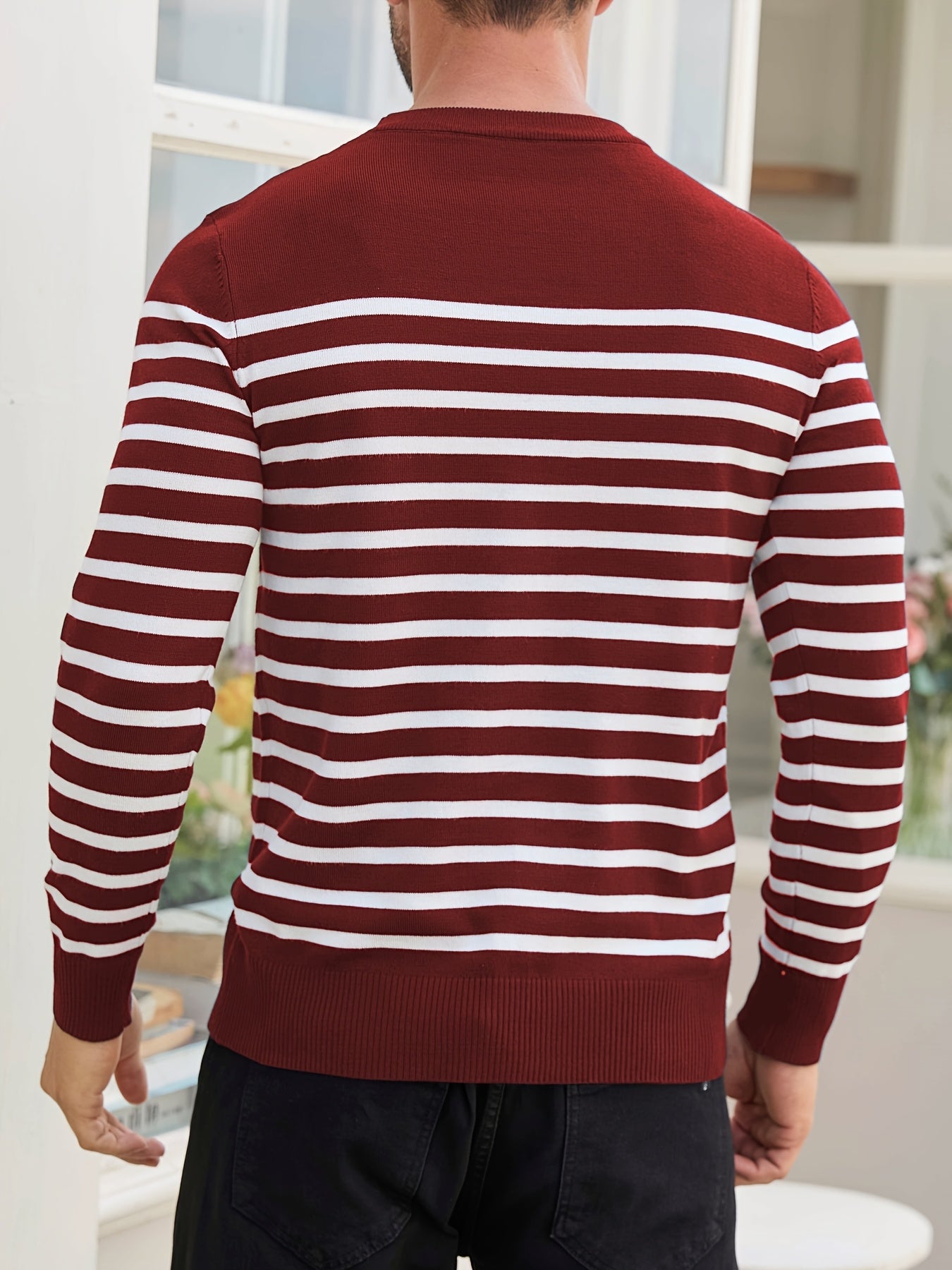 Գարնանային և աշնանային ամենօրյա երկգույն գծավոր տղամարդու սվիտեր-պուլովեր՝ գունավոր բլոկներով, կլոր վզնոցով, տղամարդու տրիկոտաժե վերնաշապիկ