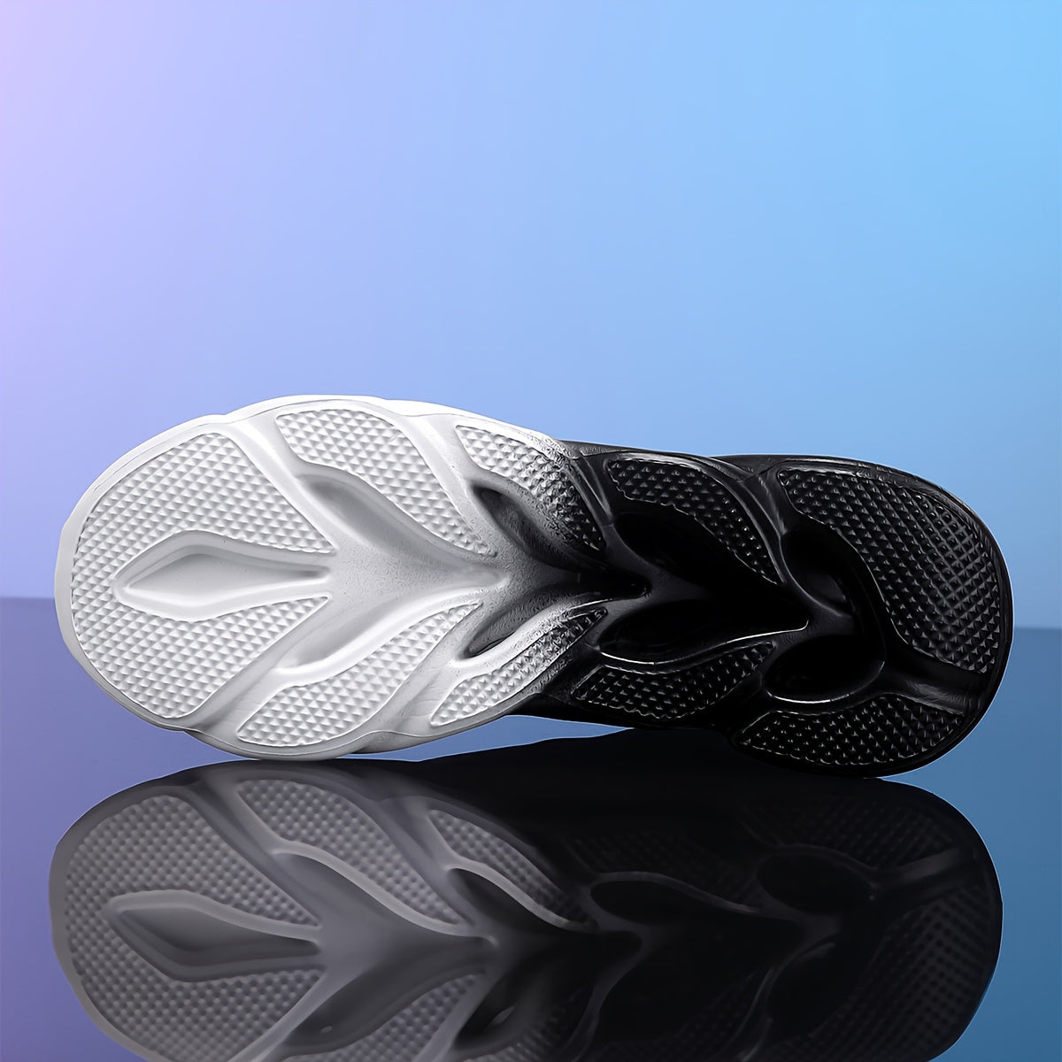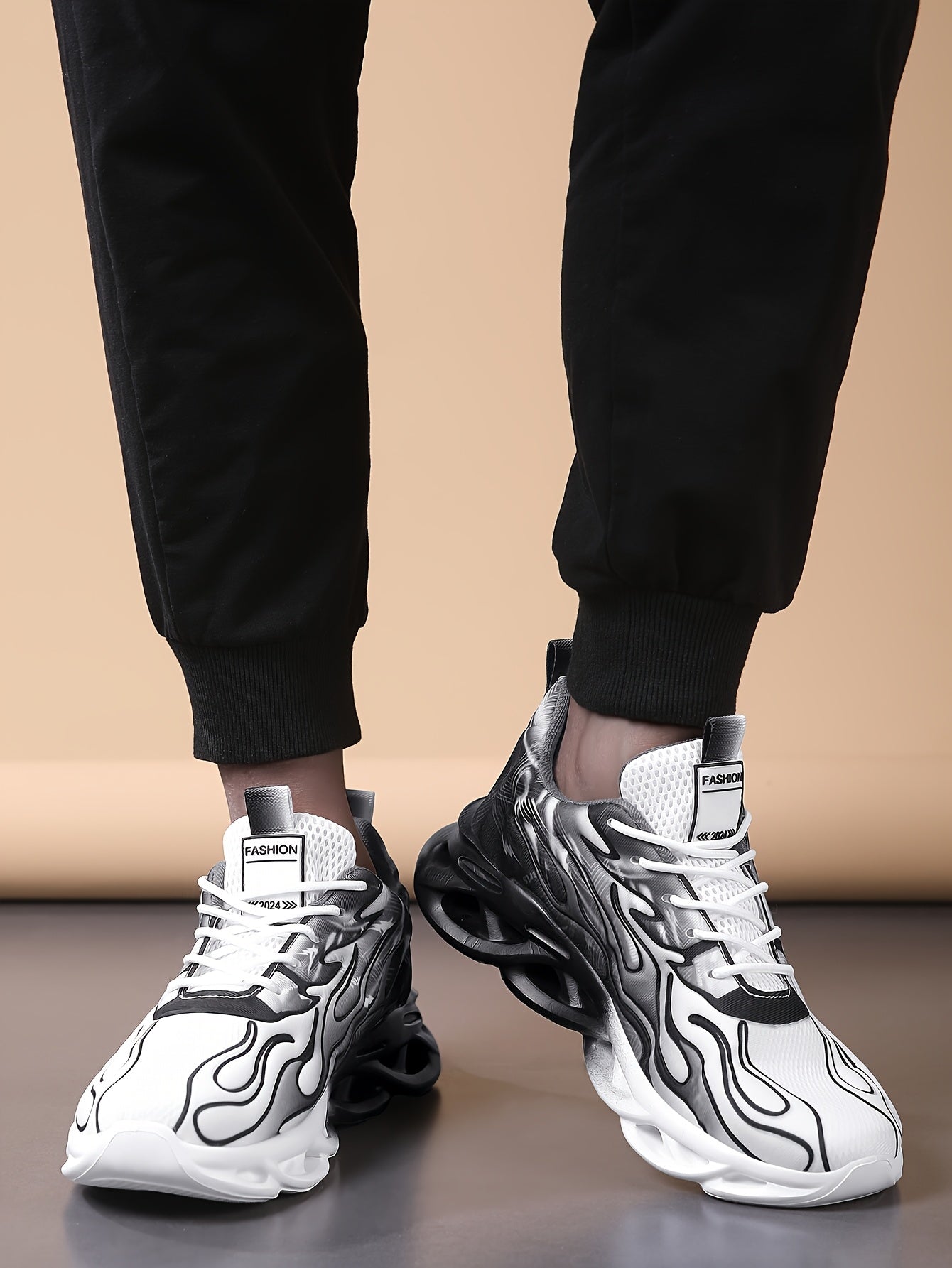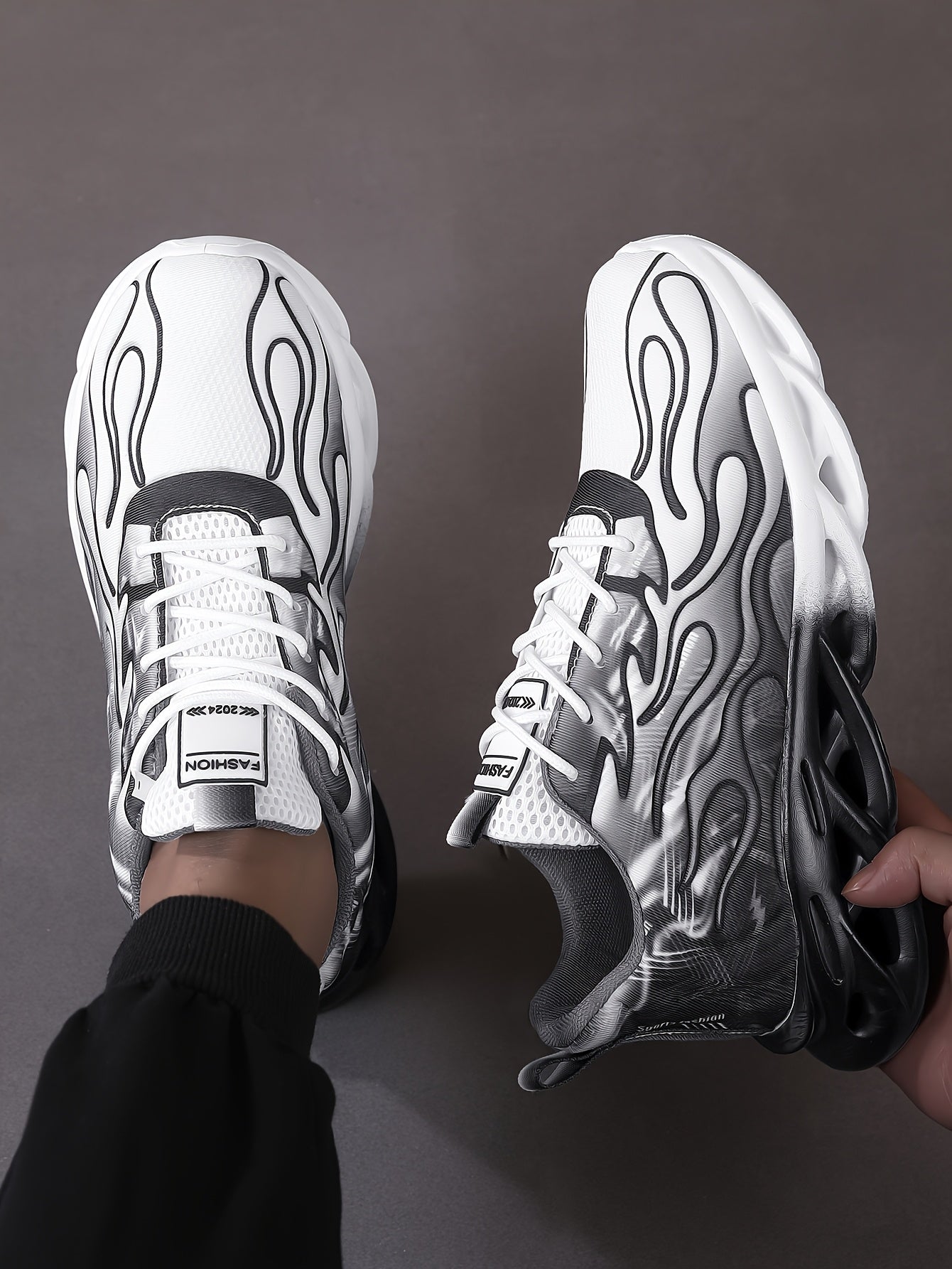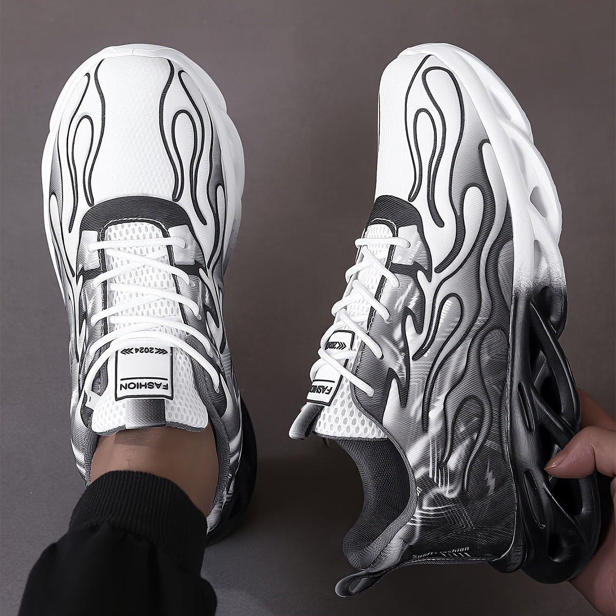 Նորաձև սև-սպիտակ գրադիենտային սպորտային կոշիկներ՝ շնչող ցանցով, հաստ ներբանով՝ հասակը մեծացնելու համար, նորաձև սպորտային, առօրյա վազքի կոշիկներ՝ բոցավառ դիզայնով, իդեալական ուսանողների համար՝ առօրյա հագուստով, բարձրակրունկ սպորտային կոշիկներ