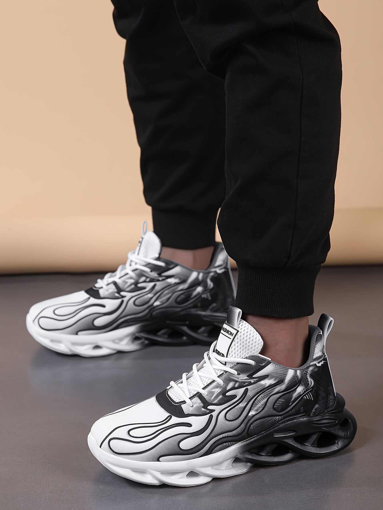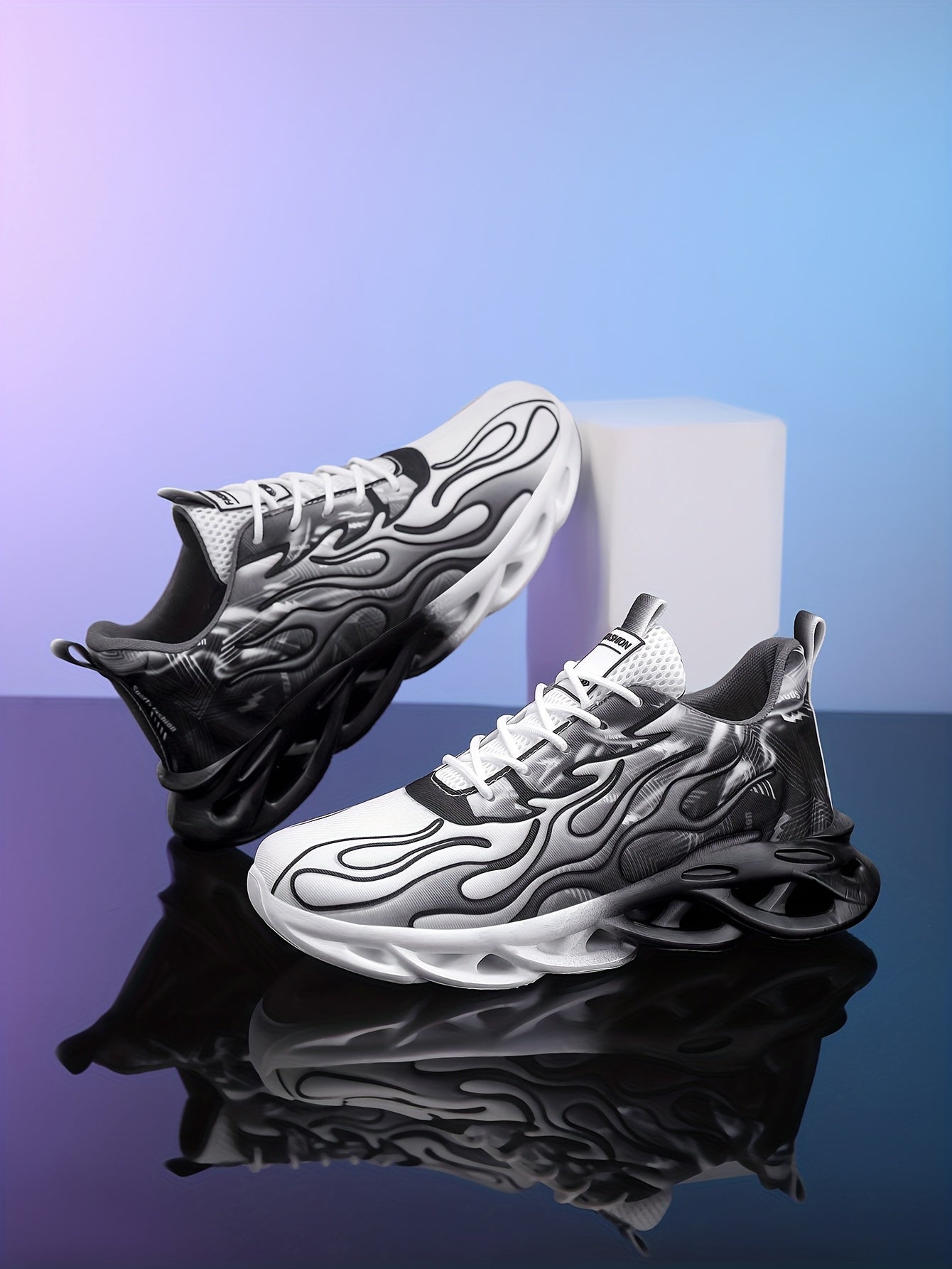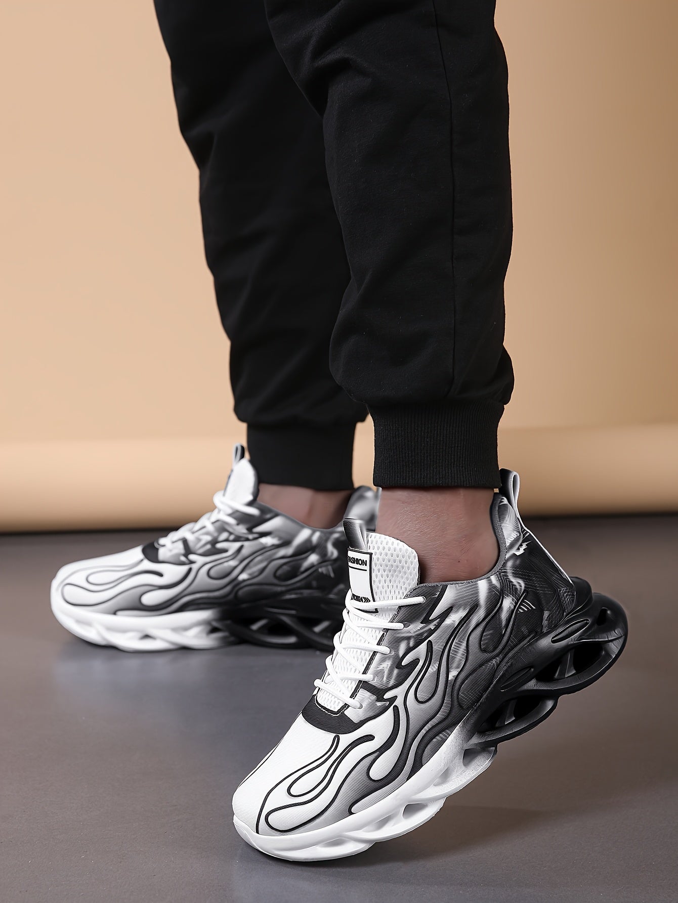 Նորաձև սև-սպիտակ գրադիենտային սպորտային կոշիկներ՝ շնչող ցանցով, հաստ ներբանով՝ հասակը մեծացնելու համար, նորաձև սպորտային, առօրյա վազքի կոշիկներ՝ բոցավառ դիզայնով, իդեալական ուսանողների համար՝ առօրյա հագուստով, բարձրակրունկ սպորտային կոշիկներ