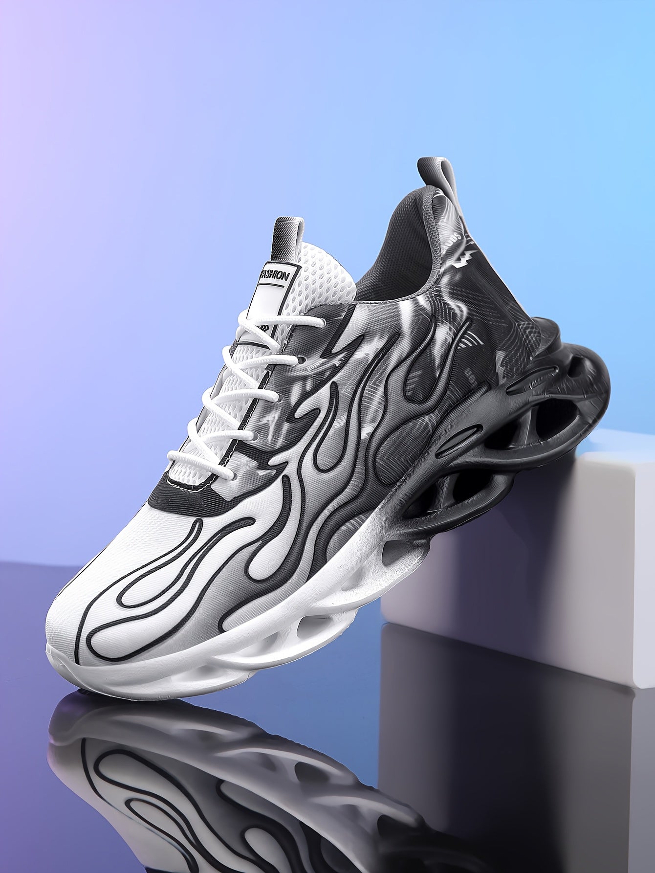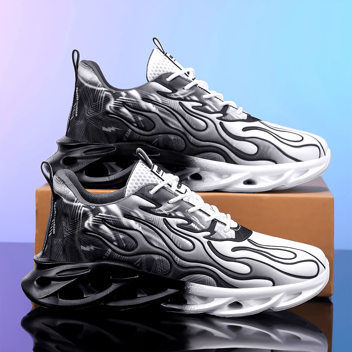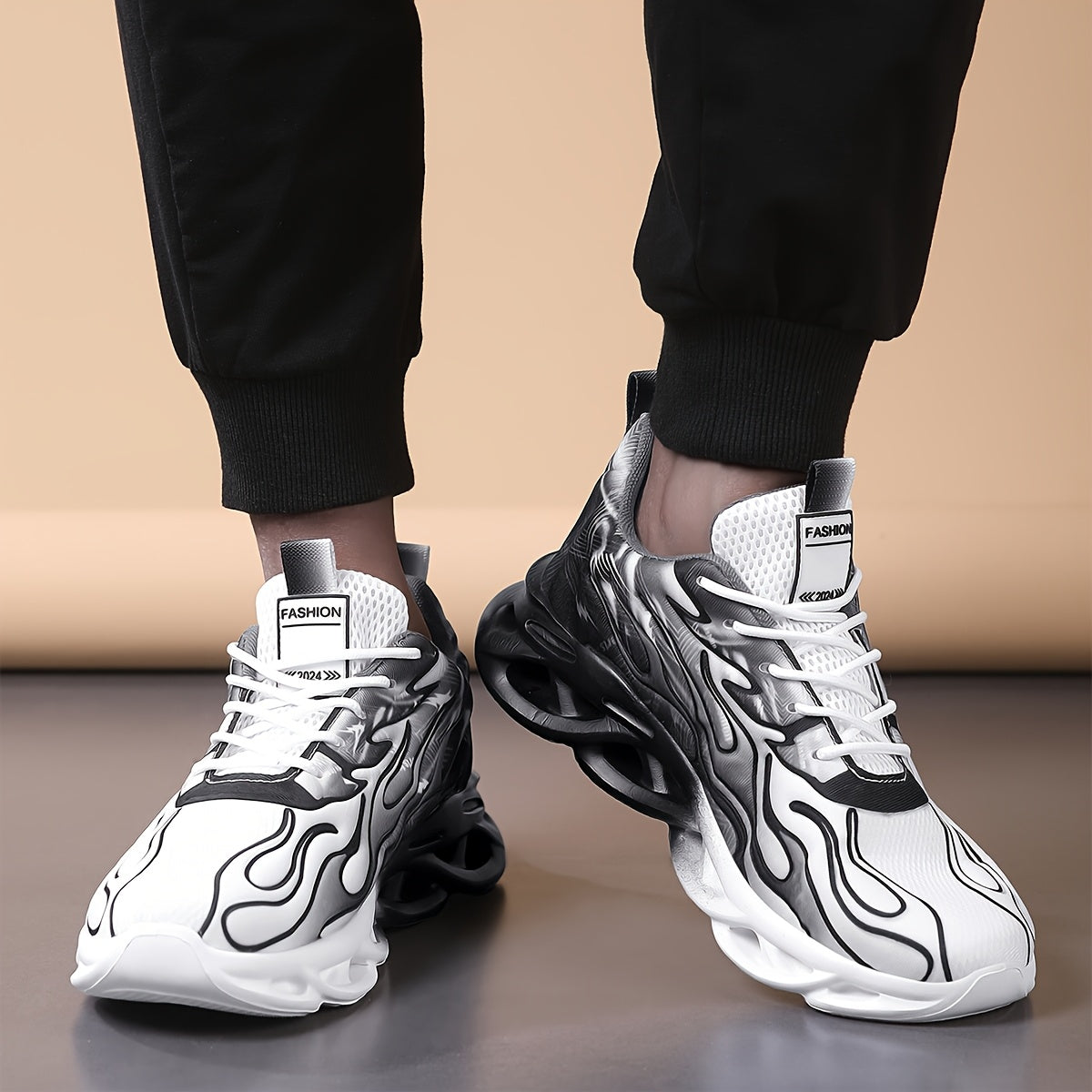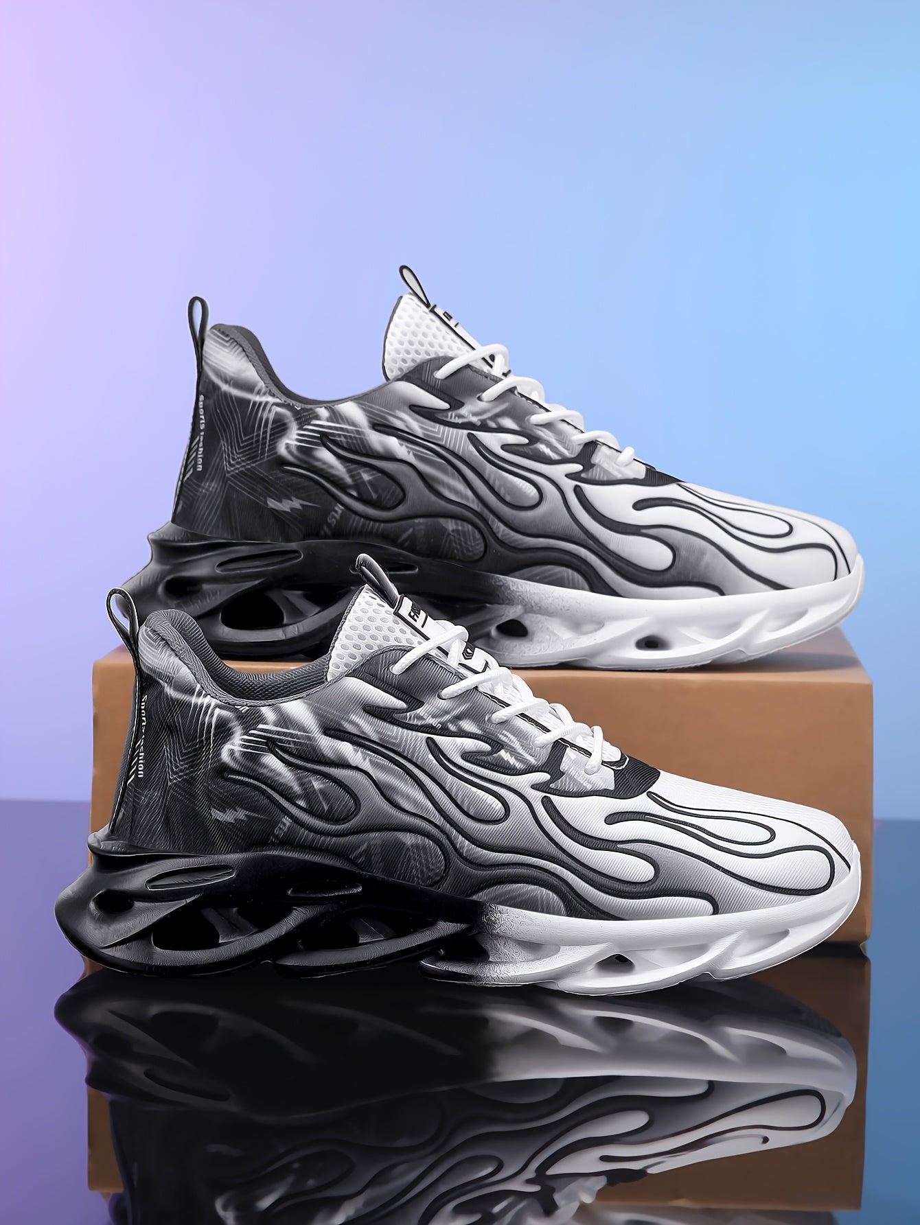 Նորաձև սև-սպիտակ գրադիենտային սպորտային կոշիկներ՝ շնչող ցանցով, հաստ ներբանով՝ հասակը մեծացնելու համար, նորաձև սպորտային, առօրյա վազքի կոշիկներ՝ բոցավառ դիզայնով, իդեալական ուսանողների համար՝ առօրյա հագուստով, բարձրակրունկ սպորտային կոշիկներ
