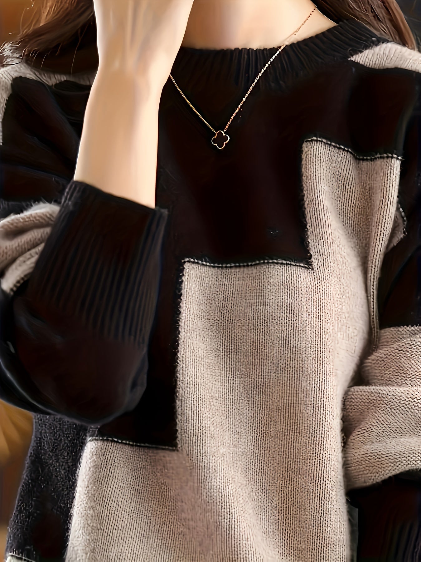 Կանացի պատահական գունավոր բլոկ երկարաթև սվիտեր՝ կլոր պարանոցով, փափուկ վիսկոզայի խառնուրդ, կատարյալ աշնանային և ձմեռային նորաձևության համար, տրիկոտաժե սվիտեր