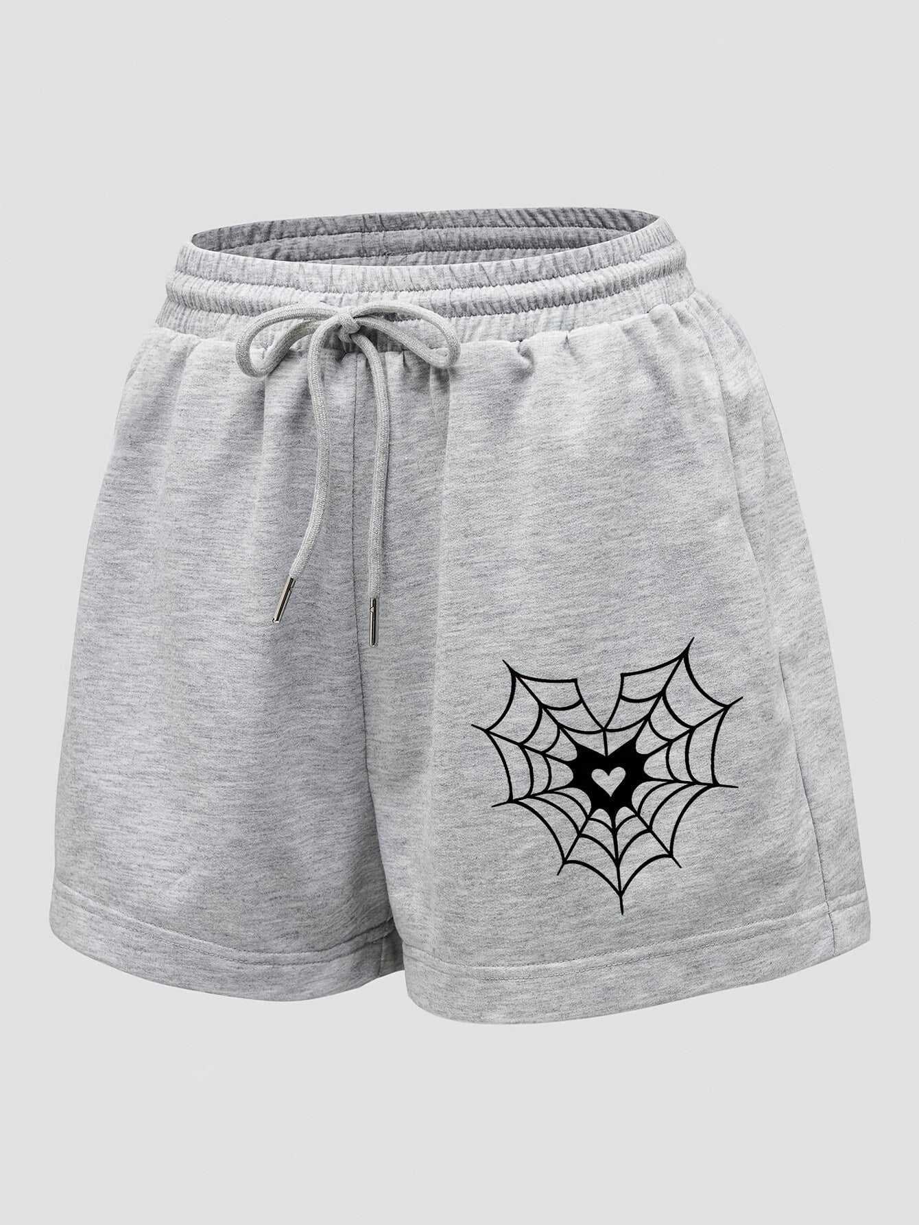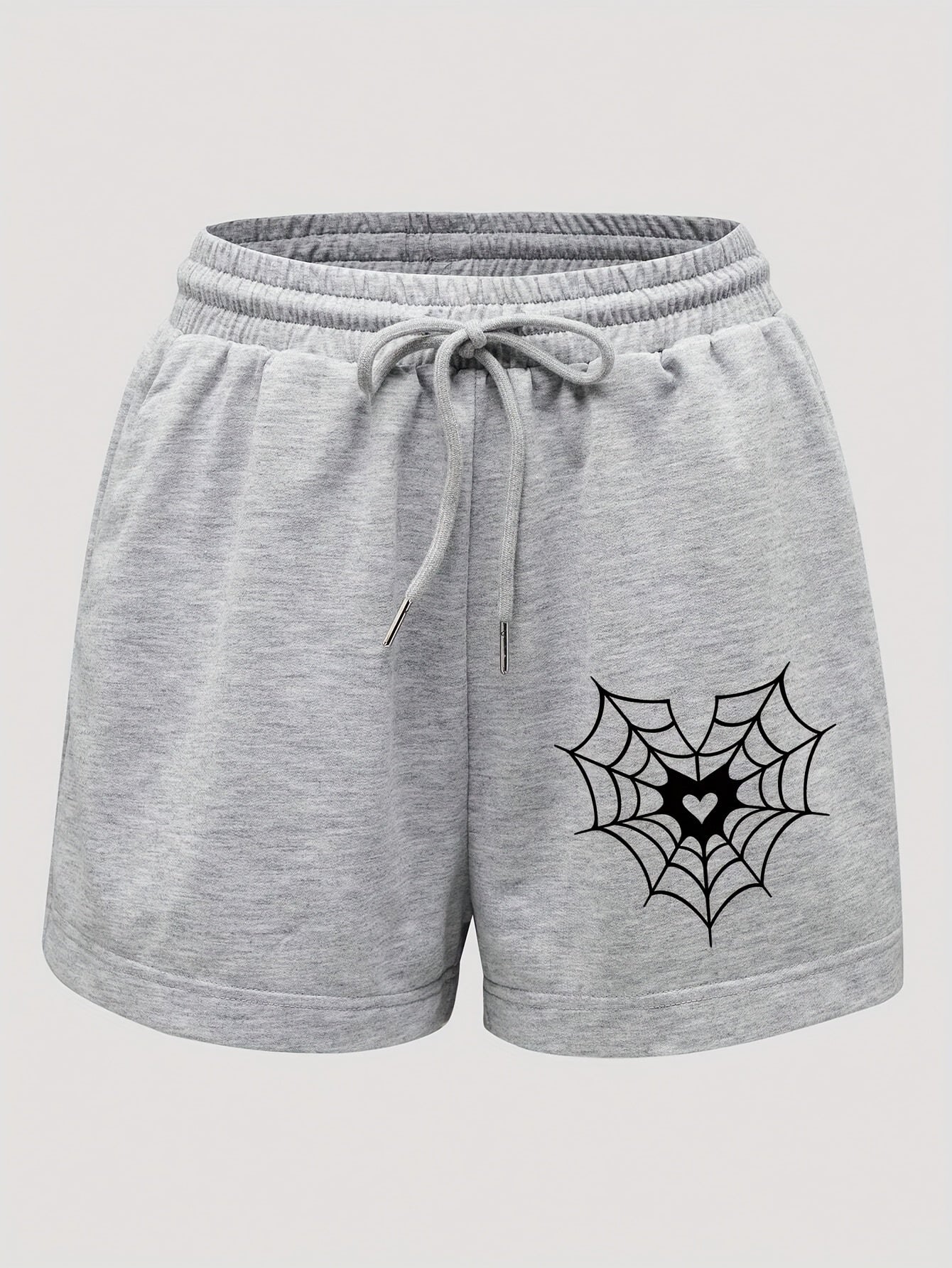 Կանացի սպորտային շորտեր, 100% պոլիեսթեր տրիկոտաժե գործվածք, մուլտֆիլմ սարդոստայնի նախշ, թեթև 250 գ/մ², բազմակողմանի գարուն/ամառ/աշուն