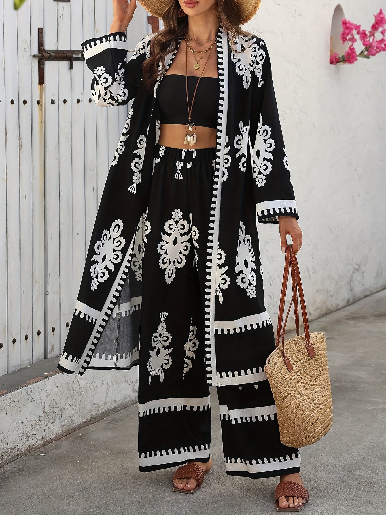 Կանացի ծաղկային նախշերով կիմոնո՝ 2 հատանոց հավաքածու
