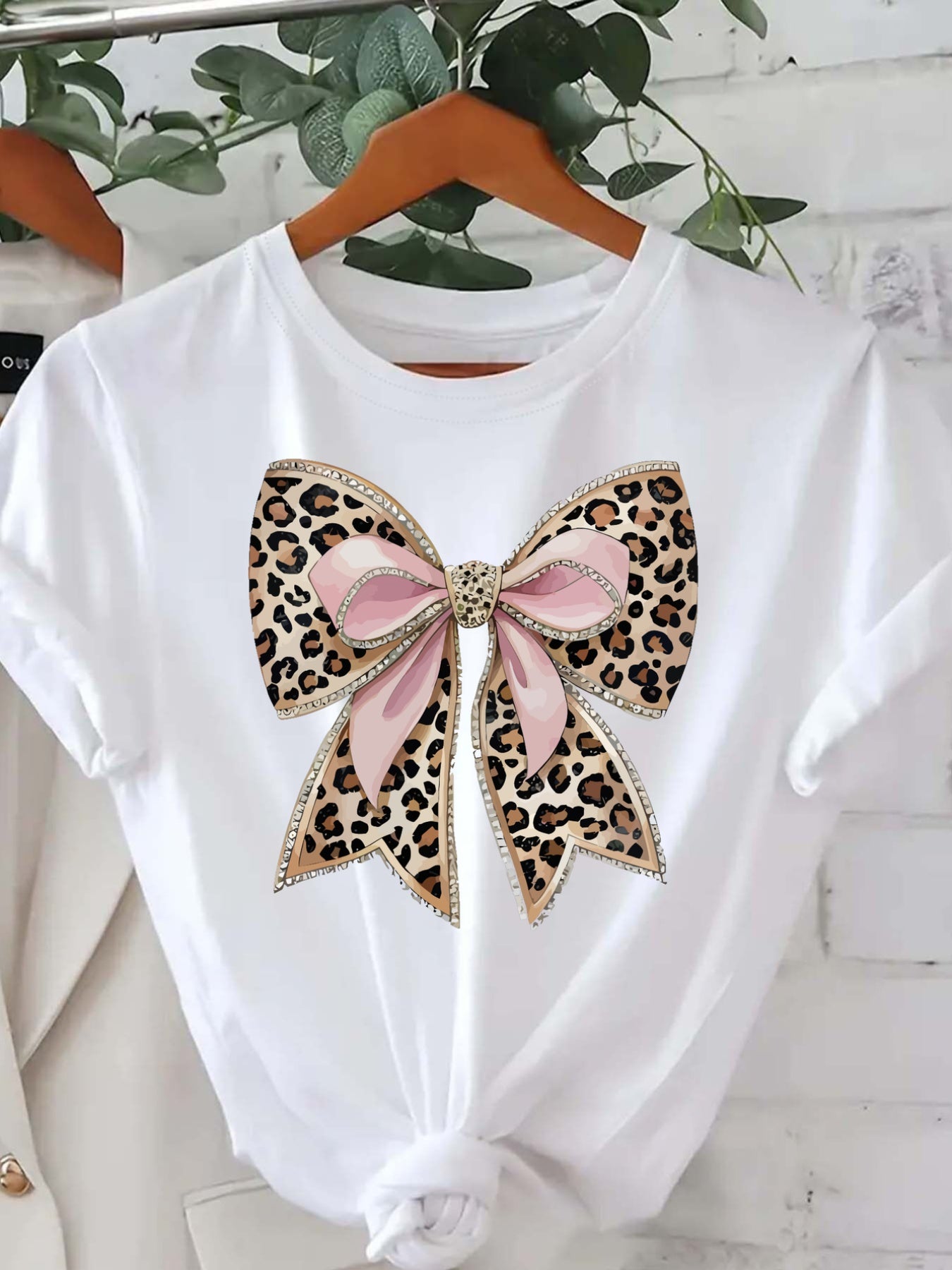 Կանացի ընձառյուծի նախշերով ժապավենաձև շապիկ, կարճ թևքերով, կլոր վզնոցով, ամենօրյա վերնաշապիկ՝ գարնանային և ամառվա համար, նորաձև վարդագույն գրաֆիկական շապիկ՝ ոսկեգույն զարդարանքներով, կանացի շապիկներ