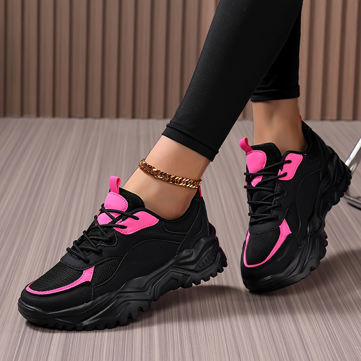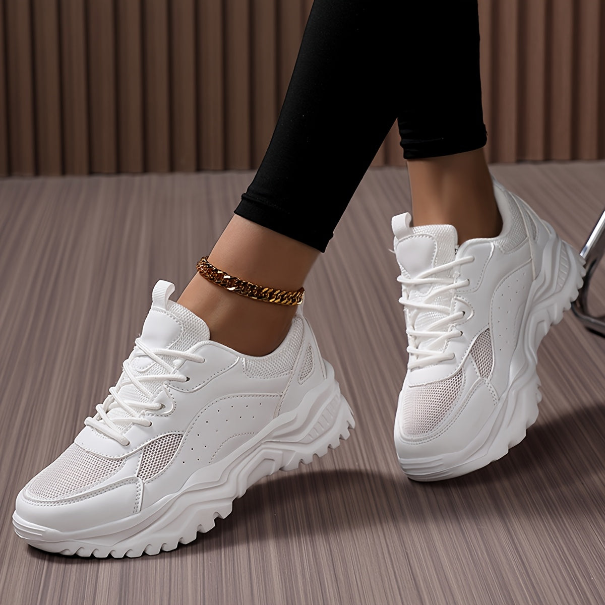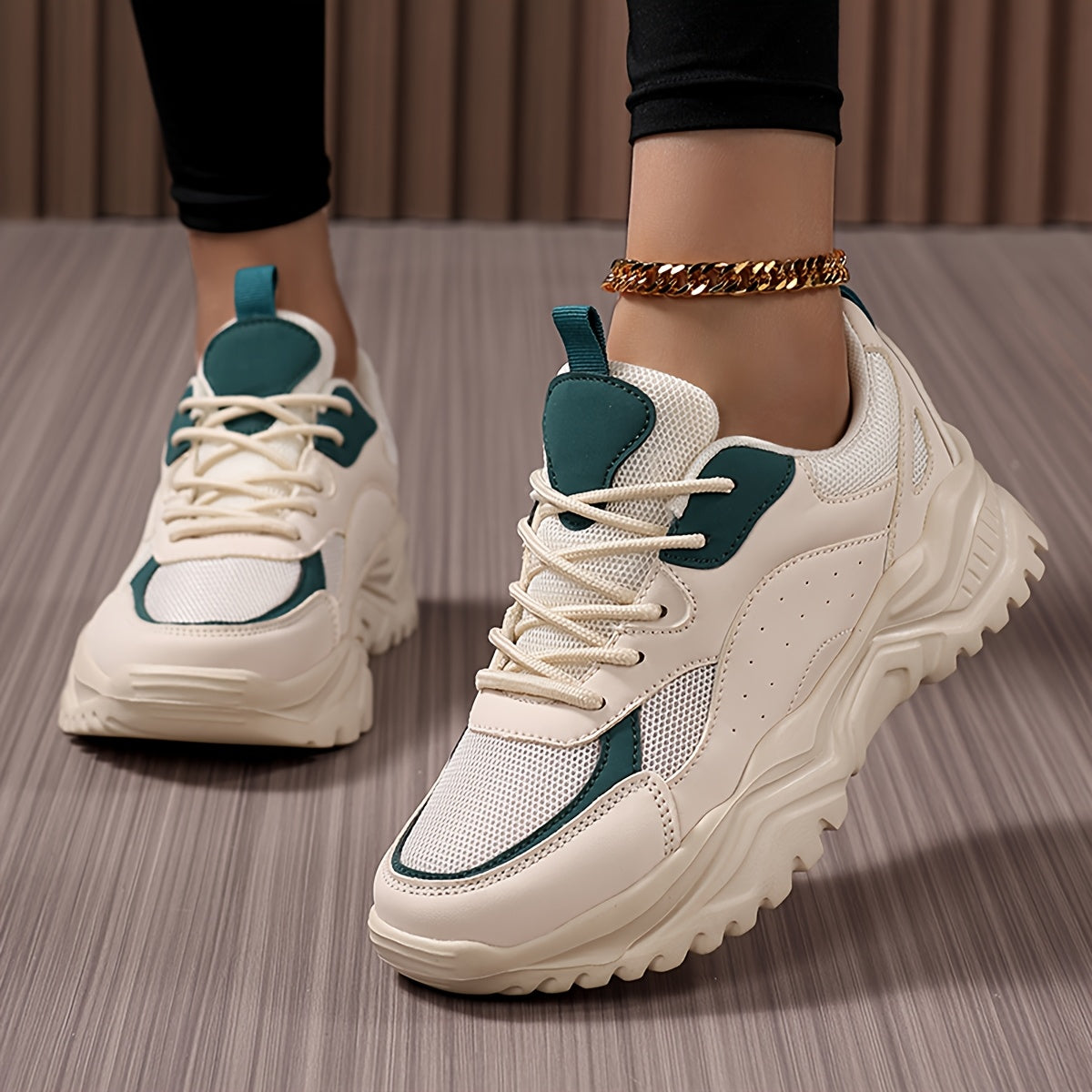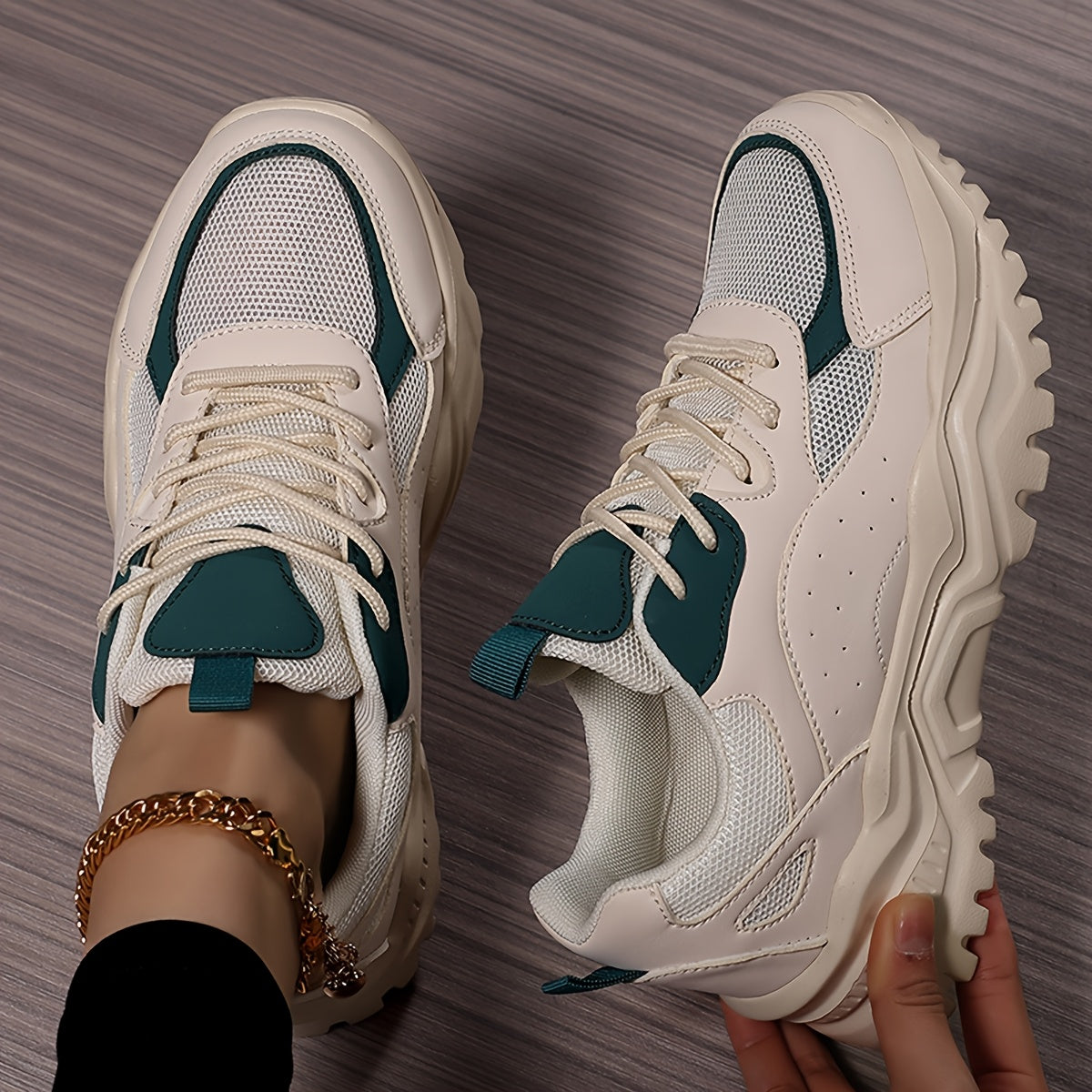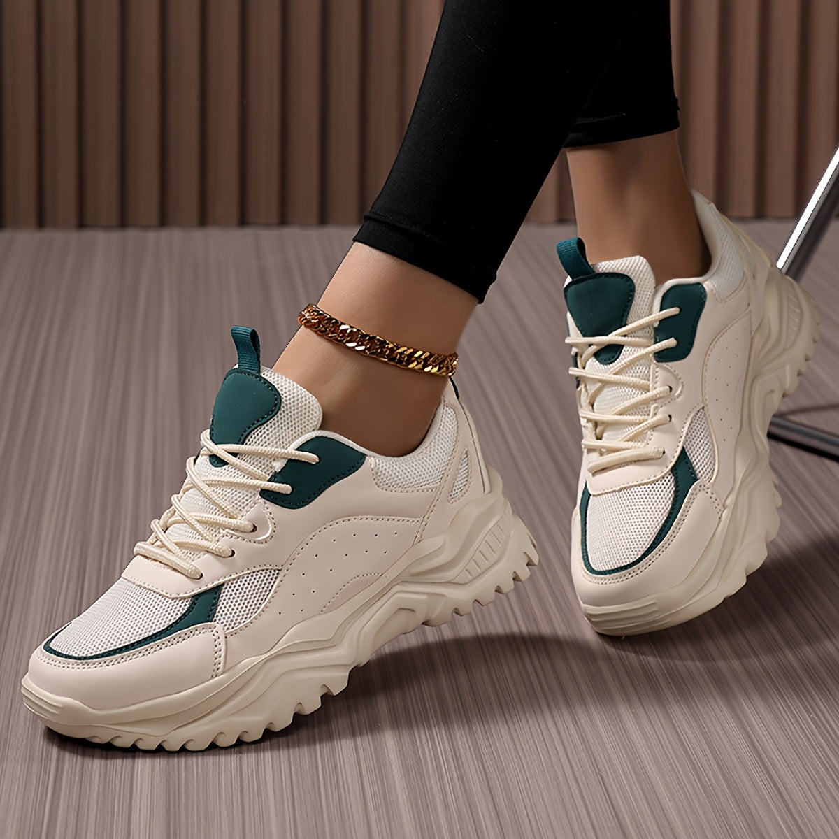 Կանացի թեթև, հաստ սպորտային կոշիկներ՝ բազմակողմանի կորեական ոճի հայրիկի կոշիկներ՝ հաստ ներբանով, շնչող ցանցկեն վերին մասով, առօրյա, կապիչով սպորտային կոշիկներ՝ սպիտակ, կանաչ/սպիտակ և սև/վարդագույն գույներով։