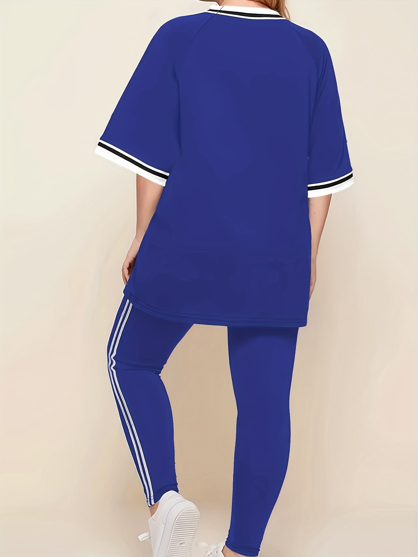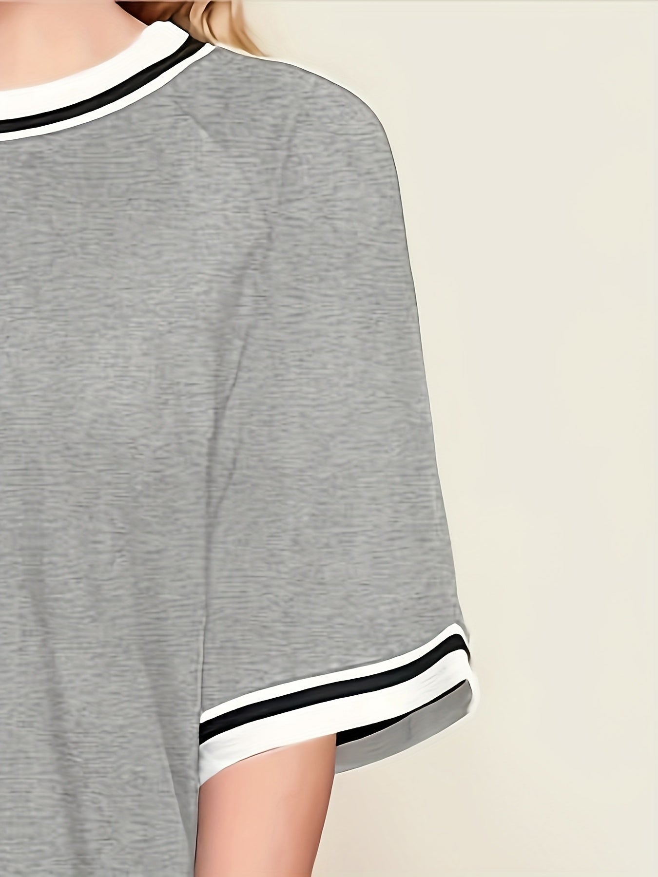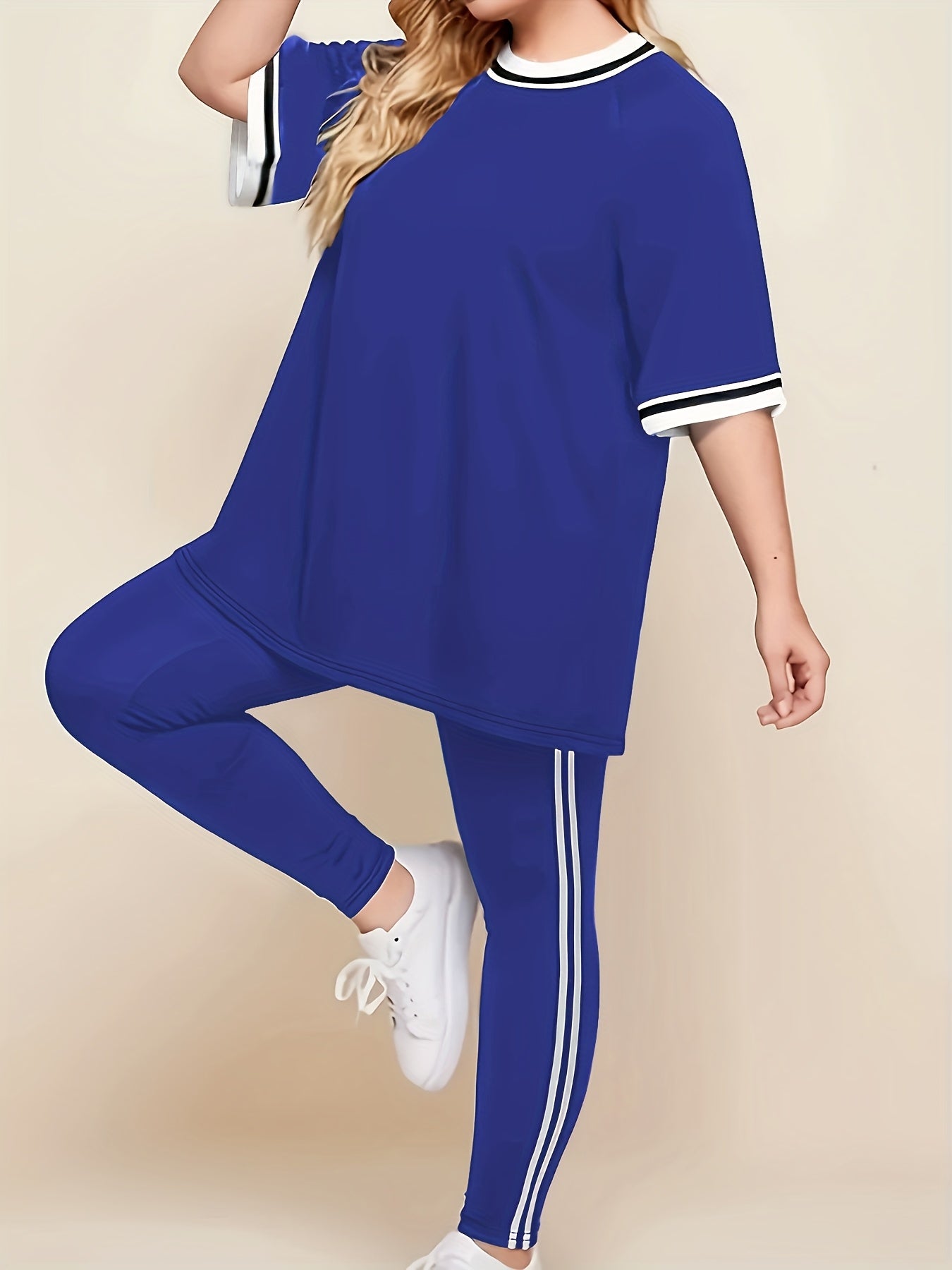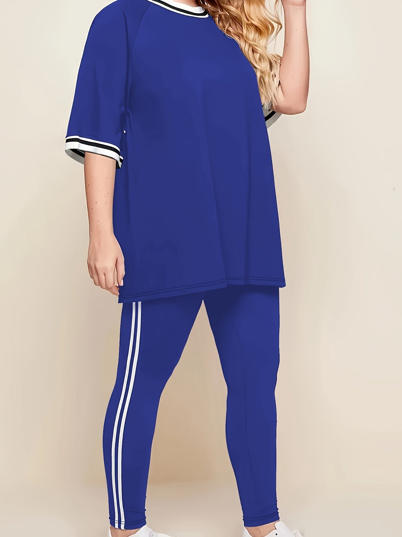 Կանացի մեծ չափսի առօրյա հանգստի հավաքածու - մոխրագույն և սպիտակ գծավոր մեծ չափսի մարզաշապիկ համապատասխան մարզաշապիկով, հարմարավետ բոլոր եղանակների տնային հագուստ, մարզաշապիկներ կանանց համար
