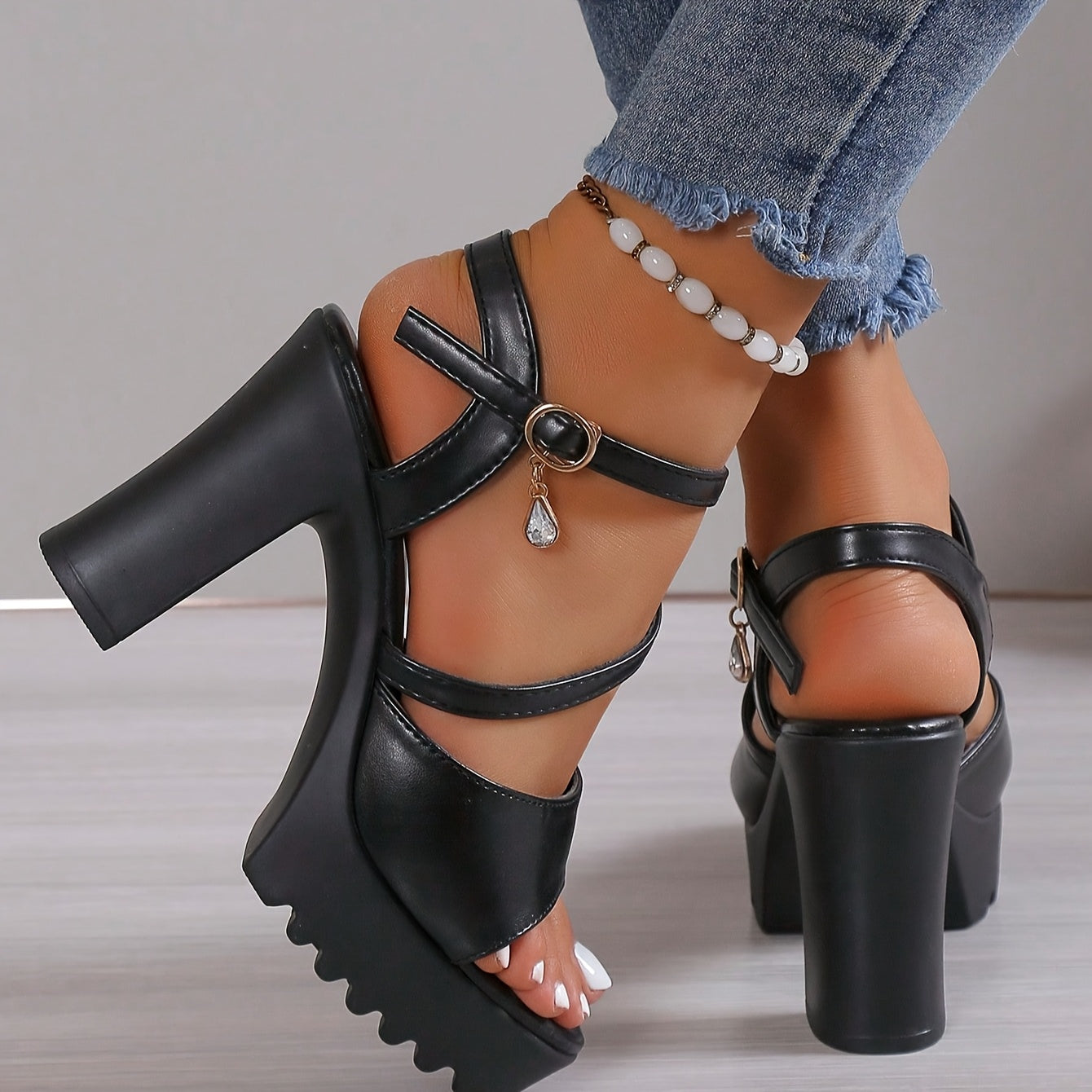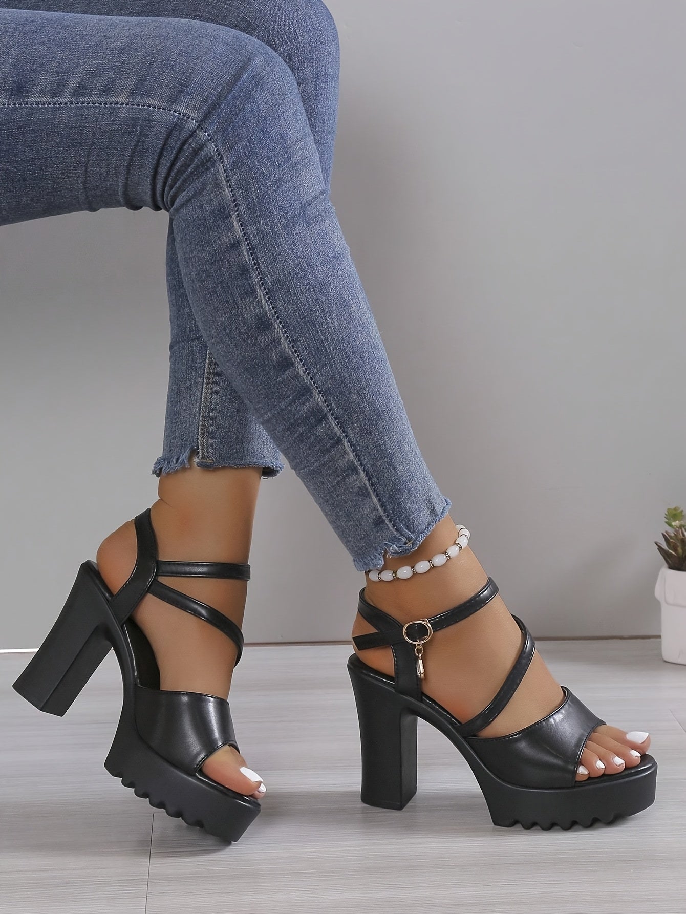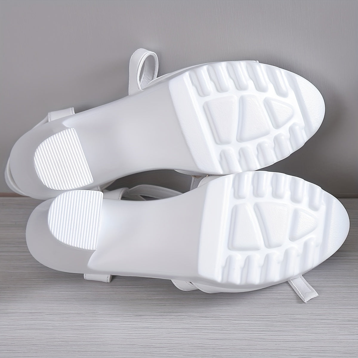 Կանացի ամառային նորաձև հաստ կրունկով սանդալներ - սպիտակ բաց քթով, ճարմանդային ժապավենով, հարմարավետ պոլիուրեթանային ներբան, ոճային բարձր կրունկով սանդալներ առօրյա հագուստի համար, հաստ կրունկով սանդալներ
