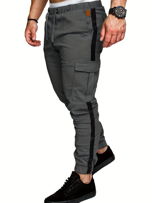 Տղամարդկանց միաձույլ գույնի բազմագրպան բեռների տաբատ՝ պարաններով, ամենօրյա ոճային սպորտային տաբատ՝ որպես նվեր