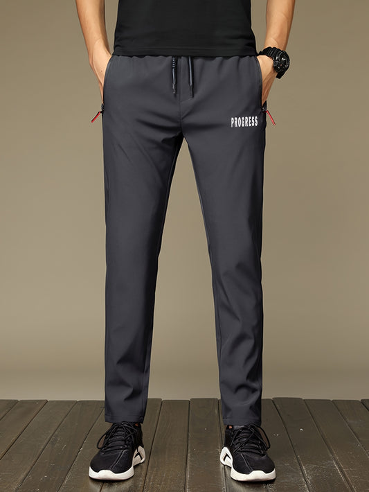 Տղամարդկանց սպորտային տաբատներ՝ պարաններով և կայծակաճարմանդ գրպաններով, թեթև և շնչող ներքեւի մասով՝ վազքի և ամենօրյա հագուստի համար