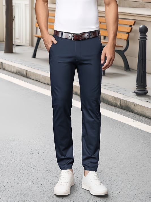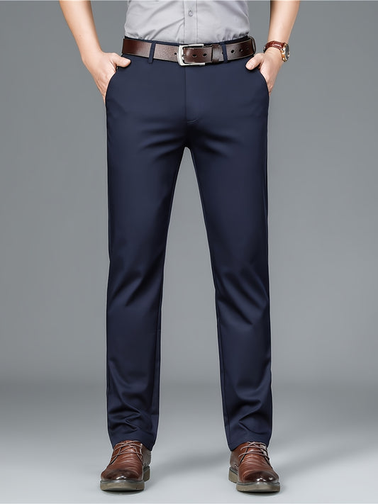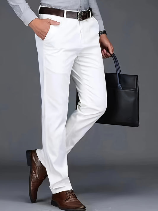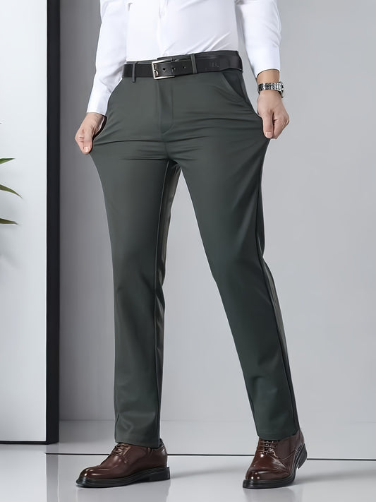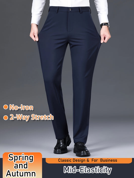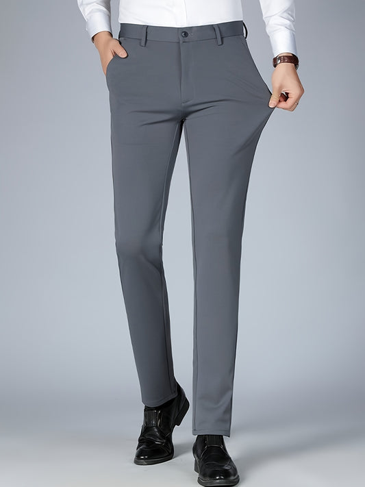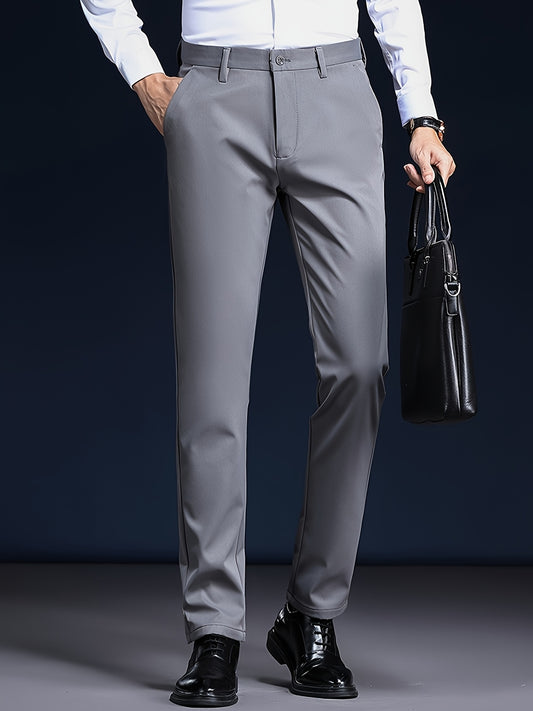 1 հատ Տղամարդկանց գարուն/աշուն թեթև բիզնես պատահական ուղիղ շալվար, 100% պոլիեսթեր, միաձույլ գույն, թեթև ձգվող, միջին գոտկատեղի, սովորական պիտանի, կայծակաճարմանդ, հյուսված, առանց աստառի - բազմակողմանի աշխատանքի և պատահական առիթների համար