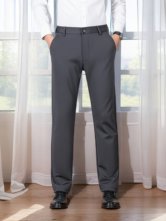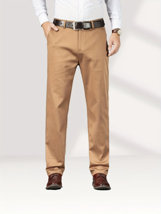 1 հատ Classic Fit տղամարդկանց զգեստի շալվար - 100% բամբակ, միաձույլ գույն, ոչ ձգվող, սովորական երկարություն, աշուն/ձմեռ - բիզնես պատահական ոճ