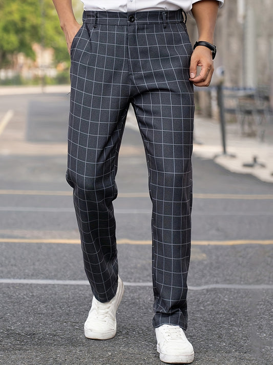 Տղամարդկանց կոստյում տաբատ՝ վանդակավոր դիզայնով, սովորական պիտանի և ճարմանդներով պատահական ներքեւի մաս՝ գործնական և պաշտոնական առիթների համար, հարմար է բոլոր եղանակներին