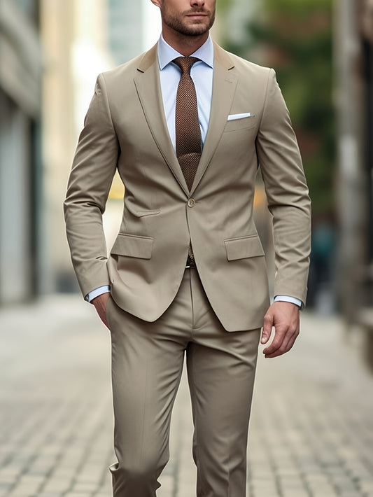 Տղամարդկանց երկկտոր կոստյում միաձույլ գույնի, փակ գրպաններով, սովորական կոստյումով տաբատով, էլեգանտ և դասական, հարմար է բիզնեսի և հարսանեկան խնջույքների համար