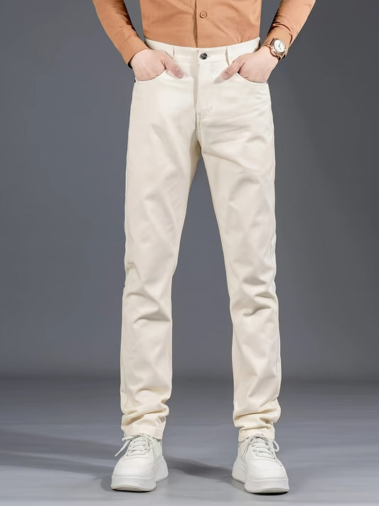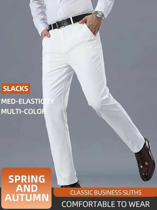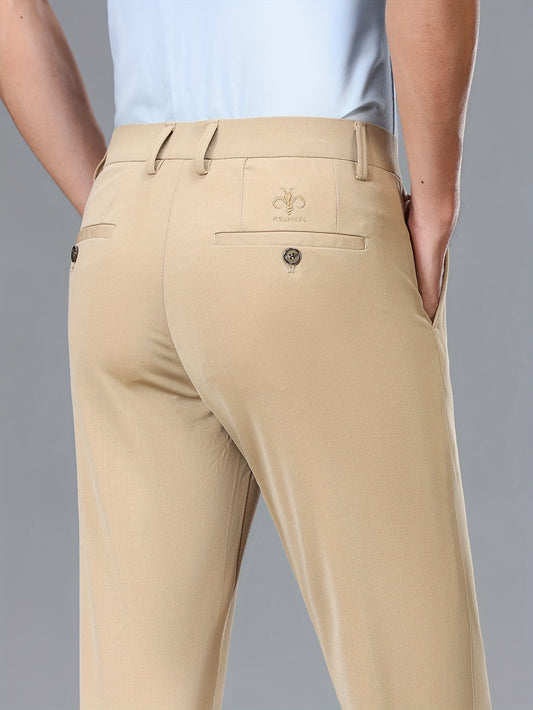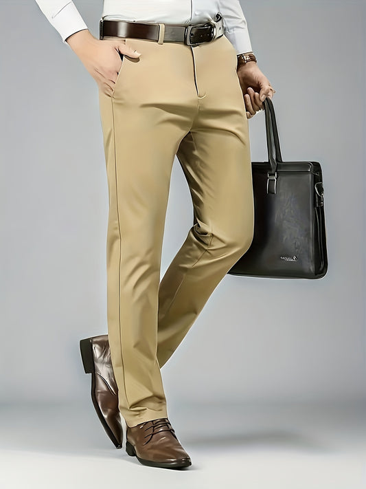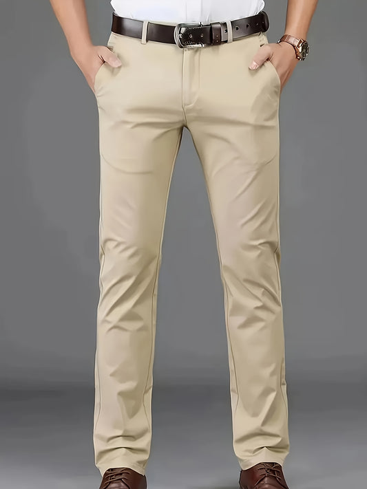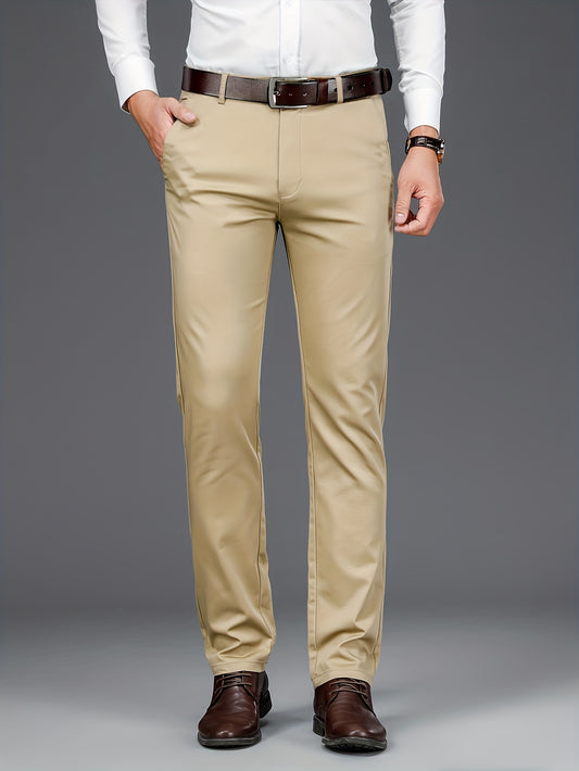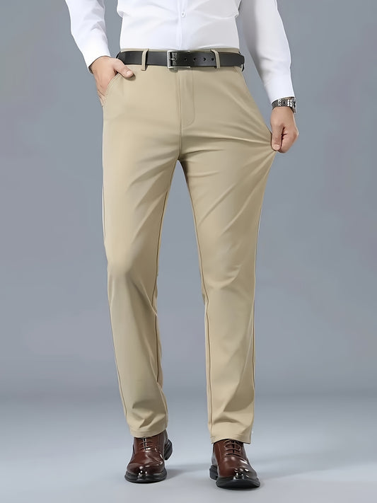Տղամարդկանց Stretch Fit ուղիղ ոտքերի տաբատ - Բեժ բիզնես պատահական տաբատ առաձգական գոտկատեղով, կատարյալ գարնան և աշնան համար, գրասենյակային զգեստներ|Հարմարավետ ձևական զգեստներ