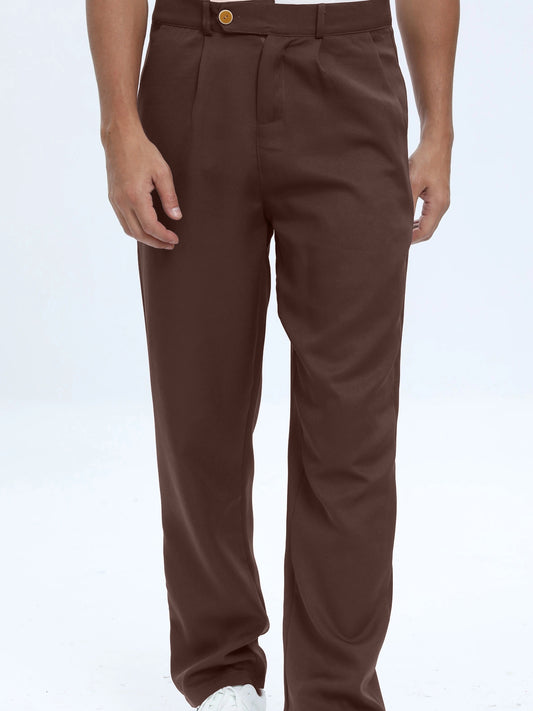 Տղամարդկանց դասական բիզնես տաբատ - Թեթև պոլիեսթեր ուղիղ շալվար գարնան/աշունի համար - կոճակի մանրամասներ - ոչ առաձգական գործվածք - միաձույլ գույն - սովորական նստվածք