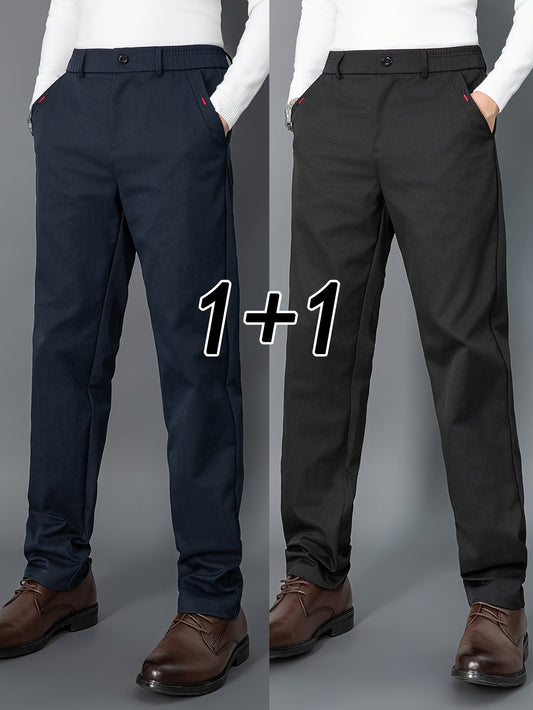 2 հատ Տղամարդկանց թեթև բիզնես պատահական շալվար - ուղիղ ոտքի շալվար, թեթև և հարմարավետ գրասենյակային և ամենօրյա հագուստի համար, բոլոր եղանակներին, մուգ կապույտ և սև, պոլիեսթեր գործվածք, մեքենայով լվացվող, բազմակողմանի շալվար | Ոճ