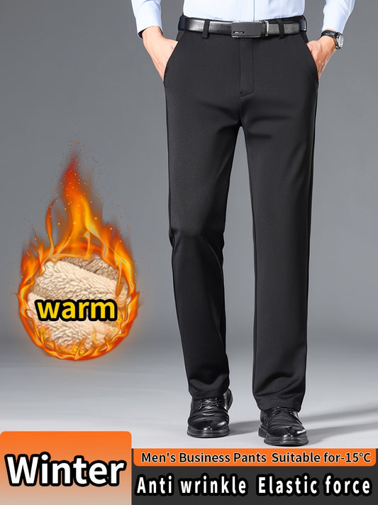 1 հատ Տղամարդկանց ջերմ բիզնես պատահական տաբատ, աշուն/ձմեռ բրդյա գծերով հաստացած ուղիղ շալվար՝ թեք գրպաններով, միաձույլ տրիկոտաժե գործվածքից սովորական տեղավորվող շալվար՝ կայծակաճարմանդով փակվող, միջին ձգվող պոլիեսթեր