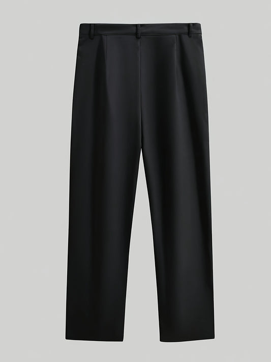 Տղամարդկանց խնամված բիզնես պատահական շալվարներ - պինդ սև, ուղիղ ոտքեր, կնճիռների դիմացկուն պոլիեսթեր խառնուրդ, բոլոր սեզոնային պաշտոնական տաբատներ կոճակներով