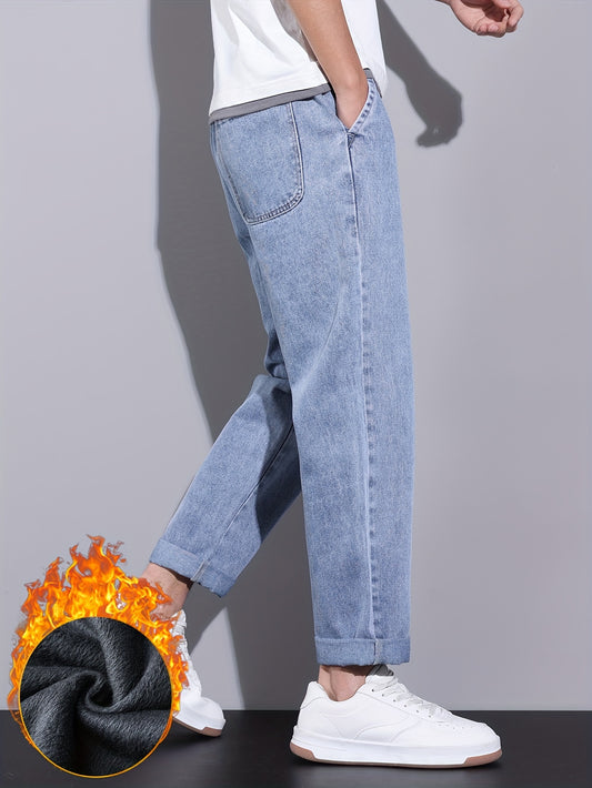 Տղամարդկանց ձմեռային ֆլիզով ջինսեր՝ առաձգական ուղիղ ոտքեր՝ առաձգական գոտկատեղով, տաք և ոճային ջինսե տաբատ