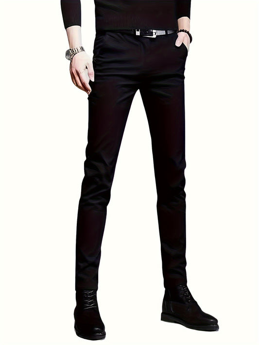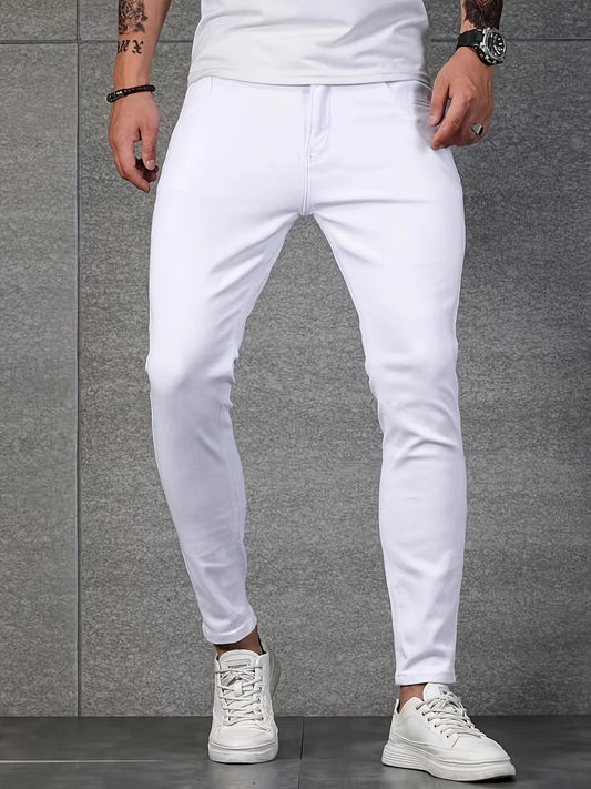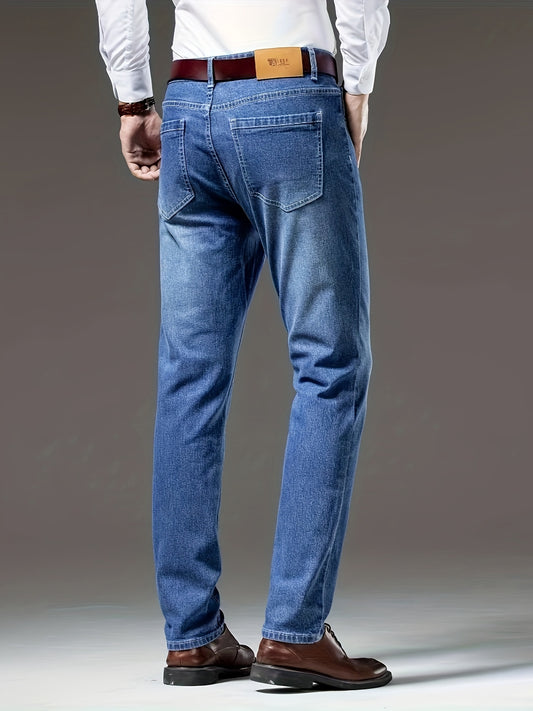 Տղամարդկանց Slim Fit Elastic Denim Jeans - Casual Business Style, Միջին գոտկատեղի, Բաց Կապույտ, Մեքենայով Լվացող, Հարթ Մակերես, Հարմար է Գարնան և Աշնանային, Գարուն և Աշնանային Հագուստ | Slim Fit Jeans | Ձգվող ջինսե