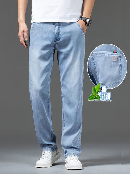 Տղամարդկանց բաց կապույտ ուղիղ ջինսե ջինս՝ սառեցնող սառցե մետաքսյա գործվածքով, հարմարավետ ամառային պատահական հագուստ, շնչող Lyocell խառնուրդ, դասական դիզայն ամենօրյա զբոսանքների համար, հարմարավետ տաբատ | Դասական Straightleg Jeans | Լյոսել