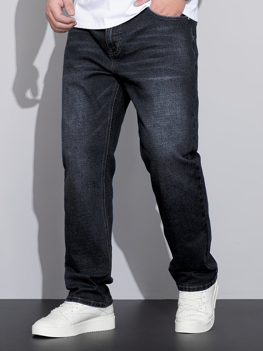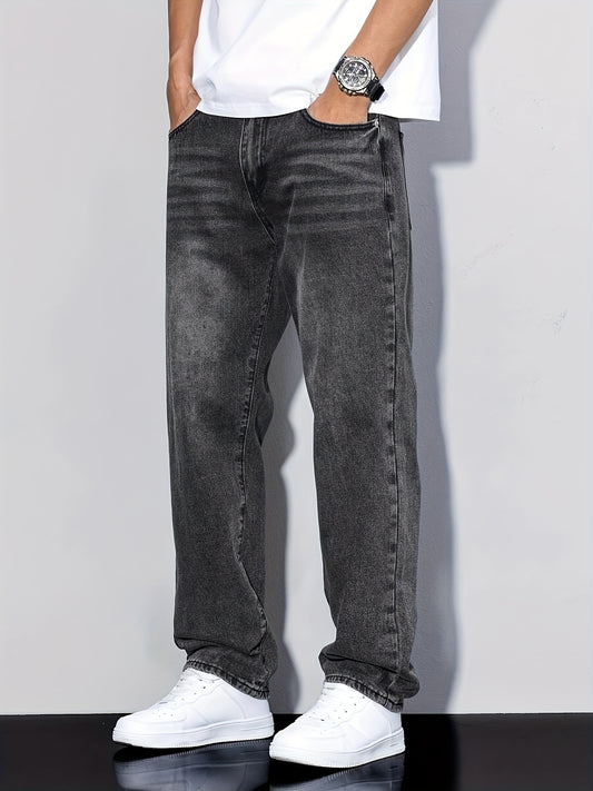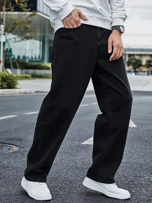 Տղամարդկանց դասական ուղիղ ոտքերի ջինսե ջինսեր - ազատ տեղավորվող, բամբակյա խառնուրդ, միաձույլ գույնի սև, փողոցային ոճ, հարմարավետ և բազմակողմանի բոլոր սեզոնների համար, պատահական փողոցային հագուստ|փողոցային ոճի տաբատ | չձգվող գործվածք