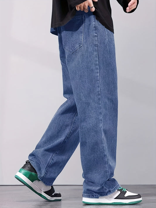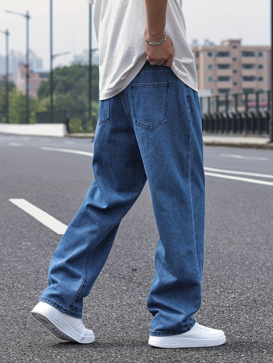 Տղամարդկանց High Street Fashion միաձույլ գույնի ազատ ջինսե ջինսեր, պատահական ուղիղ շալվար՝ չմշակված լվացքի դետալներով, ոչ ձգվող գործվածք, բոլոր սեզոնային հիմնական ոճ, Allseason ջինսեր | Դասական կապույտ ջինսե | Երկարակյաց ջինսե կոնստրուկցիա