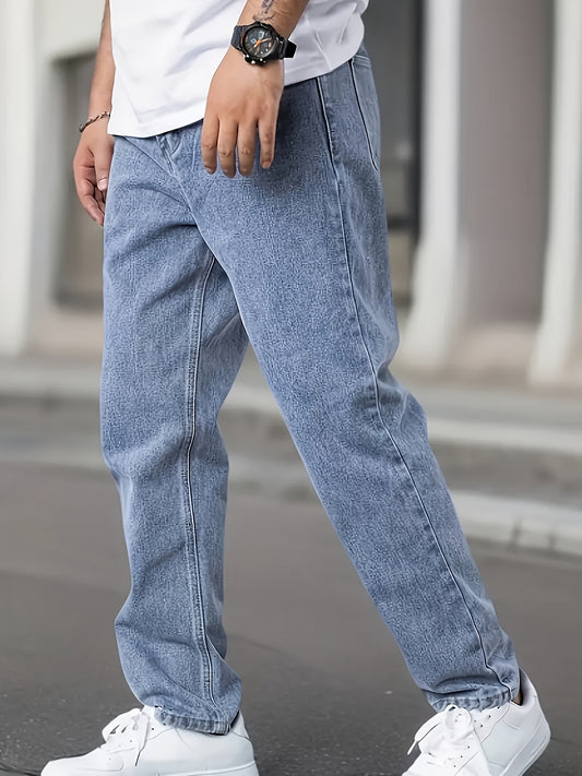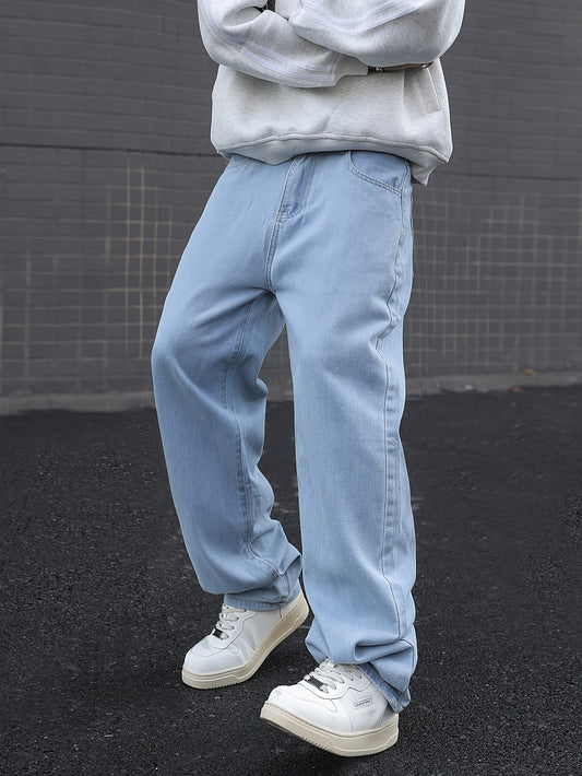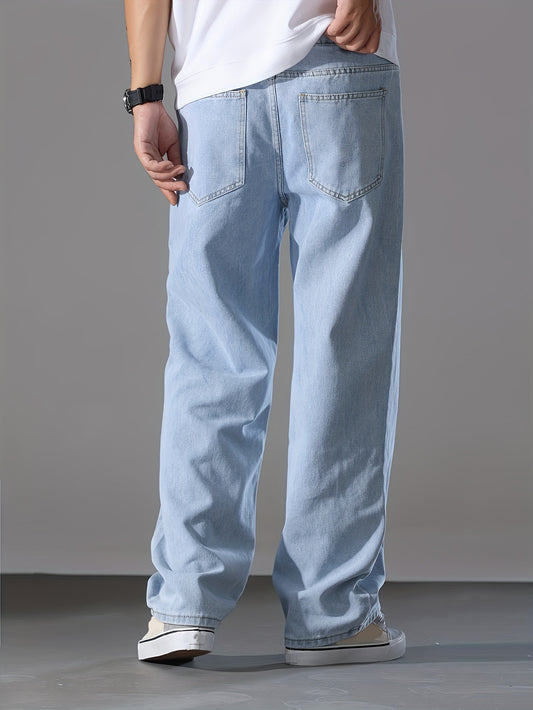 Տղամարդկանց Relaxed Fit բաց կապույտ ջինսե ջինսեր - պատահական ուղիղ շալվարներ, լվացվող մեքենայում, հարմարավետ ամենօրյա հագուստի համար, ամենօրյա հագուստի ջինսեր | Relaxed Fit Jeans | Խառնել ջինսը