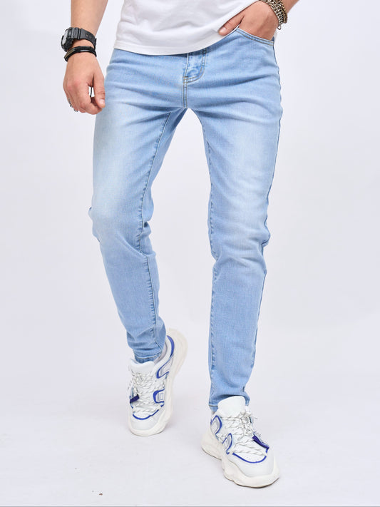 Տղամարդկանց բարակ-Fit ձգվող ջինսե ջինսեր - ամենօրյա փողոցային ոճ, միջին բարձրության, բաց կապույտ, հարմարավետ և բազմակողմանի բոլոր եղանակների համար
