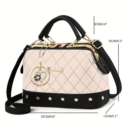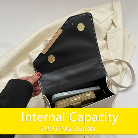 Էլեգանտ քառակուսի կարված ձեռքի պայուսակ, կարգավորվող ժապավեն, մագնիսական փակում, արհեստական կաշվե աստառ, թեթև, քաղաքային ոճ, սպիտակ/սև/խակի գույնի տարբերակներ