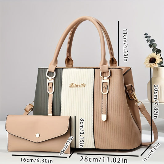 Նորաձև և բազմակողմանի կանացի պայուսակ, մեծ տարողությամբ մայրիկի պայուսակ, պարզ տառերով հյուսվածքով, գույների համապատասխանեցմամբ, ձեռքի պայուսակ, բազմաֆունկցիոնալ հավաքածու, հավաքածու, շնորհակալություն նվերի համար, նվիրեք ձեր ընկերուհուն